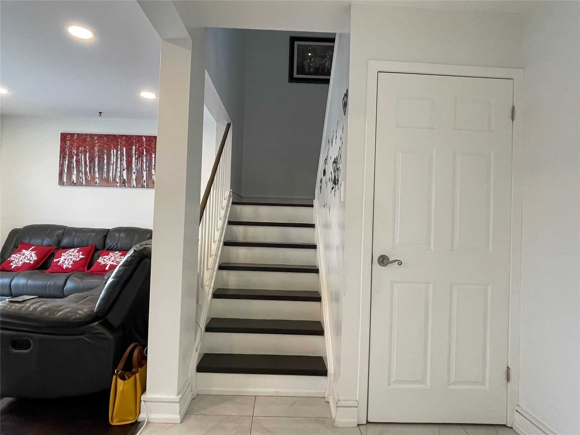 Attn First time home buyers / Freehold property seekers ! Convenient Location! Very near to schools!! Decent neighborhood , Bright , Well Maintained, Upgraded Freehold Townhouse With 3 Bedroom And 2 Full Washroom With A Ravine Lot. Fully Upgraded Kitchen A Private 3 Car Parking. Plenty Of Updates In Recent Years- Roof Shingles, Windows, Flooring-No Carpet Anywhere, Stainless Steel Appliances, Pot Lights, Upgraded Forced Air Gas Heating .Finished Basement .Stainless Steel Fridge, Stove, Washer & Dryer, All Elf's. Hot Water Is Rental