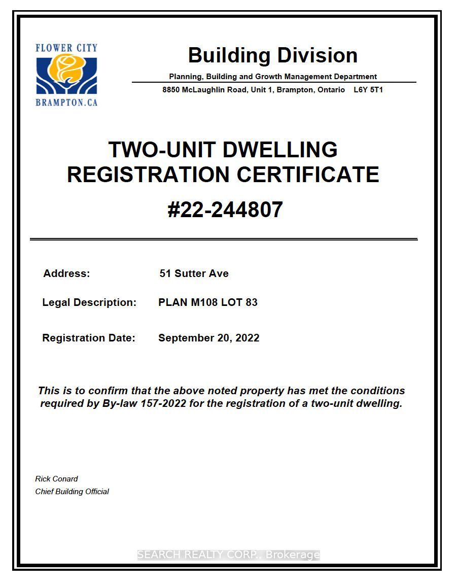51 Sutter AvenueBrampton, Ontario, L6Z1G6