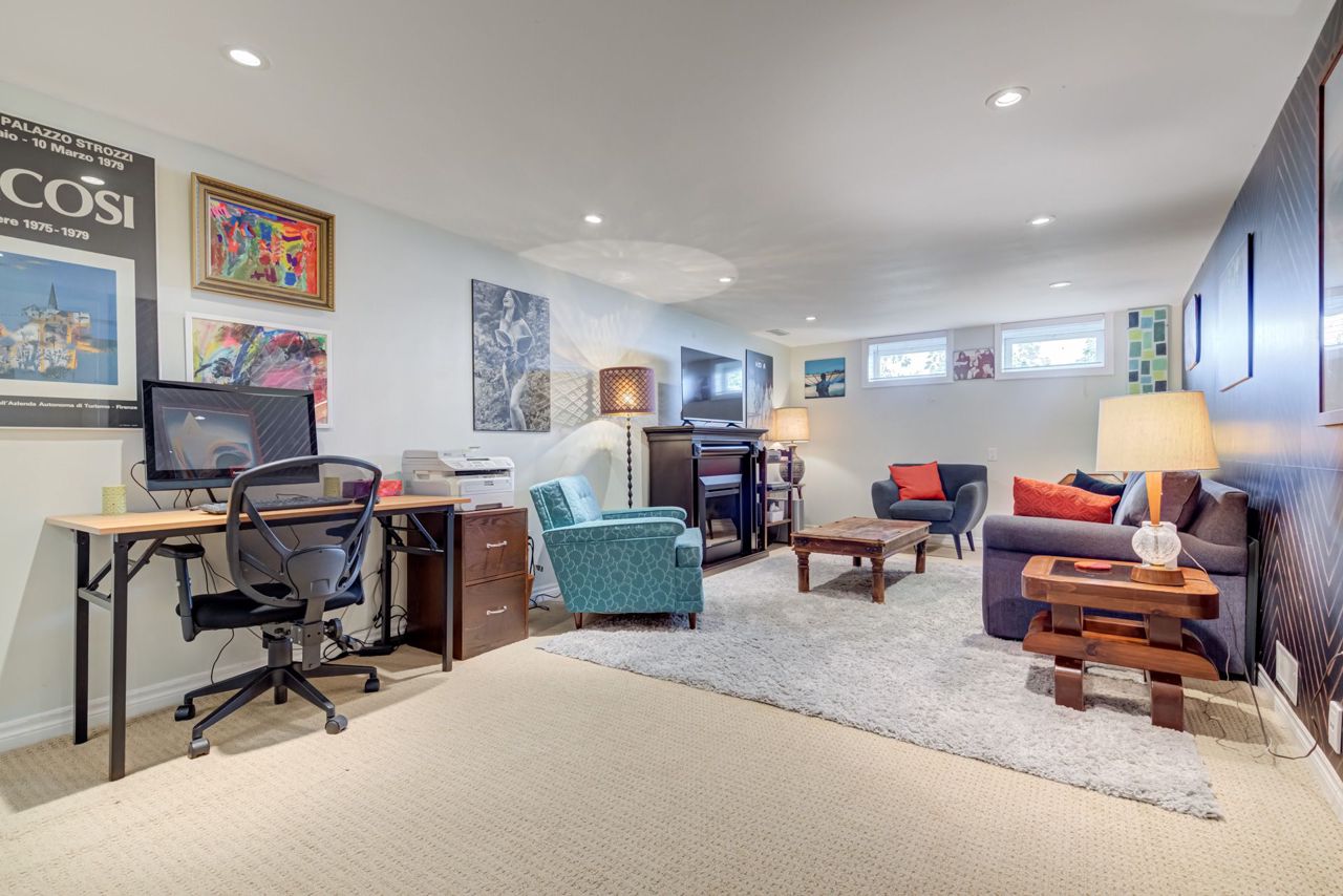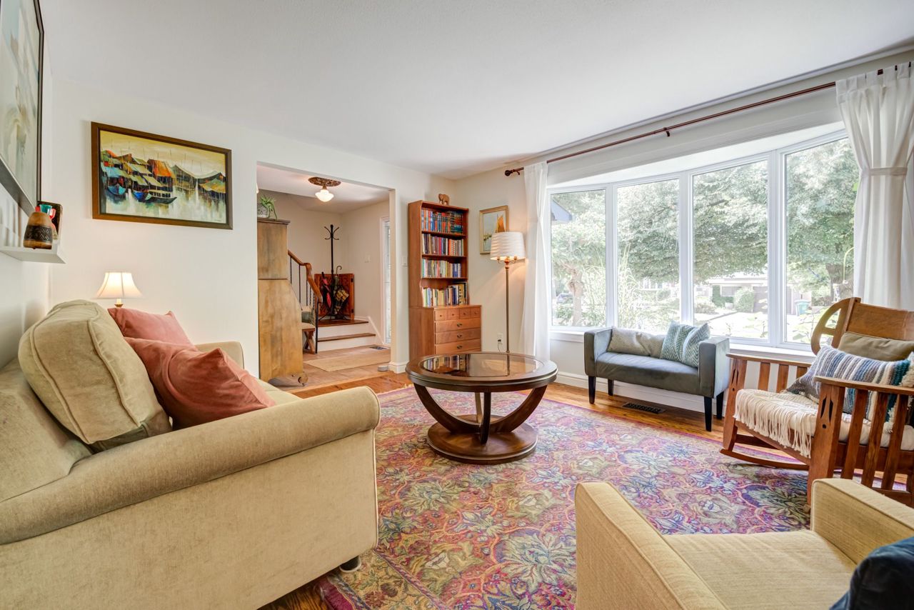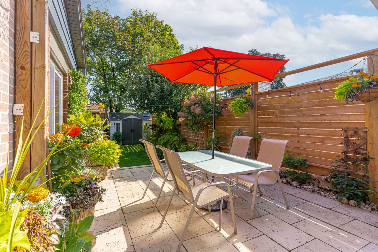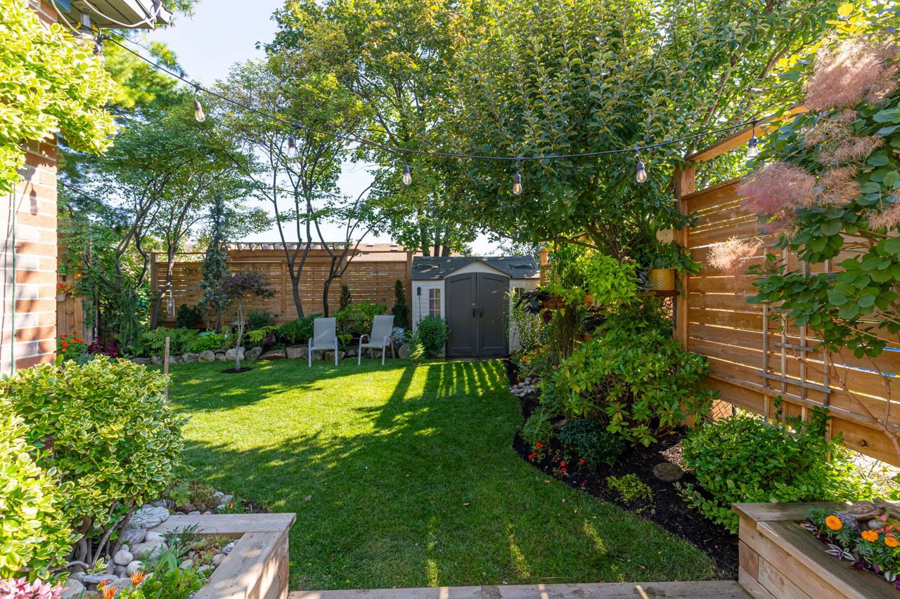 Beautiful two-storey detached home with an extra large sunfilled open concept family and dining room addition featuring two skylights, large bay window allowing for great views of the backyard, gas fireplace and a walkout to patio with a water feature. Upgraded modern gourmet kitchen with ample tall white cabinetry, backsplash, quartz counter tops, extensive pullouts, double stainless steel farmers sink, huge pantry, breakfast bar with dining area, stainless steel appliances featuring a brand new refrigerator (2023). Formal living room with bay window and open concept den. Renovated powder room and main bathroom. Four spacious bedrooms, primary bedroom with his/her closet. Dark stained hardwood floors throughout main level. Large recreation room with above ground window. Serene, private berm yard with established perennials native plants, mature trees and fruit bearing shrubs. Custom playhouse and storage shed. Truly an idyllic home in executive Ridgehill Manor neighborhood.