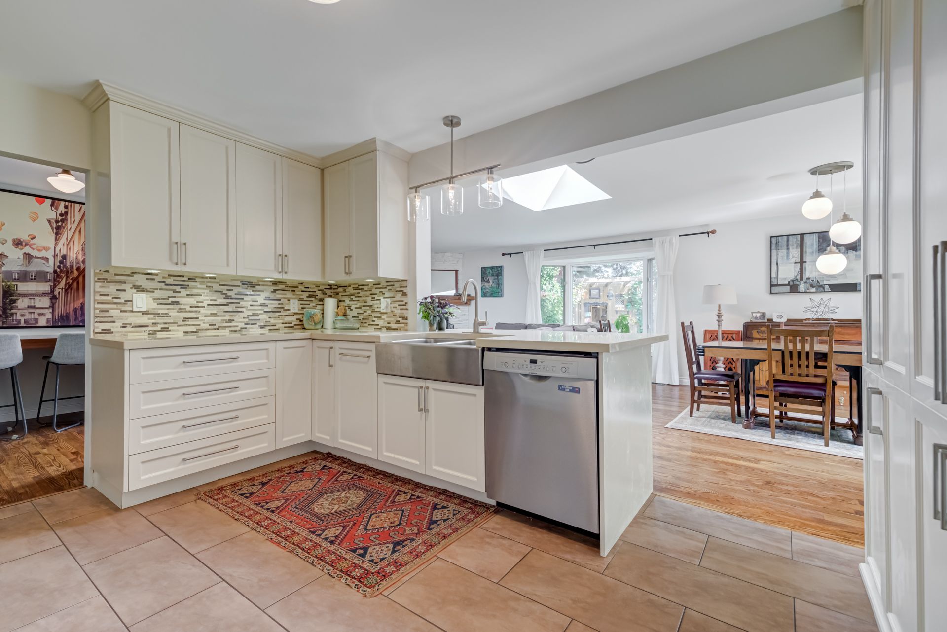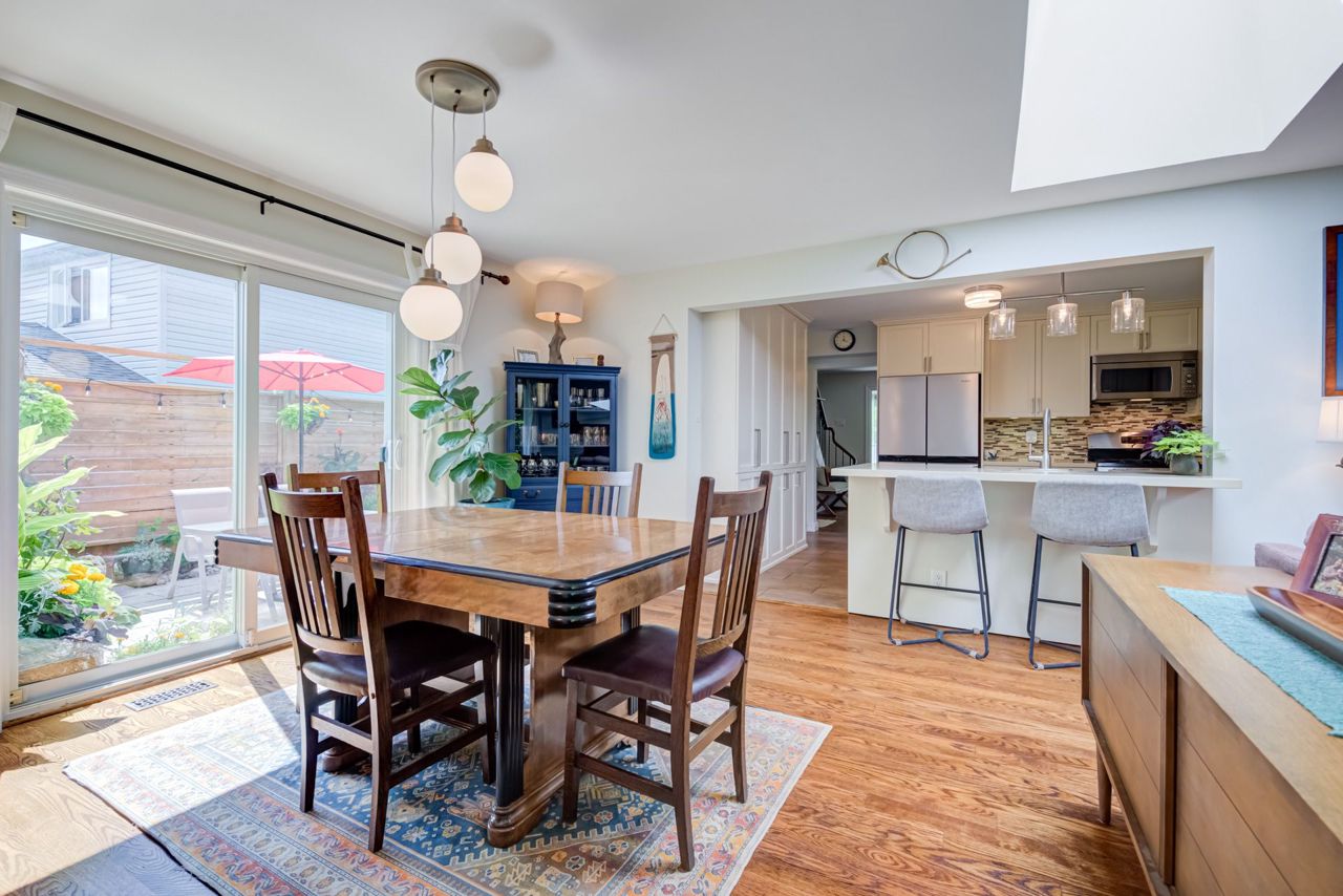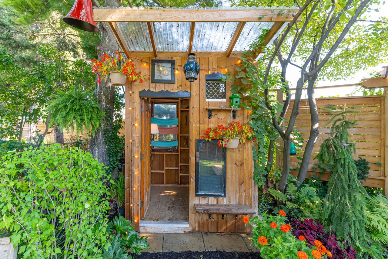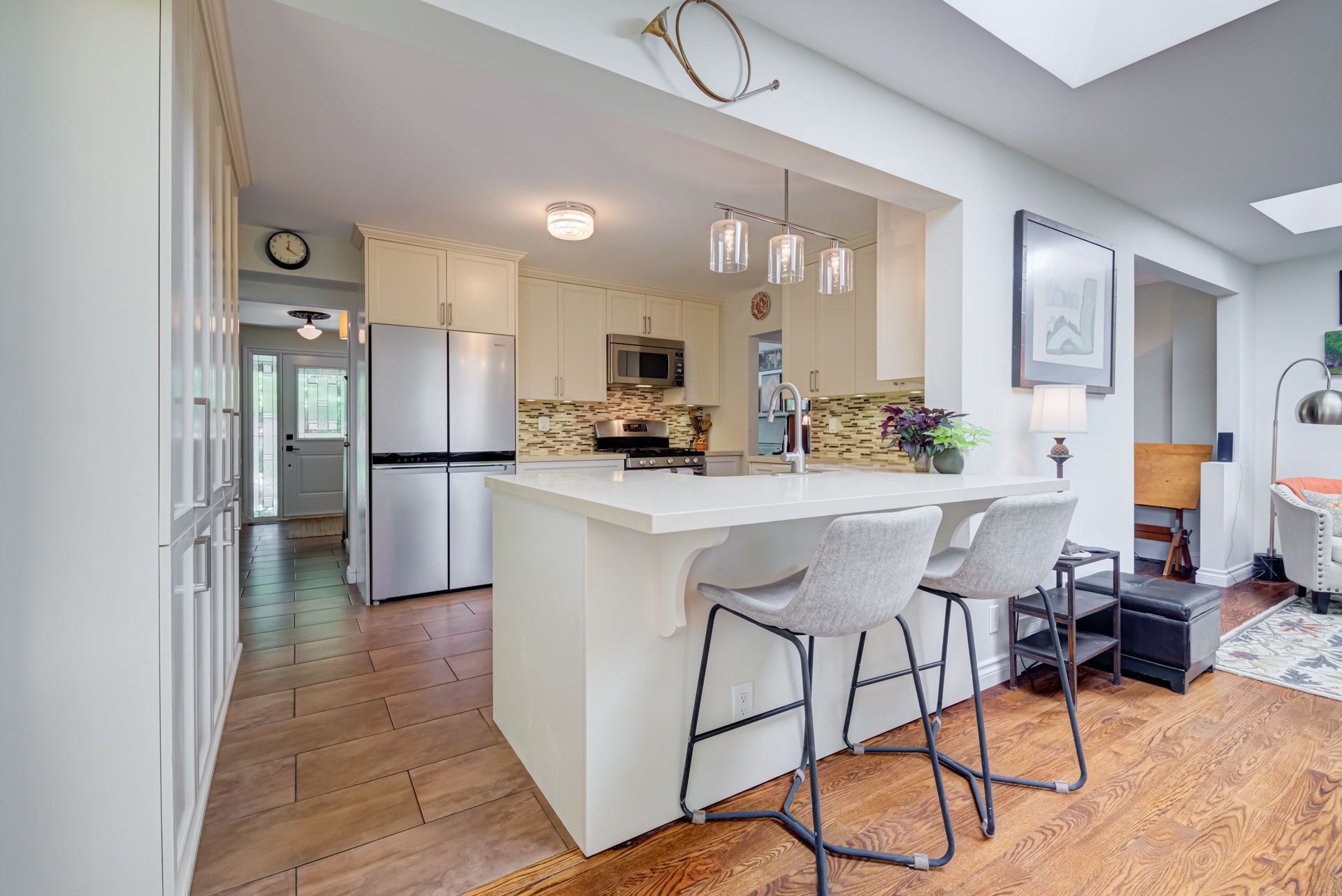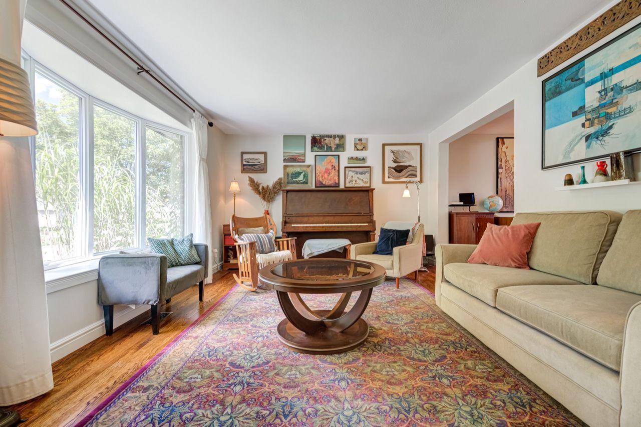Beautiful two-storey detached home with an extra large sunfilled open concept family and dining room addition featuring two skylights, large bay window allowing for great views of the backyard, gas fireplace and a walkout to patio with a water feature. Upgraded modern gourmet kitchen with ample tall white cabinetry, backsplash, quartz counter tops, extensive pullouts, double stainless steel farmers sink, huge pantry, breakfast bar with dining area, stainless steel appliances featuring a brand new refrigerator (2023). Formal living room with bay window and open concept den. Renovated powder room and main bathroom. Four spacious bedrooms, primary bedroom with his/her closet. Dark stained hardwood floors throughout main level. Large recreation room with above ground window. Serene, private berm yard with established perennials native plants, mature trees and fruit bearing shrubs. Custom playhouse and storage shed. Truly an idyllic home in executive Ridgehill Manor neighborhood.