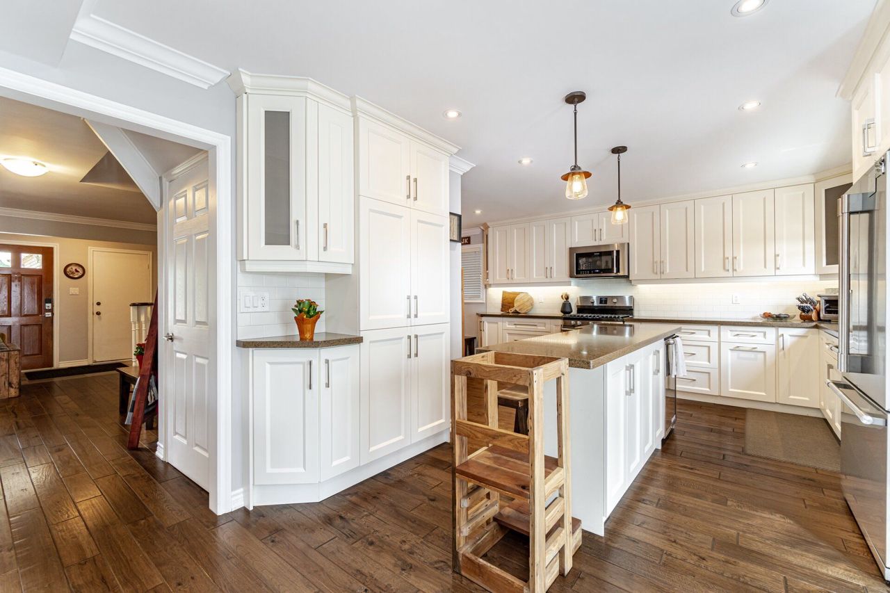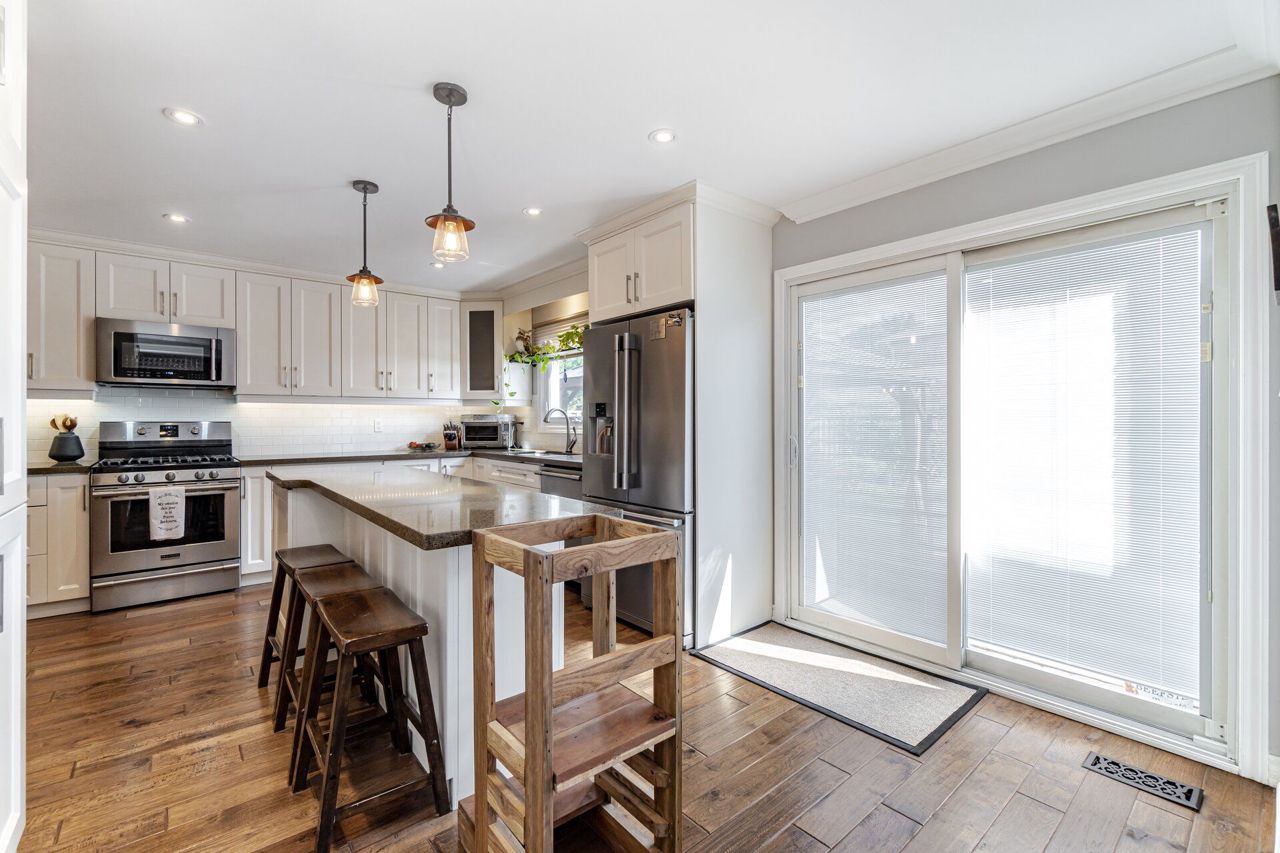 Recently Reno’d High End Custom Chef’s Kitchen w Huge Island for Entertaining -over looks Walk out to Backyard Oasis. ( w/ double Metal Gazebo, hot tub,& lounge area. ..established Perennial Gardens to enjoy year round w/ low maintenance) Upstairs 2, 4 pc baths, 3 spacious bedrooms & a glorious oversized primary that bask’s in natural sunlight; ensuite + walk in. //