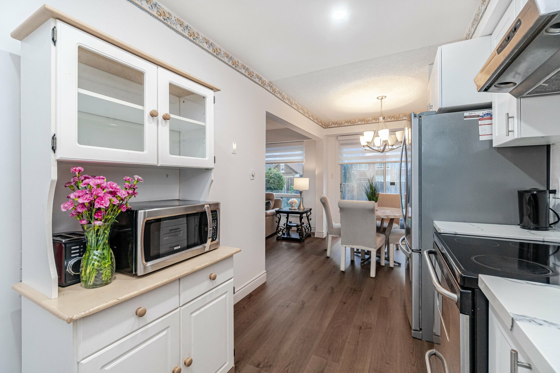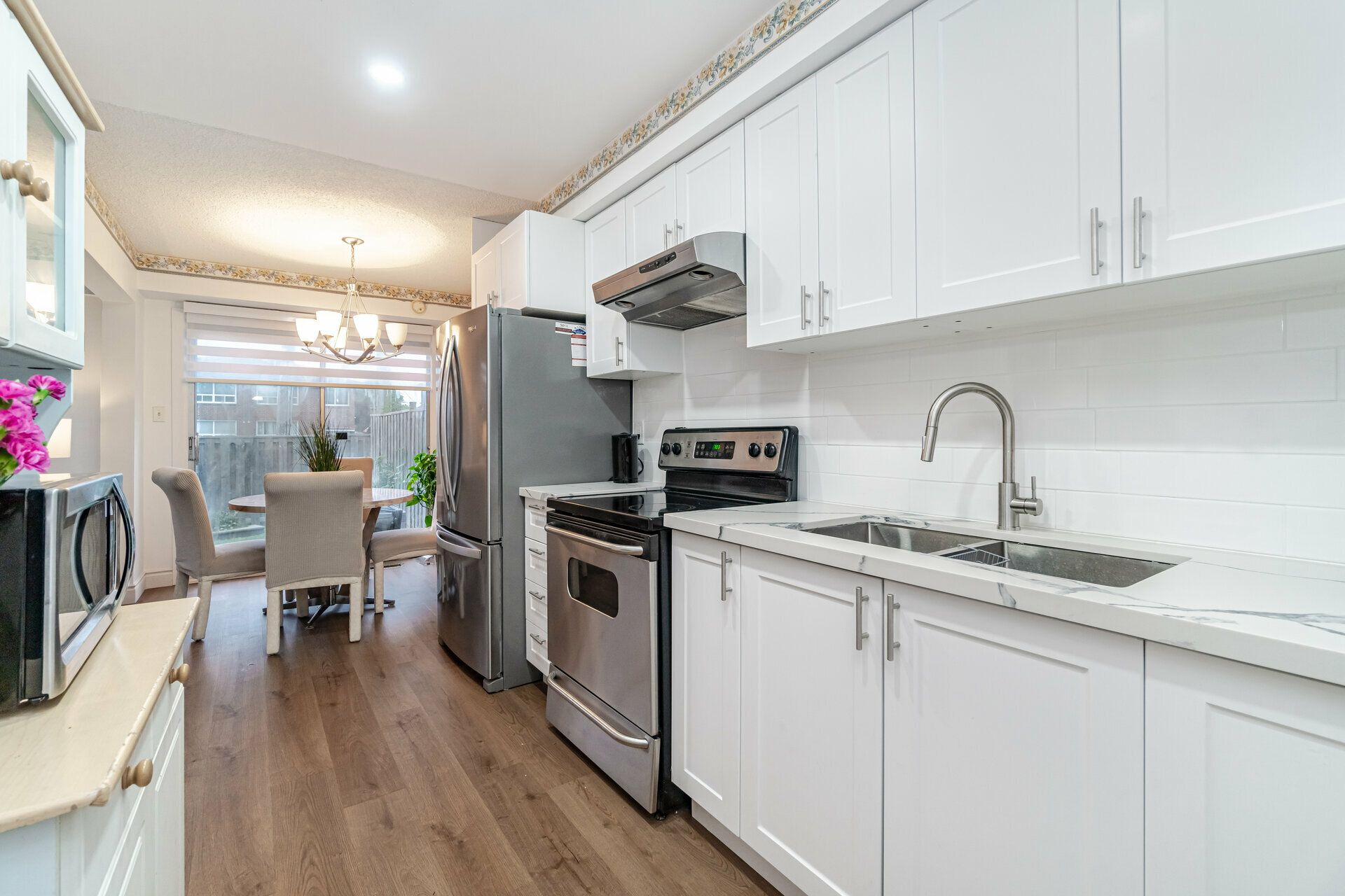 Immaculate Sun Filled 3 Bedroom Townhome plus In-law Suite in Basement In Well Managed Complex* Fully Fenced Backyard, Ideal For Family W/Young Children Or Pets*Very Functional Layout Offers Spacious Bedrooms, Newly Renovated Family Size Kitchen W/Lots Of Cabinets, Plenty Of Quartz Counter Space *Recent Quality Upgrades Include: Kitchen and Main Floors, Freshly Painted, Basement Bath Bath, , Plumbing, Modern Light Fixtures & Much More! Maintenance Fees Include Bldng Insurance, Water, Cable Tv/Internet & Grass Cutting Of Backyard**High Demand Neighbourhood, Steps To Etobicoke Creek Trail** Move In & Enjoy!