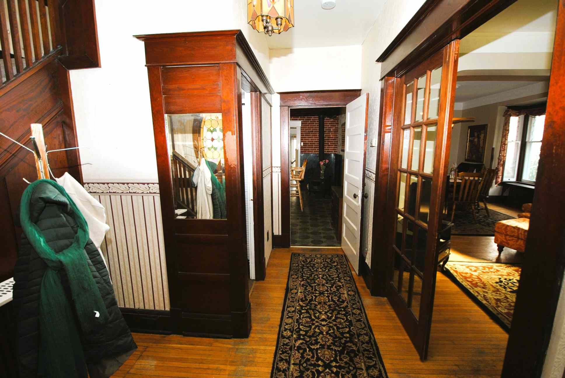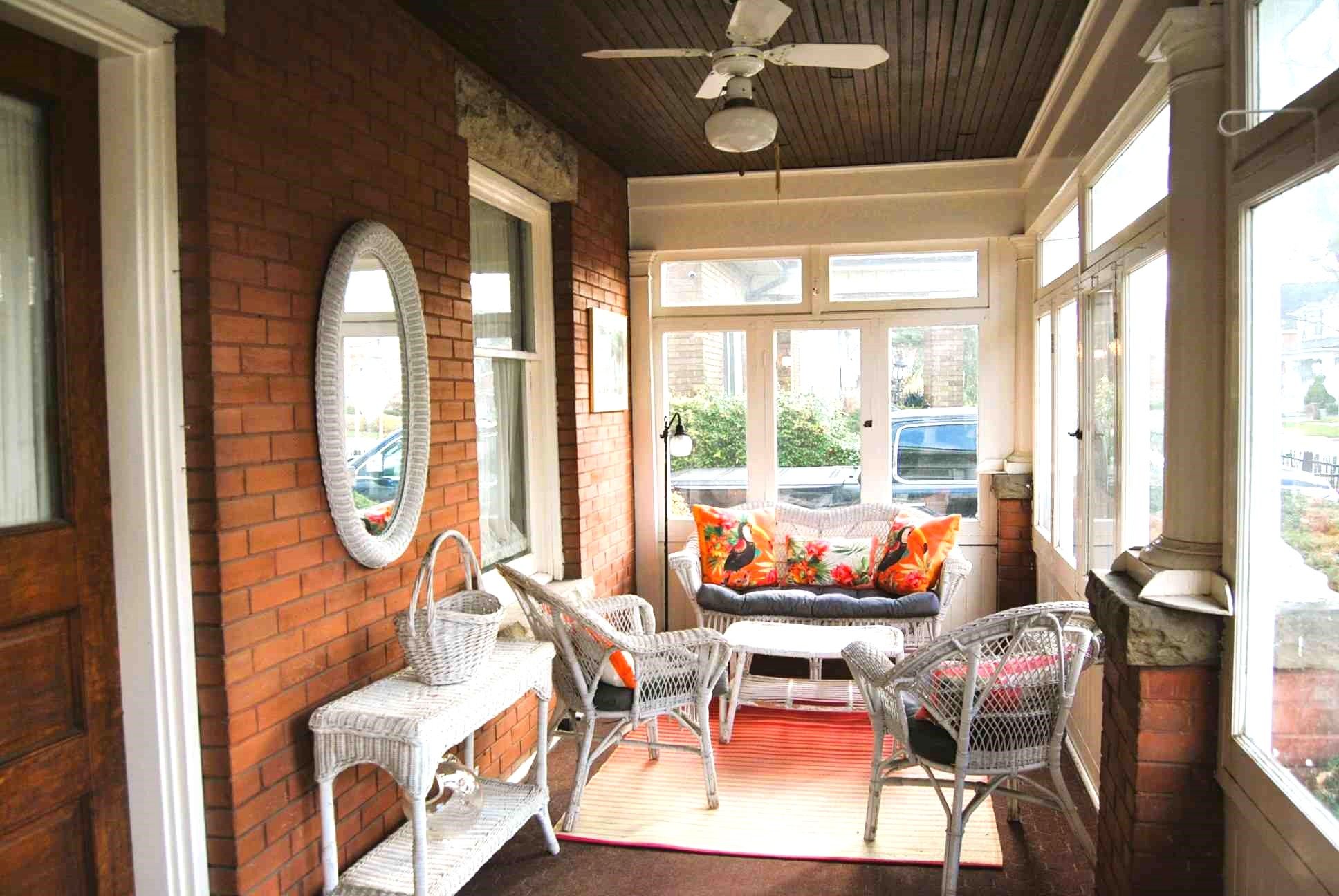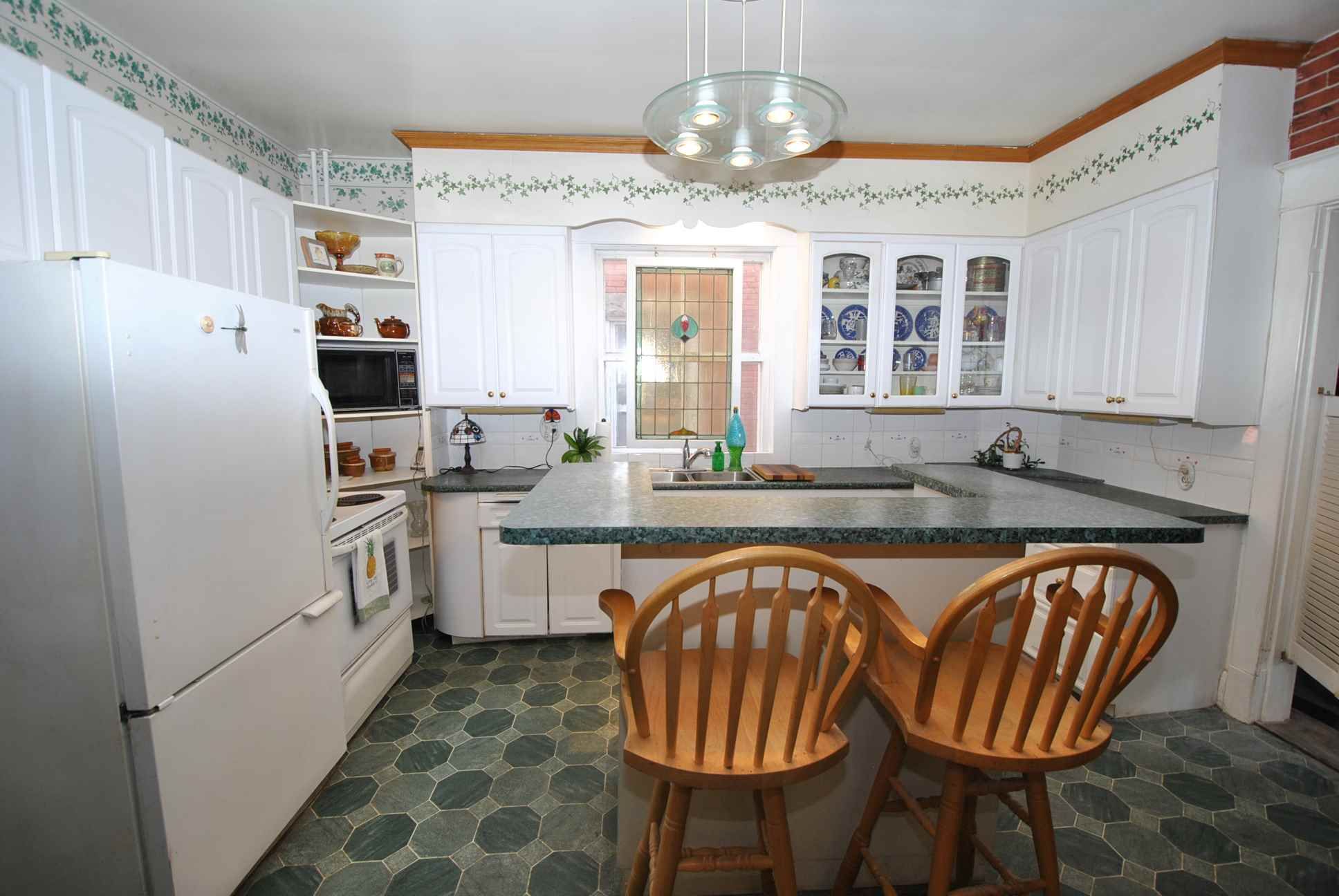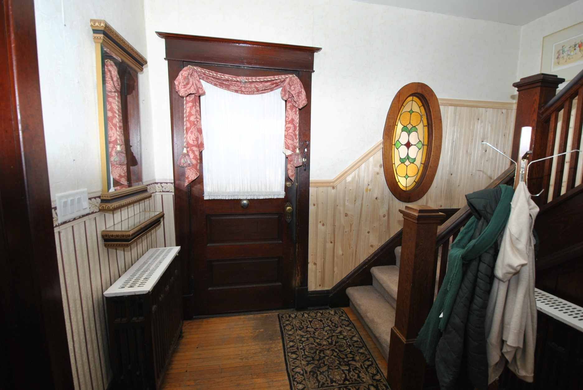 Charming Century Home “Circa 1913” Downtown Brampton Amenities. Three Floors Plus Basement. Sunshine Filled Front Porch. Original Wood Doors & Trim. Traditional Main Floor, Spacious Front Entrance. Powder Room. Separate Living Room, Formal Dining Room, Powder Room. Modern White Kitchen Cabinets, Glass Front Cabinets, Center Island With Breakfast Bar, Ceramic Backsplash, Walk Out To Sun Room Walk Out To Deck. Spacious Primary Bedroom Plus 3 Additional Bedrooms & 4 Piece Bath on 2nd Floor. Family Room On 3rd Floor With Storage Closets.Wainscoting Along Stairway To Second Floor. Updated Windows 2nd, 3rd Floor & Basement. Stained Glass Window. Built In Cabinet In Dining Room. Mirror In Entrance. Central Vac. Flagstone Walkway.