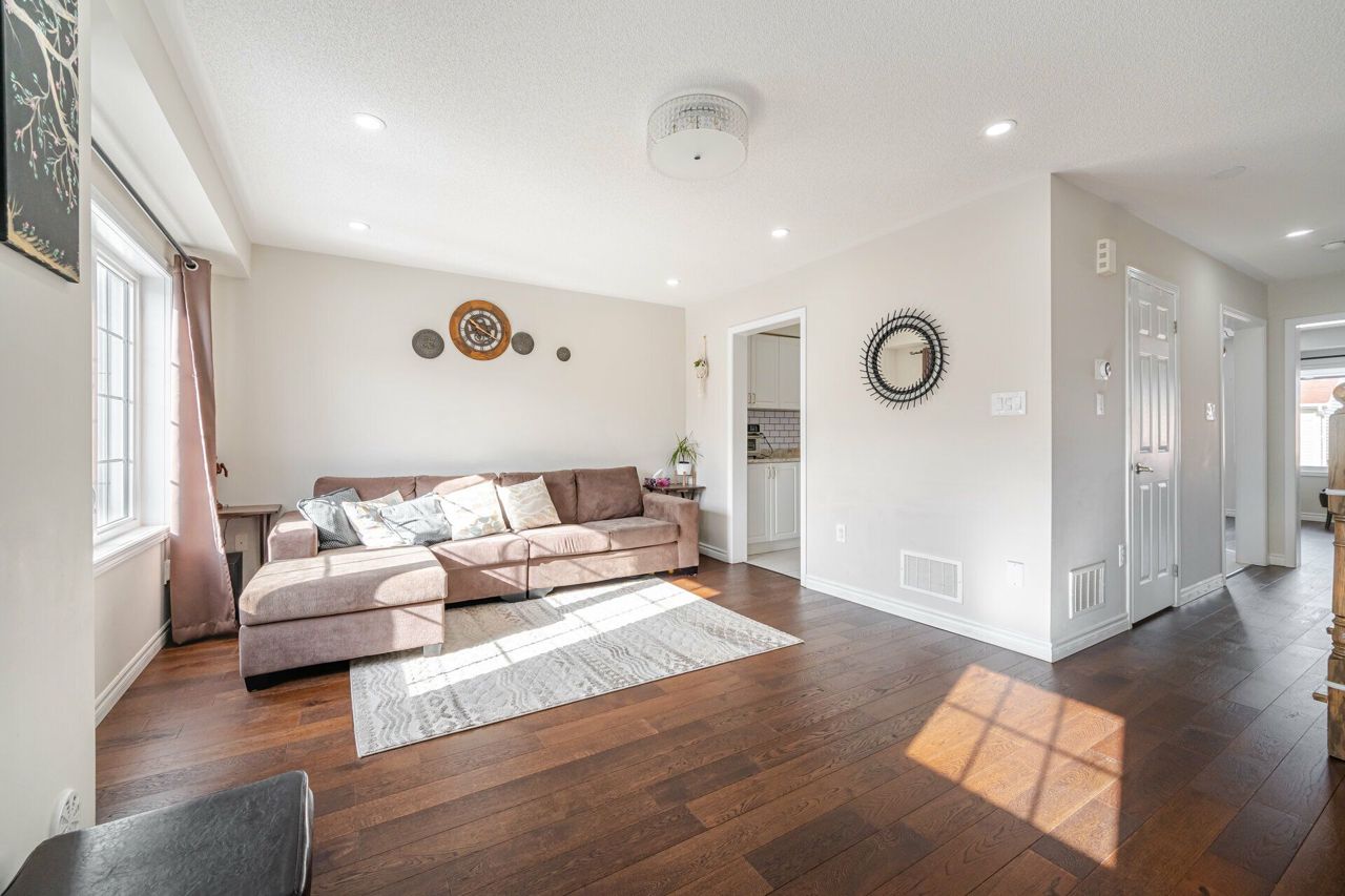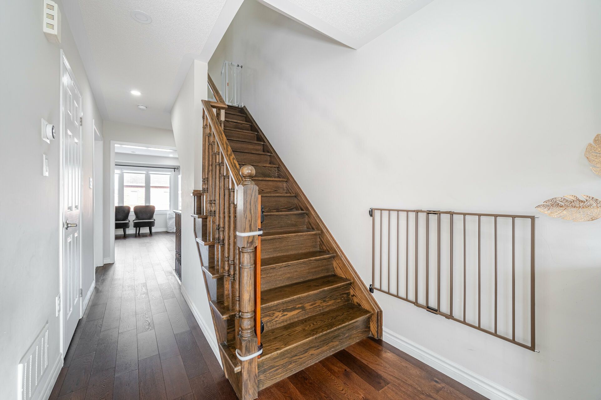 Show Stopper! ***Better Than New **Rare Find - Award Winning "Hawkebury Model". Freehold Town By Mattamy. Approx 1800 sq feet of Superb Open Concept Spacious Living! 2 Separate Sitting Areas, Large Bedrooms,Extended porchWalk Out To Your Private Backyard. Upgraded Ext. Stone By Builder, Loaded W/ Recent Highest Quality Upgrades Include: Custom Concrete Work Front/Back w/Steps, High Grade-High Quality Modern Engineered Hardwood Floors 2020, Upgraded Wood Stairs, Upgraded Electrical Inclds: Pot Lights Interior/Exterior, L/R Chandelier 2023, Steps to To Ravine, Schools Etc. .Measurements.Backyard Gazebo ExcludedTrue Pride Of Ownership, This Home is Superbly Maintained, Move In Ready! Nestled on a quiet, Family Friendly Crescent, in the Sought Out Mount Pleasant neighbourhood, Minutes to all amenities, Go Station, grocery stores, parks, schools, community centres, & places of worship etc..