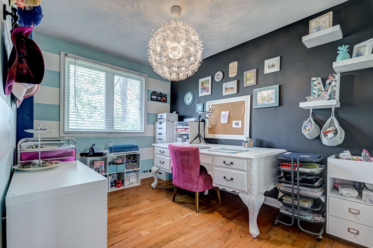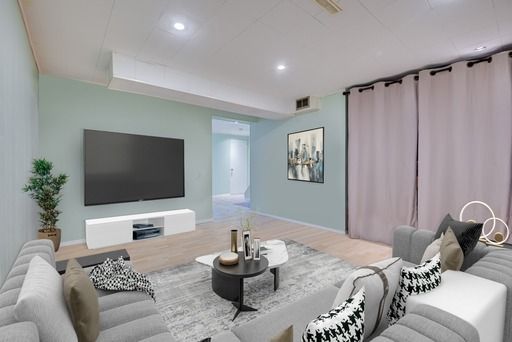 layout w/ lam flrs, can easily be used as rec rm or in-law suite with potential for separate entrance. Unmatched location @ Queen & 410