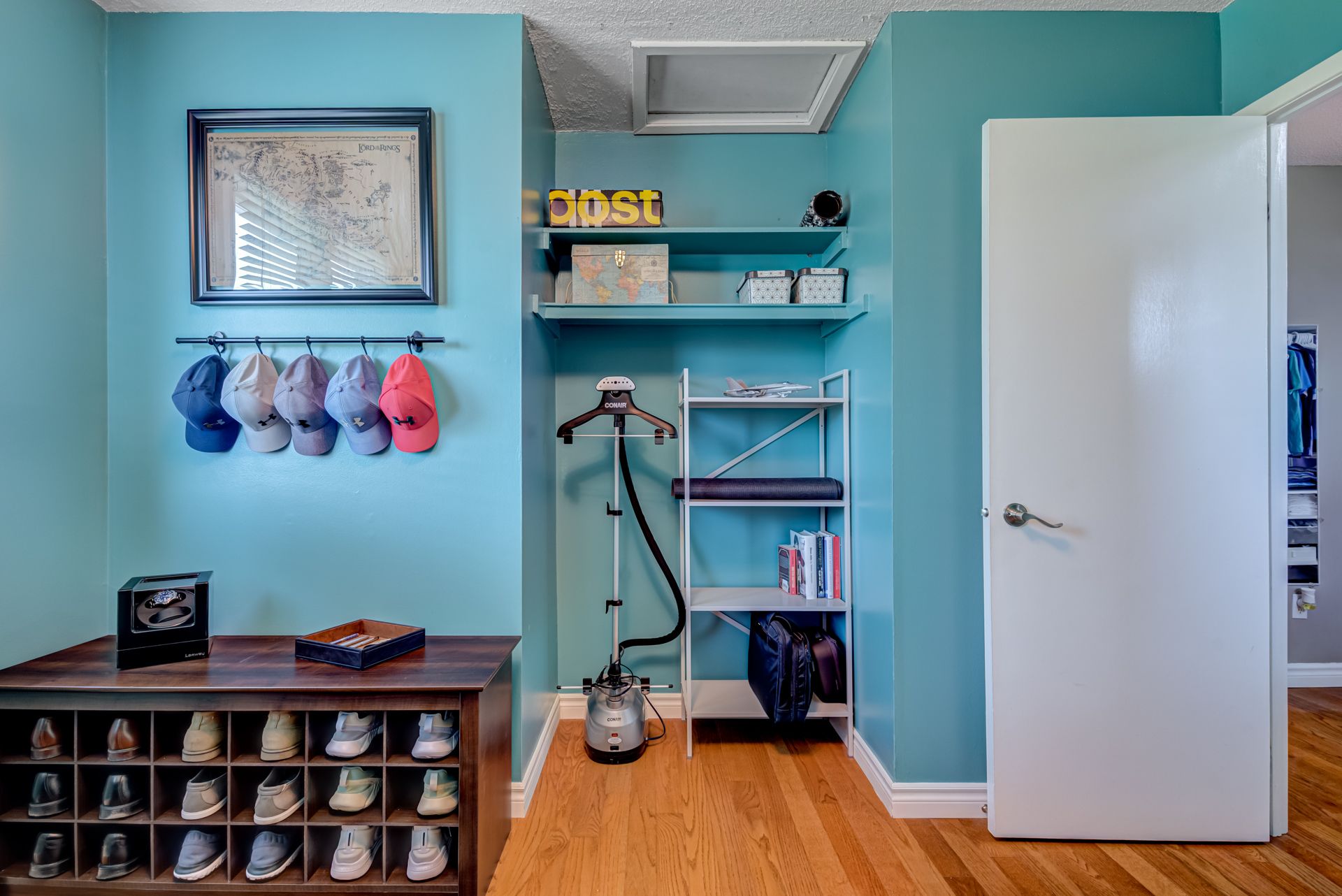 Hardwood Floor His/Hers Closets Closet Organizers