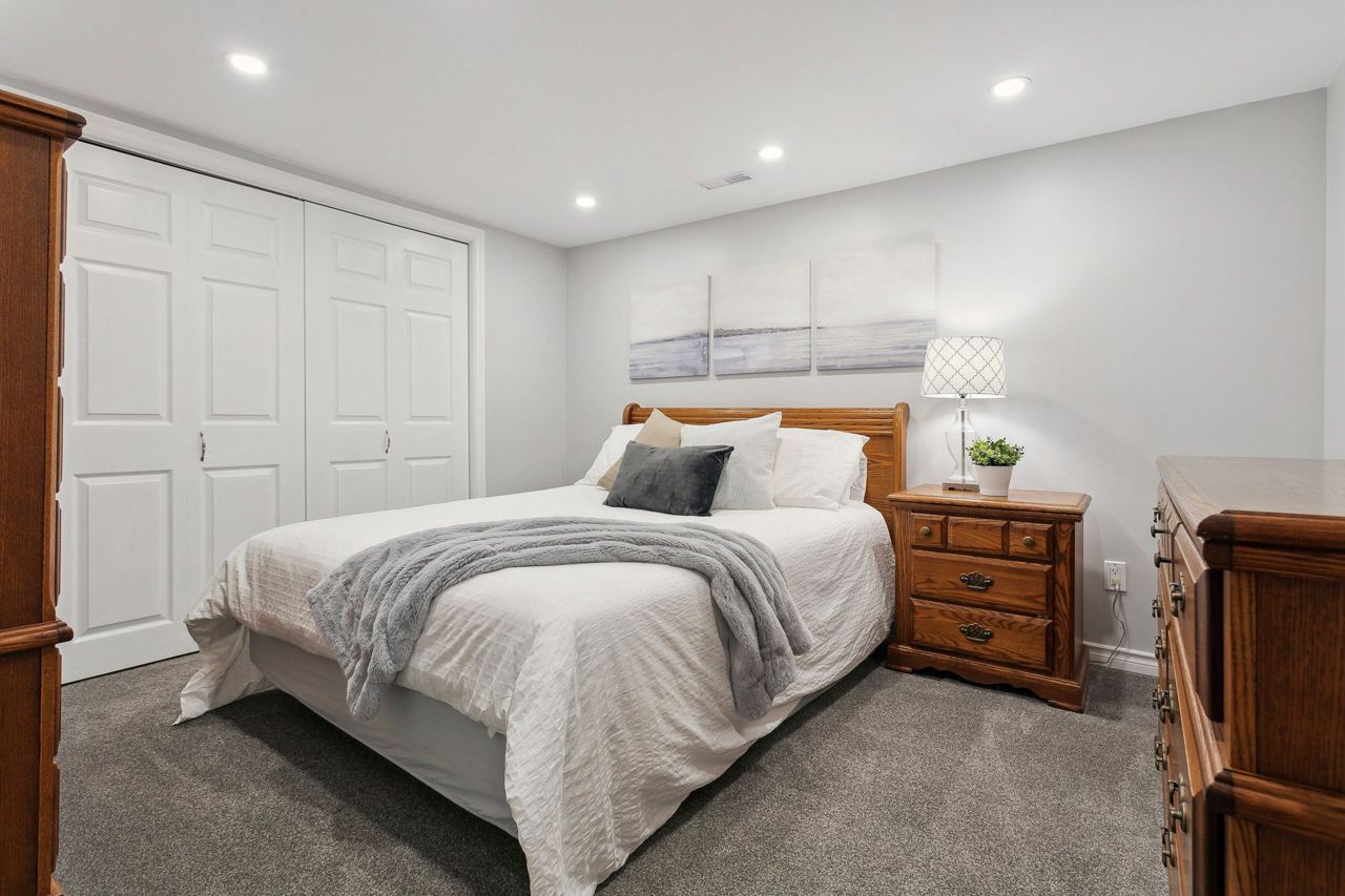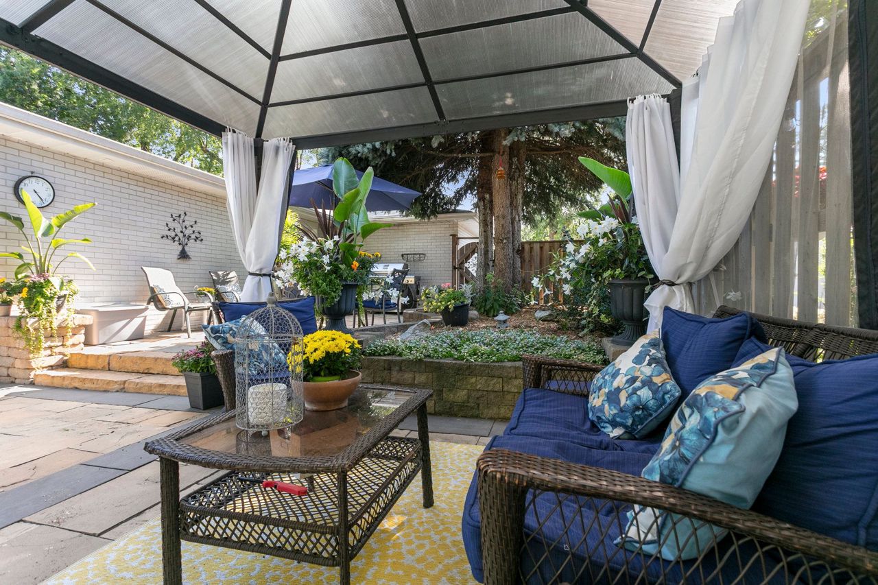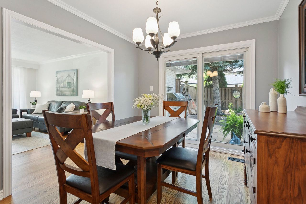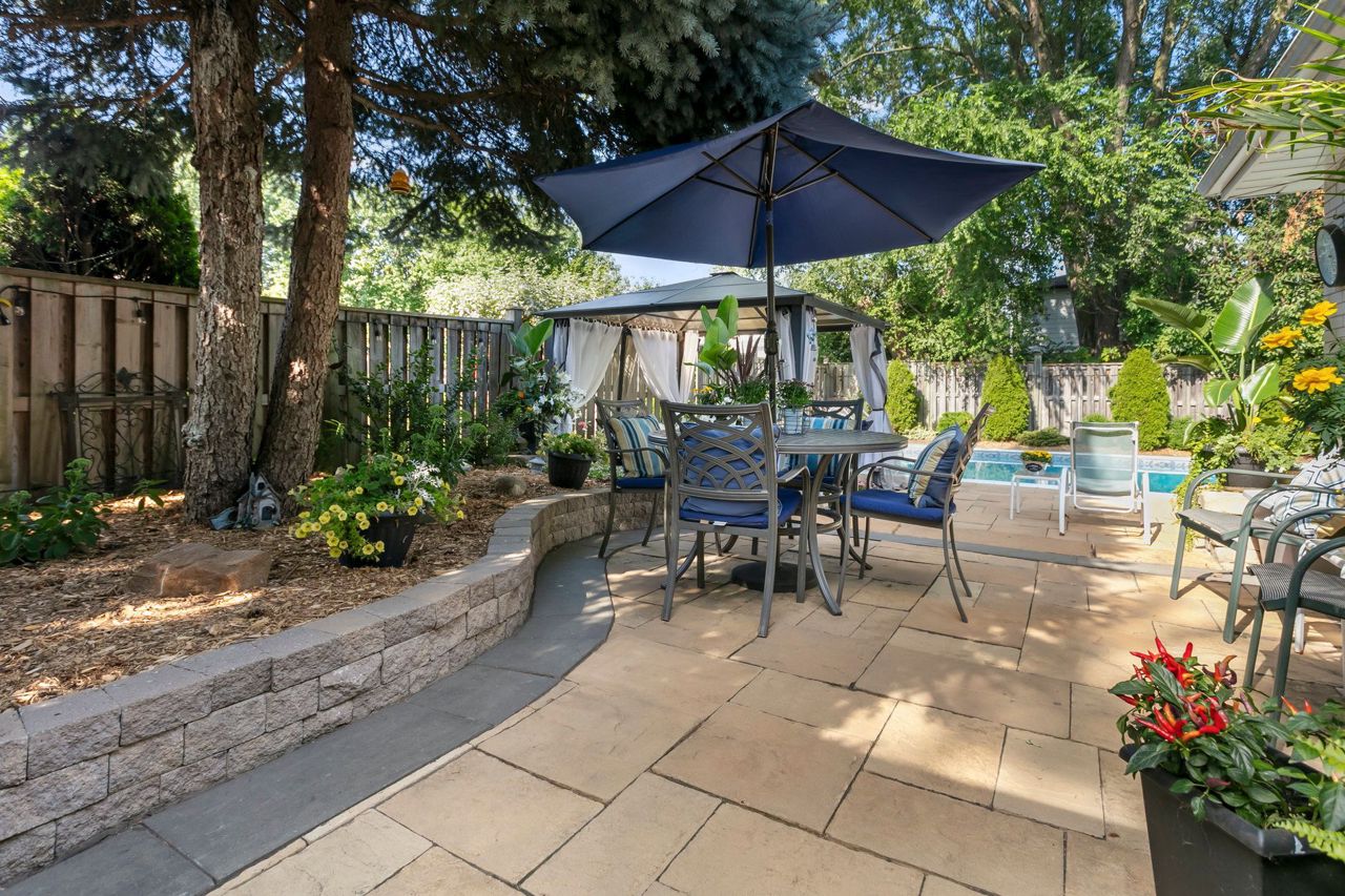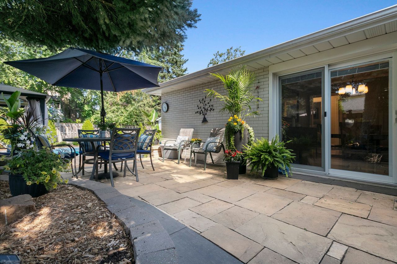 You will love living here in your gorgeous four-bedroom two full bath Peel Village bungalow. Ultra-private backyard oasis including in-ground pool, stone walkway & powered pool house/shed. Meticulous landscaping, and minimal lawn maintenance. The upper level features a light-filled eat-in kitchen, white cabinets, pot lights, ceramic tile and crown moulding.Expansive living room with a beautiful picture window, hardwood,& crown moulding. Separate dining with crown moulding and walkout to patio.Two generous-size bedrooms, both with hardwood protected by broadloom and large closets. Natural light galore throughout the main level. A separate side-entrance leads to the lower level featuring two additional bedrooms (one without a window), four-piece bathroom, office area, and an over-sized family room. The entire lower level is comfortably finished with wall-to-wall broadloom. Separate laundry room with window, sink, pot lights and folding counter.Move-in ready,an absolute bungalow delight!Many updates throughout including new garage door, windows, countertop & freshly painted – see spec sheet for all updates. Close to highways, transit, shopping & network of schools and parks.