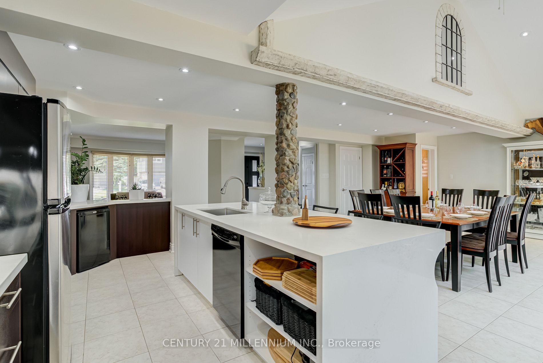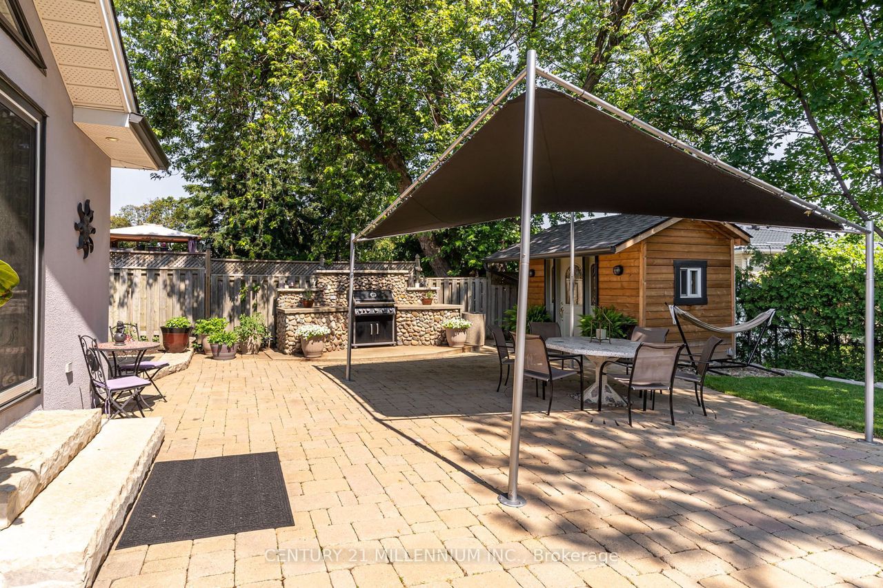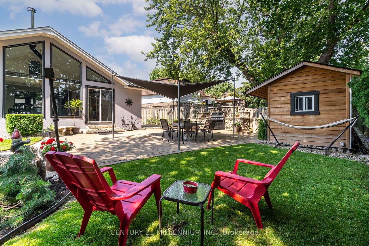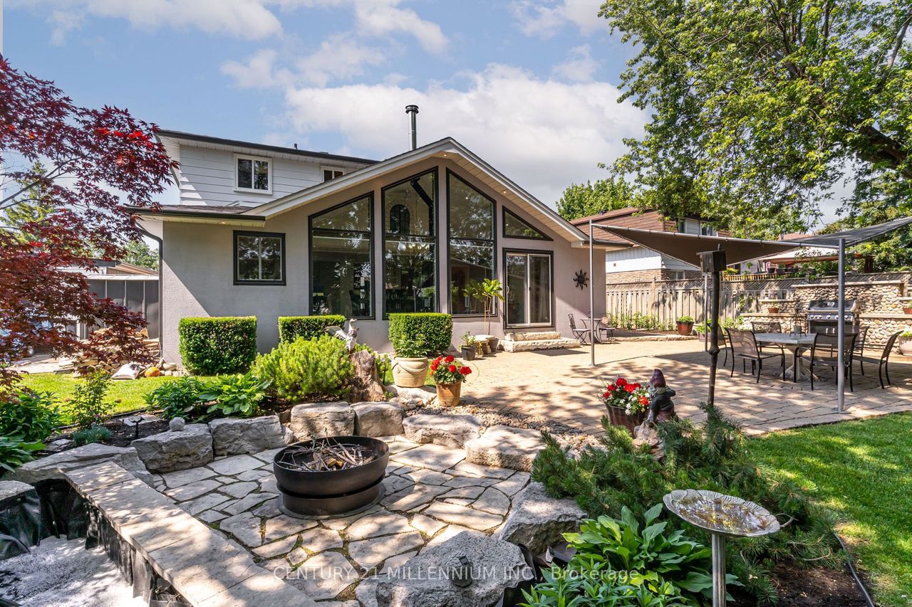 Custom one of a kind & the total pckg, extended covered veranda, blacked windows, front dr, garage & aluminum. Visually experience the sensational transformation w/ its Kitchen/ great room vaulted addition to the rear of the home feat 2 storey chalet style windows, river rock columns, wood burning fireplace, showcasing a relaxing cottage oasis view. A customized U shaped dream kitchen, 5 person quartz island, 2 sep sinks, endless counters/cabinets/storage, o/c & overlooks to the dining/ great room addition. Sliding drs to private custom backyard escape, XL stacked stone waterfall, sunken flag stone fire pit, interlocking patio, BBQ area feat concrete patio, custom river rock BBQ area, custom shed, Prof landscaped. M/f laundry. 2nd level w/new hw flrs trim, baseboards t-out rms. King sz mstr bdrm. New 5pc bath w/Dbl sink. 1 bdrm converted custom W/I closet. Prof fin bsmt Lrg rec rm, ceramic flrs, o/c studio style/bdrm. 6 car