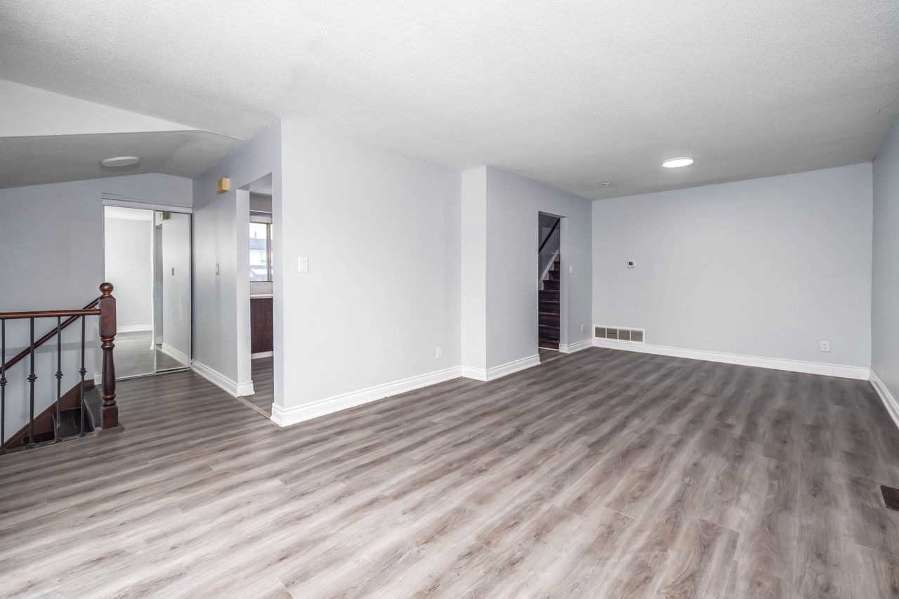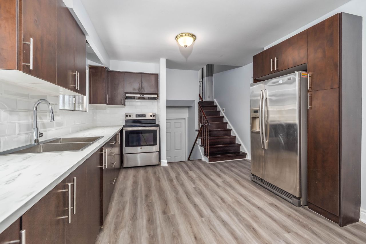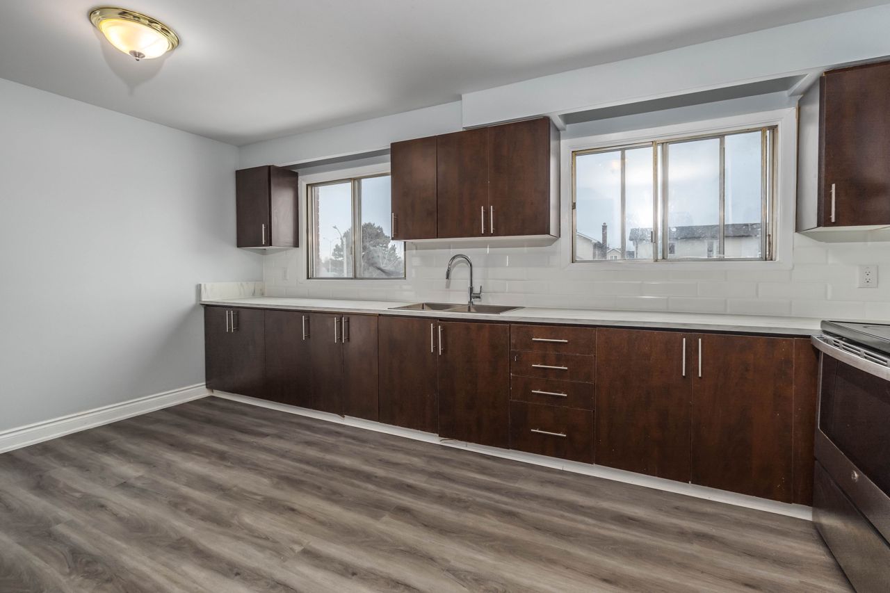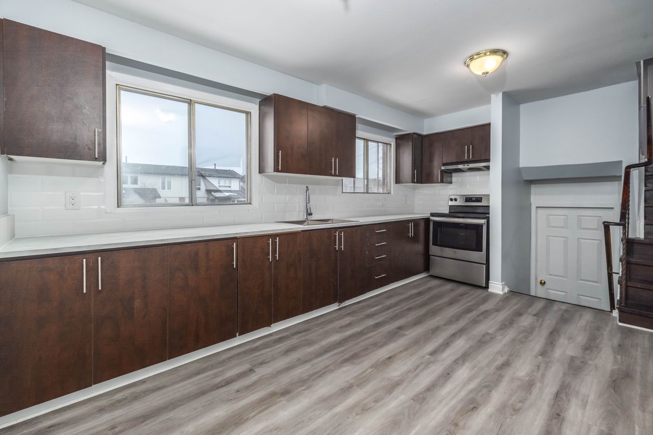 Renovated & Spacious Well Maintained 3 Bedroom Semi Detached Home For Lease, Main Floor Only. Combined Living & Dining Room W/New Flooring In Main Living Area & Kitchen. Oversize Balcony From Living Room, Large Eat In Kitchen W/New Counter Tops, Backsplash & S/S Appliances. 3 Generous Size Bedrooms. Parking