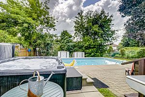 Desirable "M" section, this home is very clean and well maintained. Large lot with mature trees and backyard oasis with upgraded patio stone, lots of lounging space, large inground pool, and 8 person hot tub. Hot tub had 2 motors in 2023. All new exterior doors, and vinyl siding in 2022. Mostly all new windows. Lots of living space including a main level den/family room with walkout to backyard. Newer upgraded kitchen with lots of cupboards, pantry, and new appliances in 2022. New flooring in living/dining room 2023. Finished basement with rec room/bedroom, large laundry area. Newer garage door, newer central air and furnace. Includes 7 appliances, all drapes/blinds. A must see suitable for large family, close to all amenities, hospital, and highway.PLEASE NOTE COMMISSION OFFERS ANYTIME