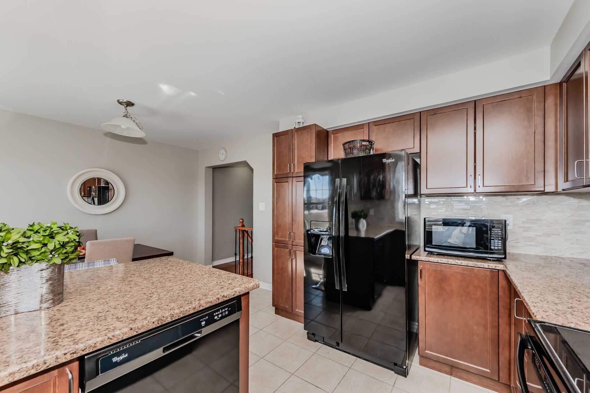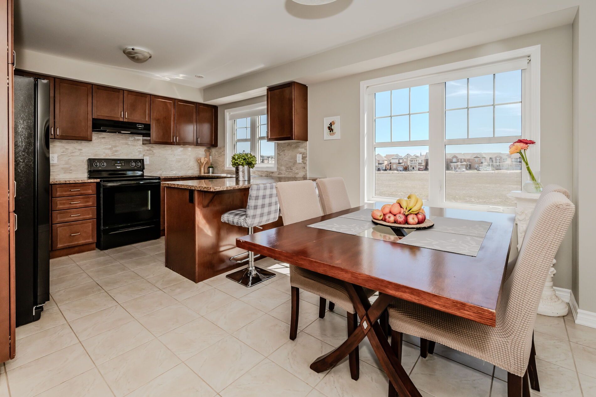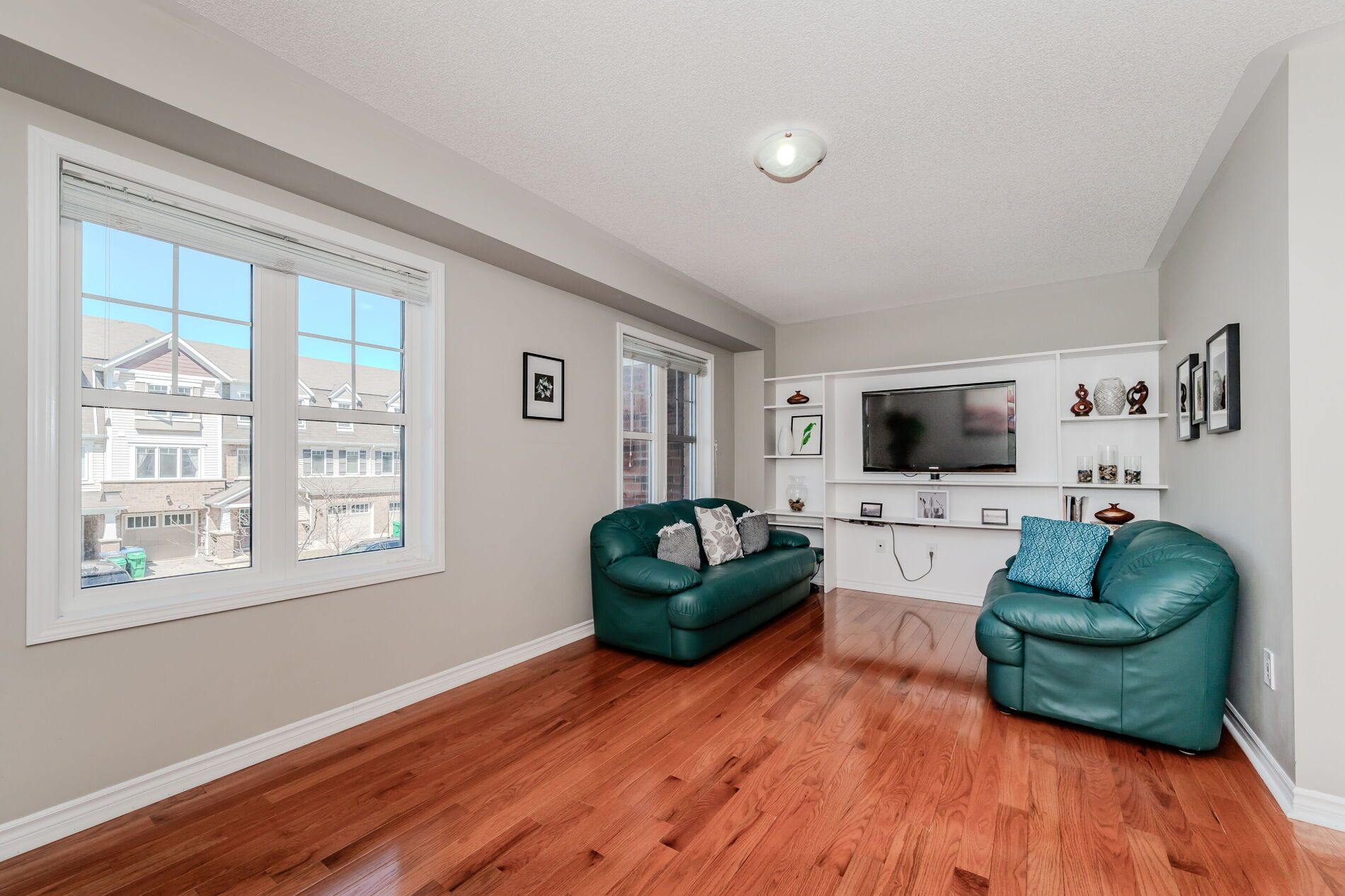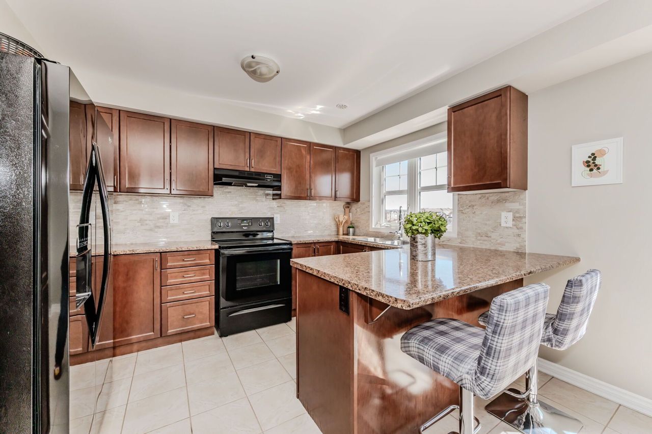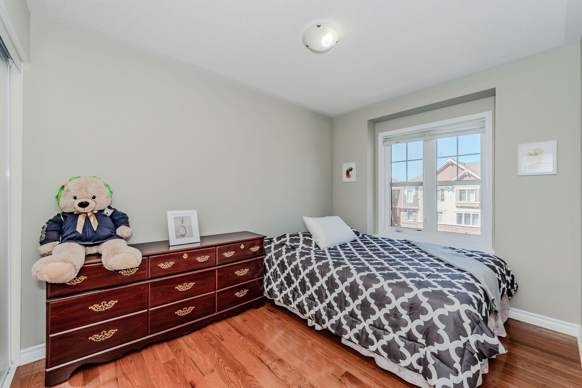 NO HOMES BEHIND | WELL DESIGNED FLOOR-PLAN | MUST SEE! . . . Exquisite 3-storey, three-bedroom Freehold townhome showcases a main floor with a thoughtfully designed layout, flooded with natural light through its expansive windows. Spacious combined living/dining area features hardwood flooring and an eye-catching entertainment center with contemporary white shelving. Meticulously designed family-size kitchen includes a generous breakfast area, currently serving as a dining space with a large table, offering views of a vast land. Bedroom floor layout is well-planned, with the secluded master suite located on one side of the home, complete with a private ensuite and walk-in closet, providing separation from the other two bedrooms which share a convenient washroom. The ground floor family room leads seamlessly to the private backyard, promising serene moments in your own retreat. Become the envy of the neighbourhood with a secluded backyard boasting no rear neighbours. Timeless and striking red brick exterior, paired with dark trims and dark roof shingles, adds to the home's charm and appeal. This home has been upgraded with hardwood flooring throughout, eliminating the need for carpets. Additionally, the staircase features hardwood and elegant iron wrought railings. Tucked away in a sought-after community, this residence serves as an idyllic sanctuary for both professionals and young families alike, with effortless access to the Mount Pleasant GO Station and surrounding amenities. Set in a tranquil neighbourhood, it provides convenient transit options with a nearby bus stop, as well as close proximity to schools and place of worship.