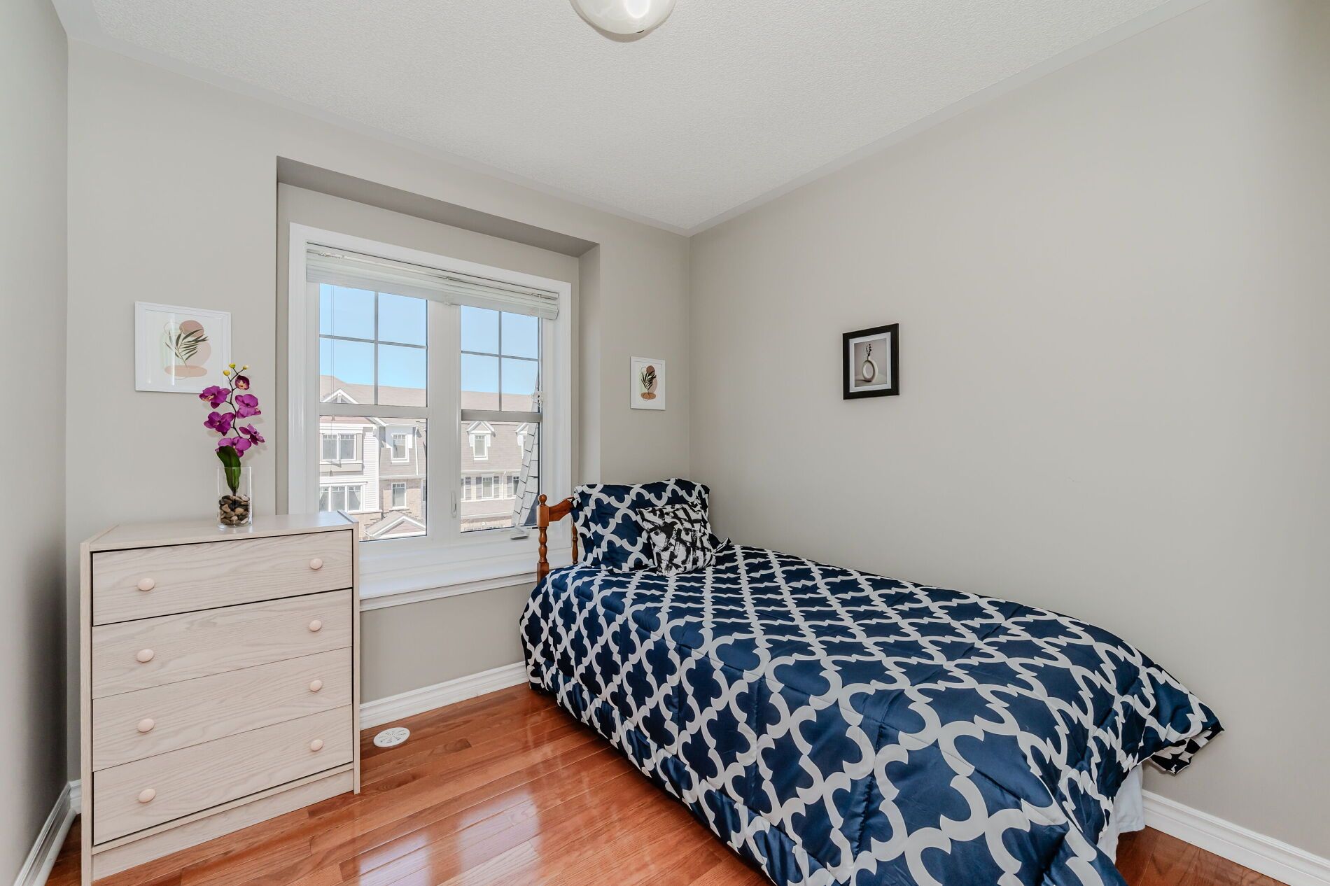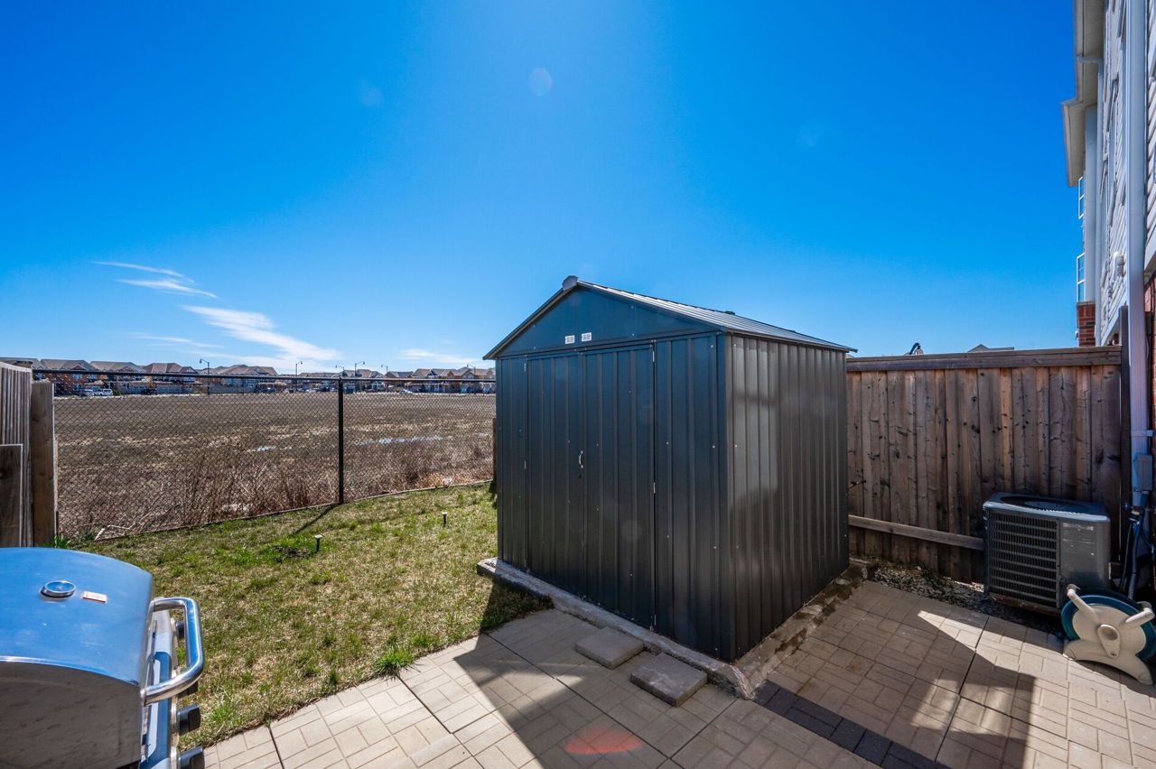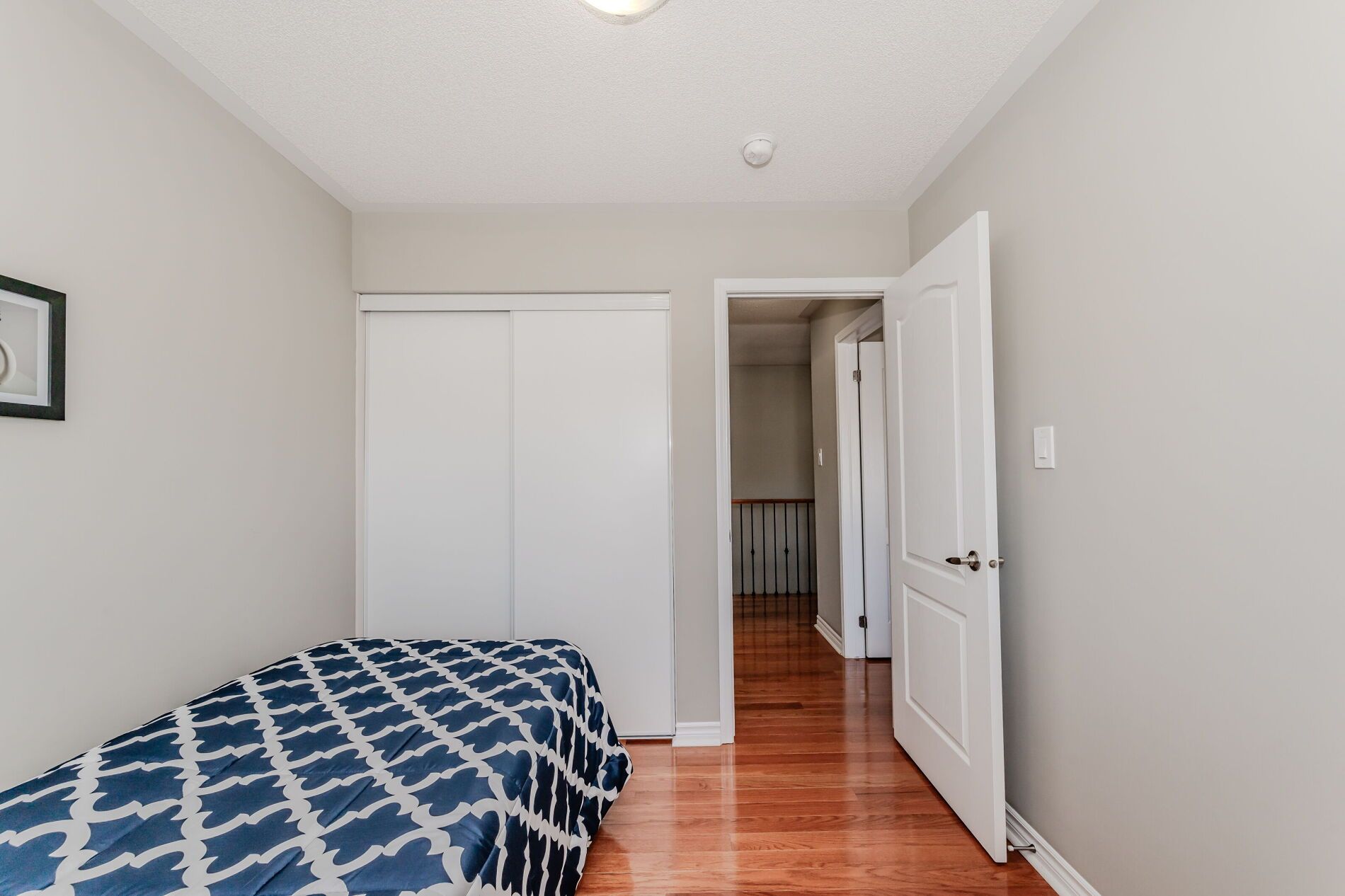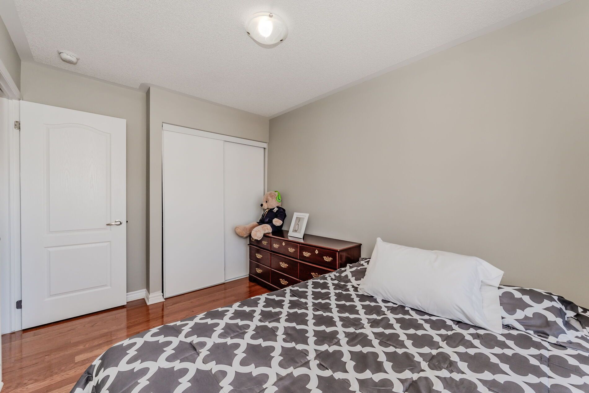 NO HOMES BEHIND | WELL DESIGNED FLOOR-PLAN | MUST SEE! . . . Exquisite 3-storey, three-bedroom Freehold townhome showcases a main floor with a thoughtfully designed layout, flooded with natural light through its expansive windows. Spacious combined living/dining area features hardwood flooring and an eye-catching entertainment center with contemporary white shelving. Meticulously designed family-size kitchen includes a generous breakfast area, currently serving as a dining space with a large table, offering views of a vast land. Bedroom floor layout is well-planned, with the secluded master suite located on one side of the home, complete with a private ensuite and walk-in closet, providing separation from the other two bedrooms which share a convenient washroom. The ground floor family room leads seamlessly to the private backyard, promising serene moments in your own retreat. Become the envy of the neighbourhood with a secluded backyard boasting no rear neighbours. Timeless and striking red brick exterior, paired with dark trims and dark roof shingles, adds to the home's charm and appeal. This home has been upgraded with hardwood flooring throughout, eliminating the need for carpets. Additionally, the staircase features hardwood and elegant iron wrought railings. Tucked away in a sought-after community, this residence serves as an idyllic sanctuary for both professionals and young families alike, with effortless access to the Mount Pleasant GO Station and surrounding amenities. Set in a tranquil neighbourhood, it provides convenient transit options with a nearby bus stop, as well as close proximity to schools and place of worship.