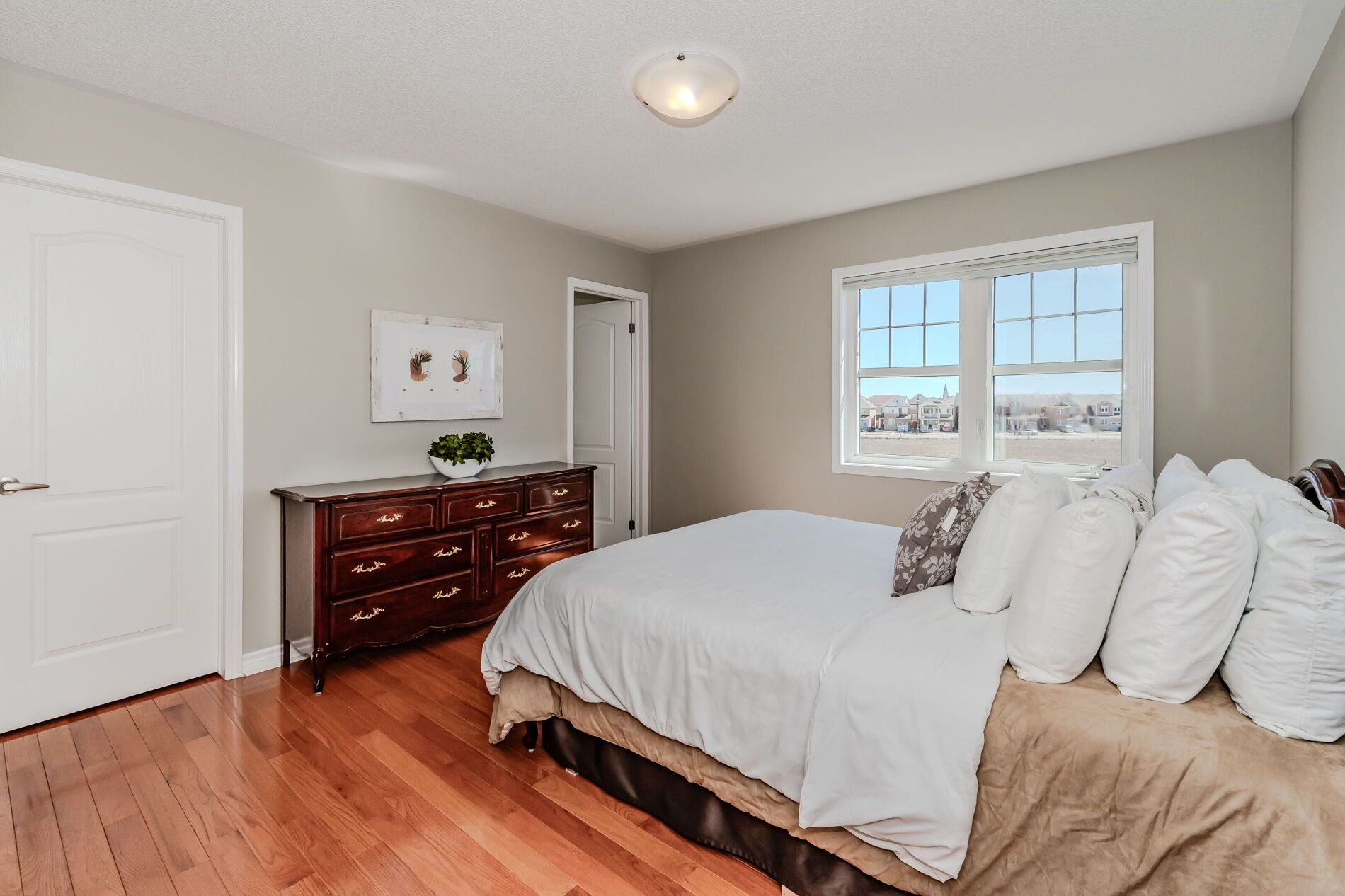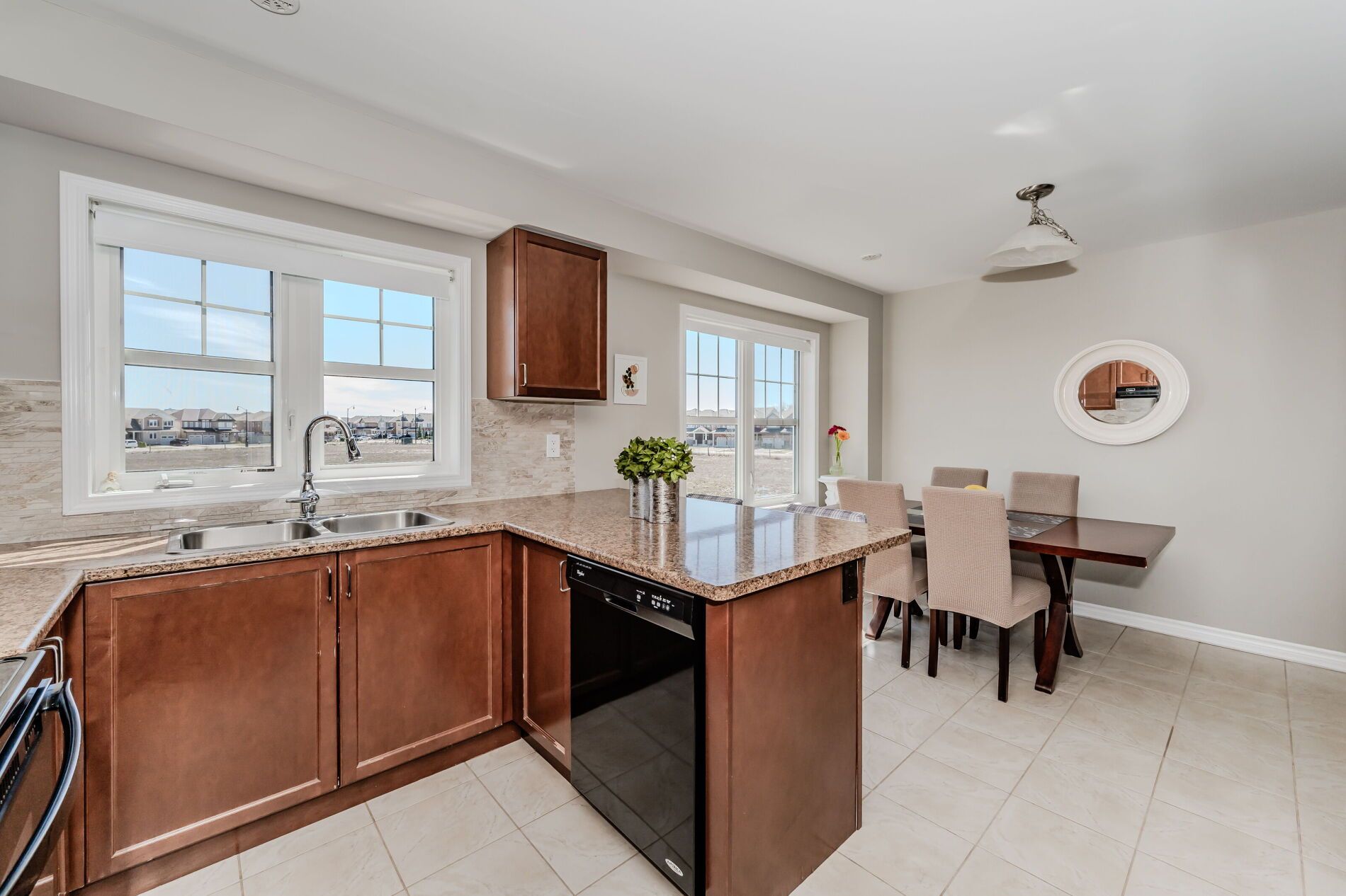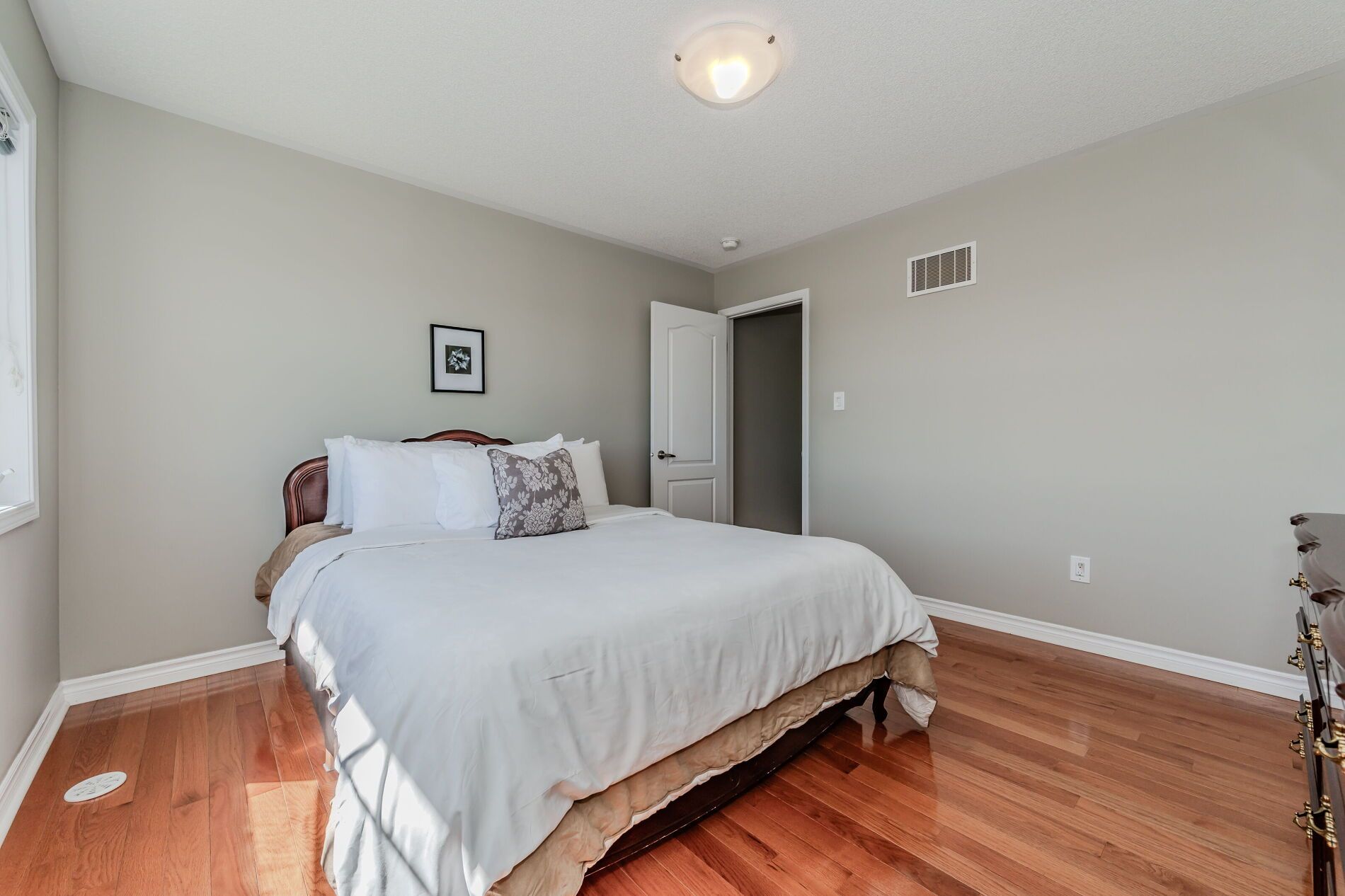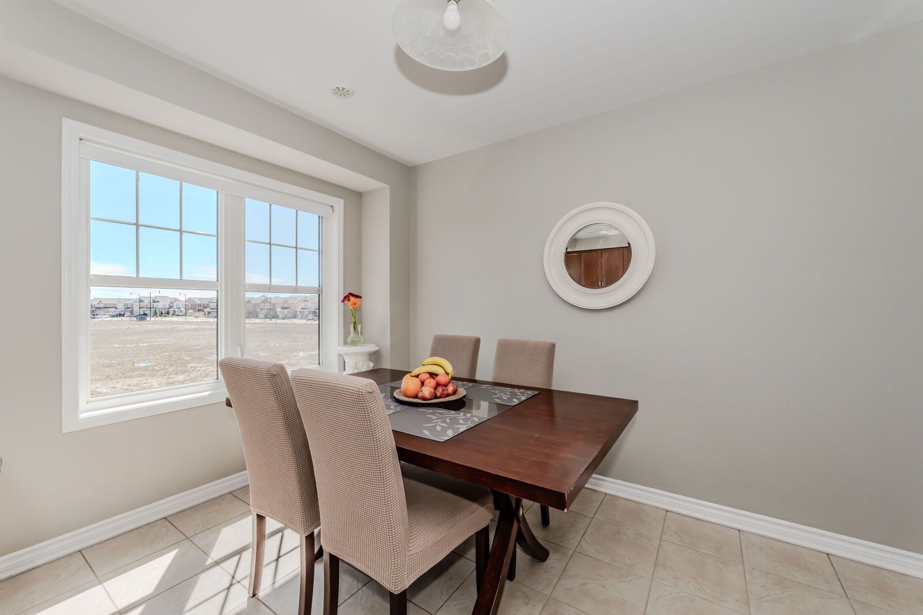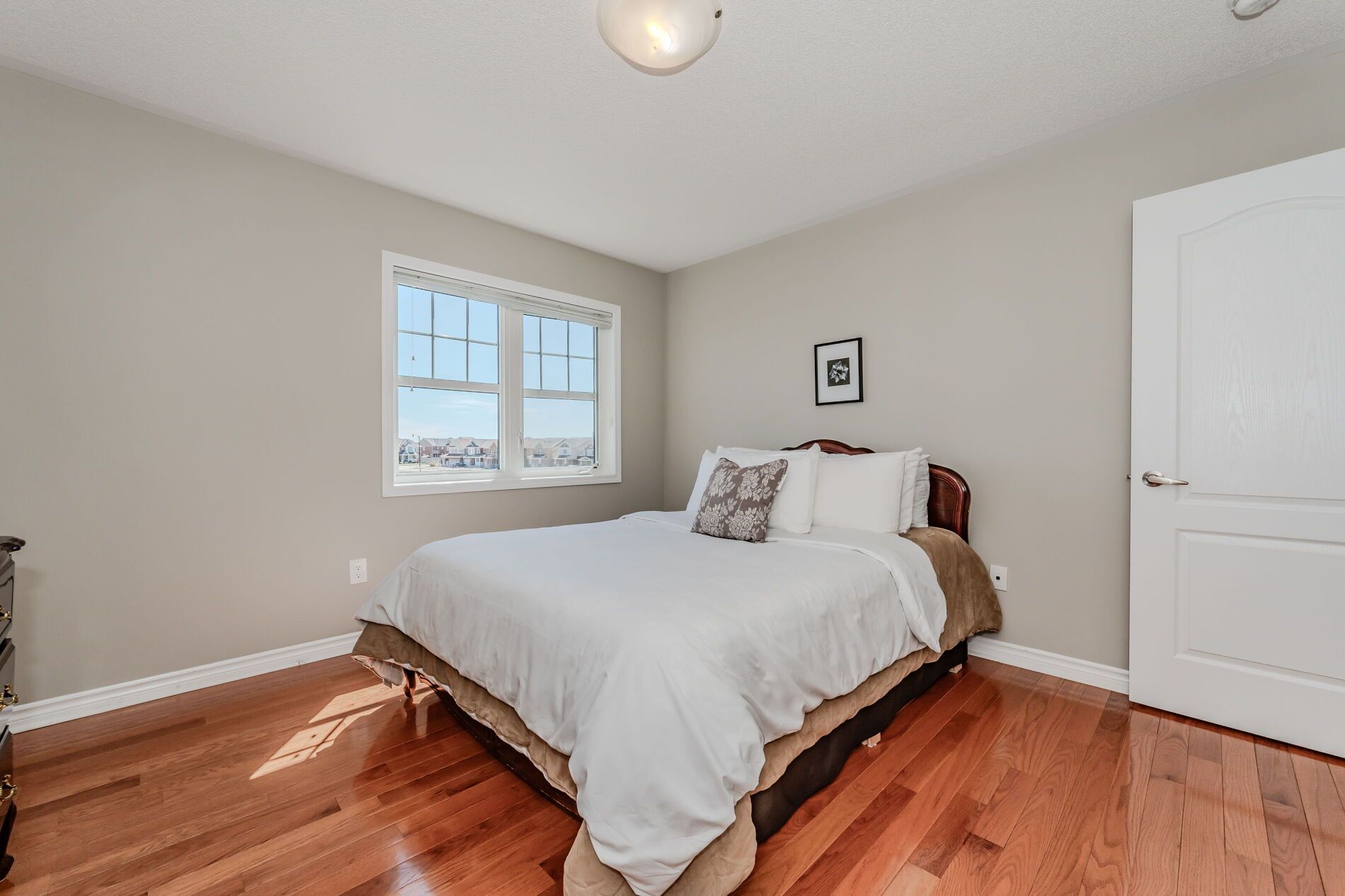 NO HOMES BEHIND | WELL DESIGNED FLOOR-PLAN | MUST SEE! . . . Exquisite 3-storey, three-bedroom Freehold townhome showcases a main floor with a thoughtfully designed layout, flooded with natural light through its expansive windows. Spacious combined living/dining area features hardwood flooring and an eye-catching entertainment center with contemporary white shelving. Meticulously designed family-size kitchen includes a generous breakfast area, currently serving as a dining space with a large table, offering views of a vast land. Bedroom floor layout is well-planned, with the secluded master suite located on one side of the home, complete with a private ensuite and walk-in closet, providing separation from the other two bedrooms which share a convenient washroom. The ground floor family room leads seamlessly to the private backyard, promising serene moments in your own retreat. Become the envy of the neighbourhood with a secluded backyard boasting no rear neighbours. Timeless and striking red brick exterior, paired with dark trims and dark roof shingles, adds to the home's charm and appeal. This home has been upgraded with hardwood flooring throughout, eliminating the need for carpets. Additionally, the staircase features hardwood and elegant iron wrought railings. Tucked away in a sought-after community, this residence serves as an idyllic sanctuary for both professionals and young families alike, with effortless access to the Mount Pleasant GO Station and surrounding amenities. Set in a tranquil neighbourhood, it provides convenient transit options with a nearby bus stop, as well as close proximity to schools and place of worship.