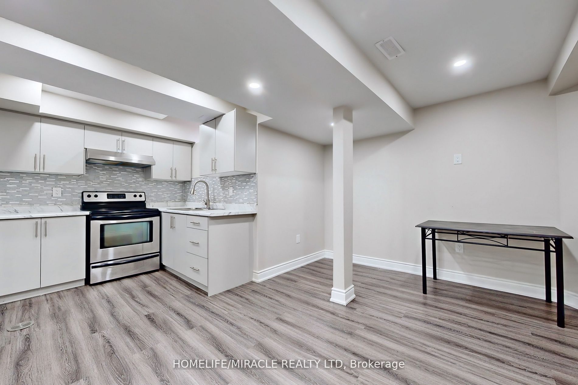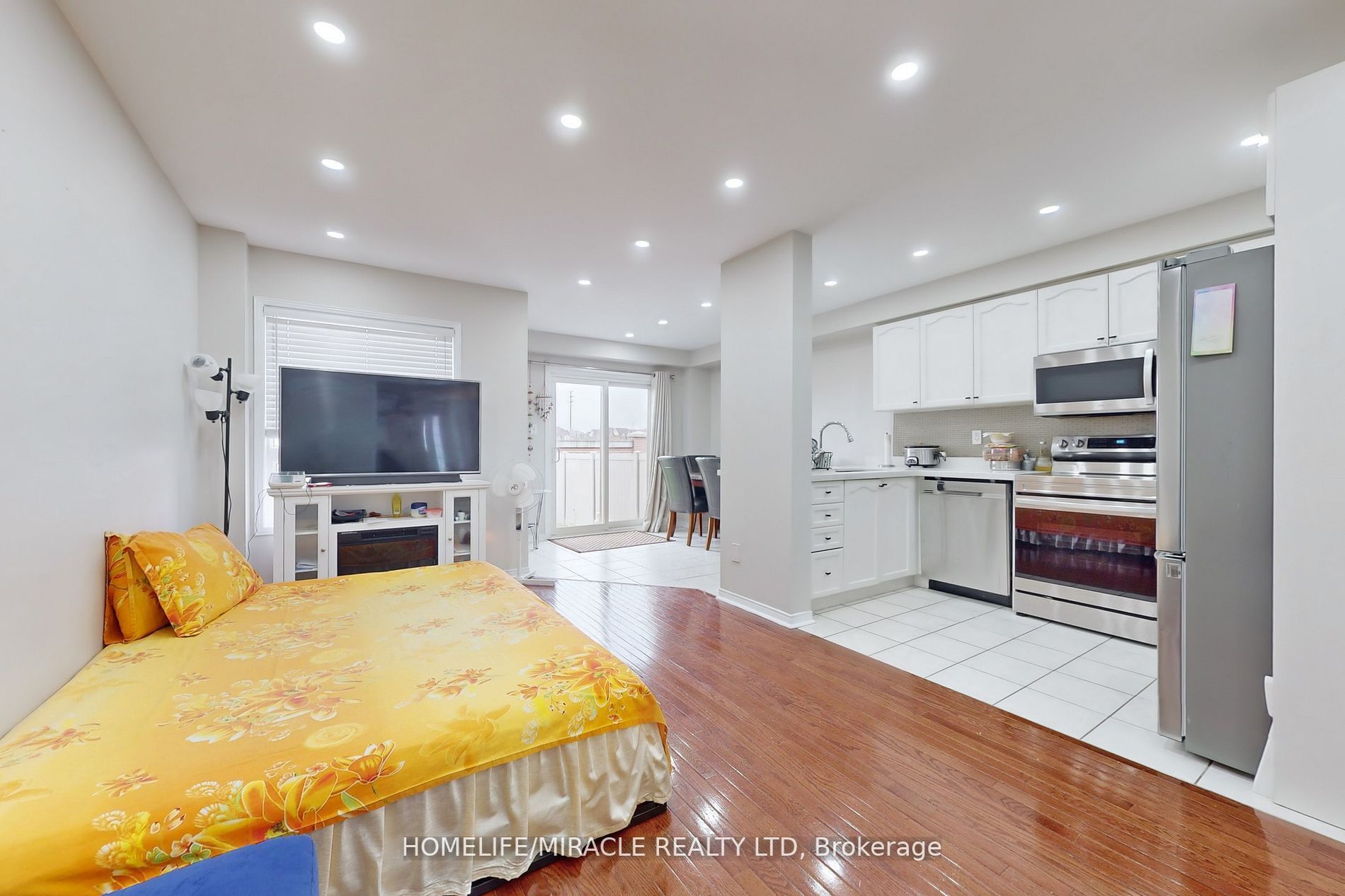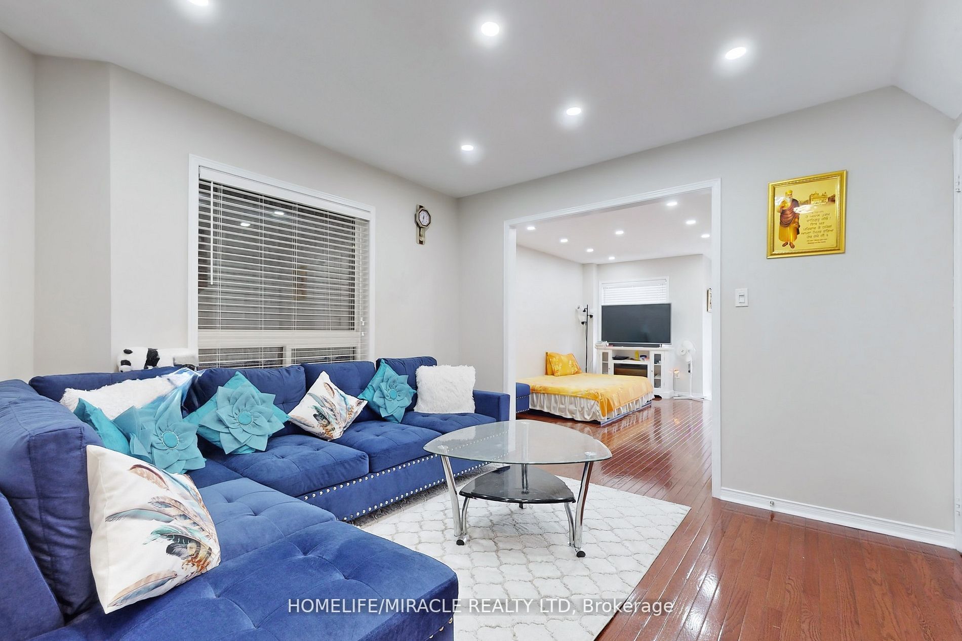 Welcome to this Beautiful and Well-maintained freehold townhouse With Finished Basement . As you step inside, the main floor will captivate you with its elegant hardwood flooring, the warmth of carefully placed pot lights, a formal dining area perfect for entertaining, a cozy family room, and a generously sized breakfast area. The spacious master bedroom features a luxurious five-piece Ensuite, while the second bathroom has been thoughtfully enhanced with a modern shower. The fully finished basement is a true gem, offering a full kitchen, a convenient bathroom, a welcoming bedroom, and a spacious living area.Separate Entrance permit approval by City. Extended Concrete Driveway. Premium Lot, no Homes at Back. 5 Minutes away from Walmart, Bank, Hwy 410. Great Rental Potential.