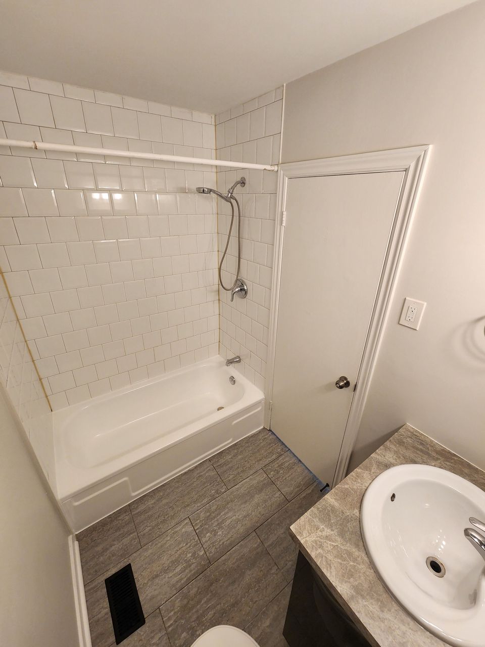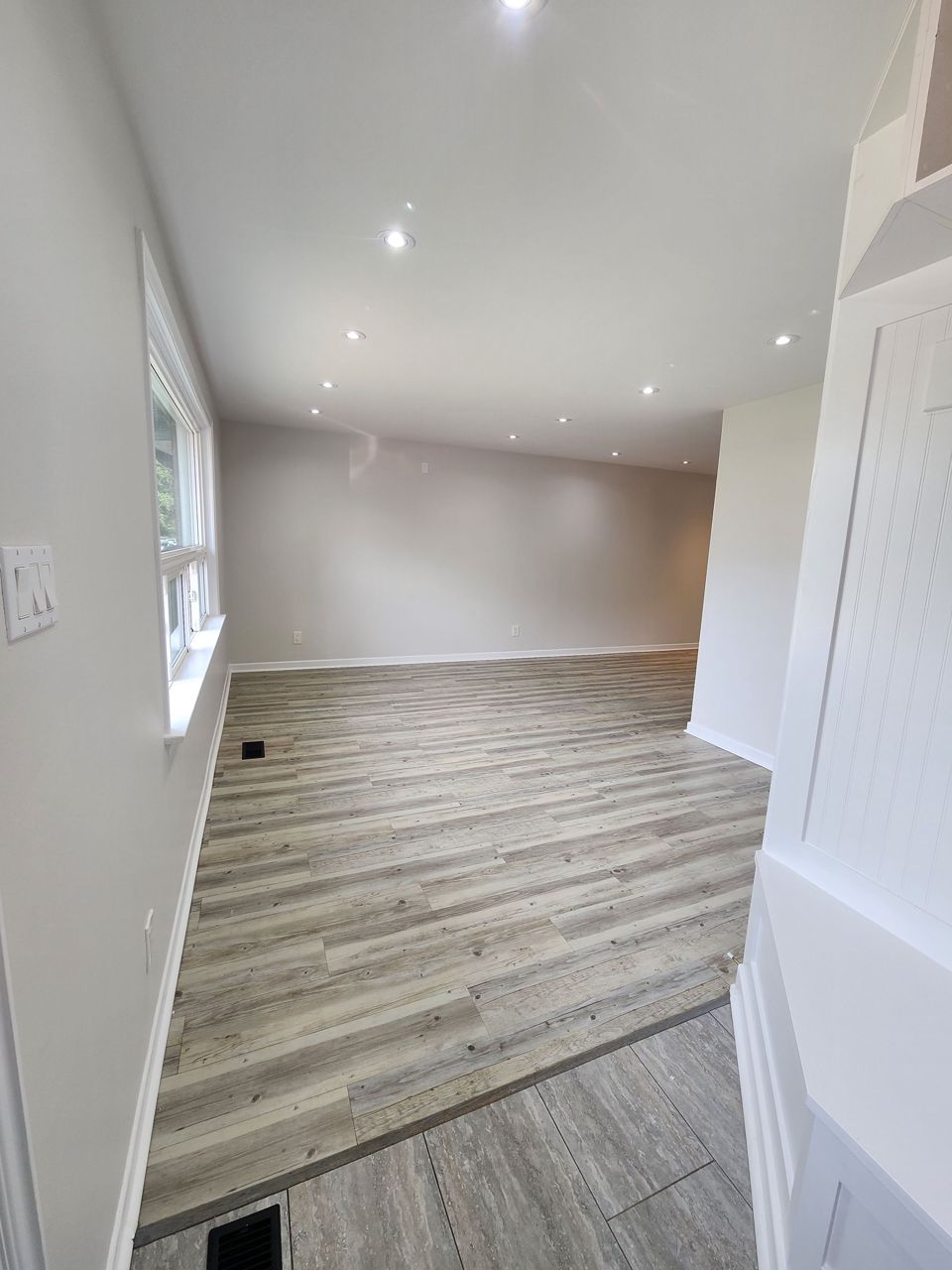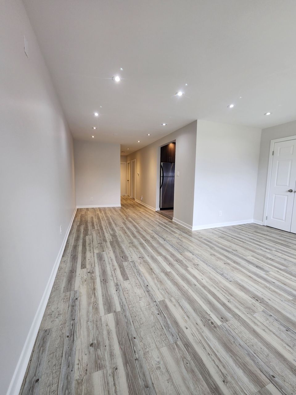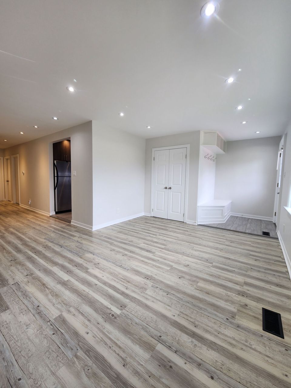 Welcome to this bright and sunny FULLY renovated 3 bedroom 1 bathroom home! Freshly painted and professionally renovated. Practical entryway leads to Open concept living and dining room. Galley kitchen features custom cabinetry, natural lighting and stainless steel appliances. 3 good sized bedrooms, new flooring, tiles and trim throughout. Ensuite laundry and central air. Shared backyard. Tenant pays fixed utilities of $250/month which includes internet & 3 parking spots. Located on a quiet family friendly street.Brand new fence just installed! Shared shed in backyard for extra storage.