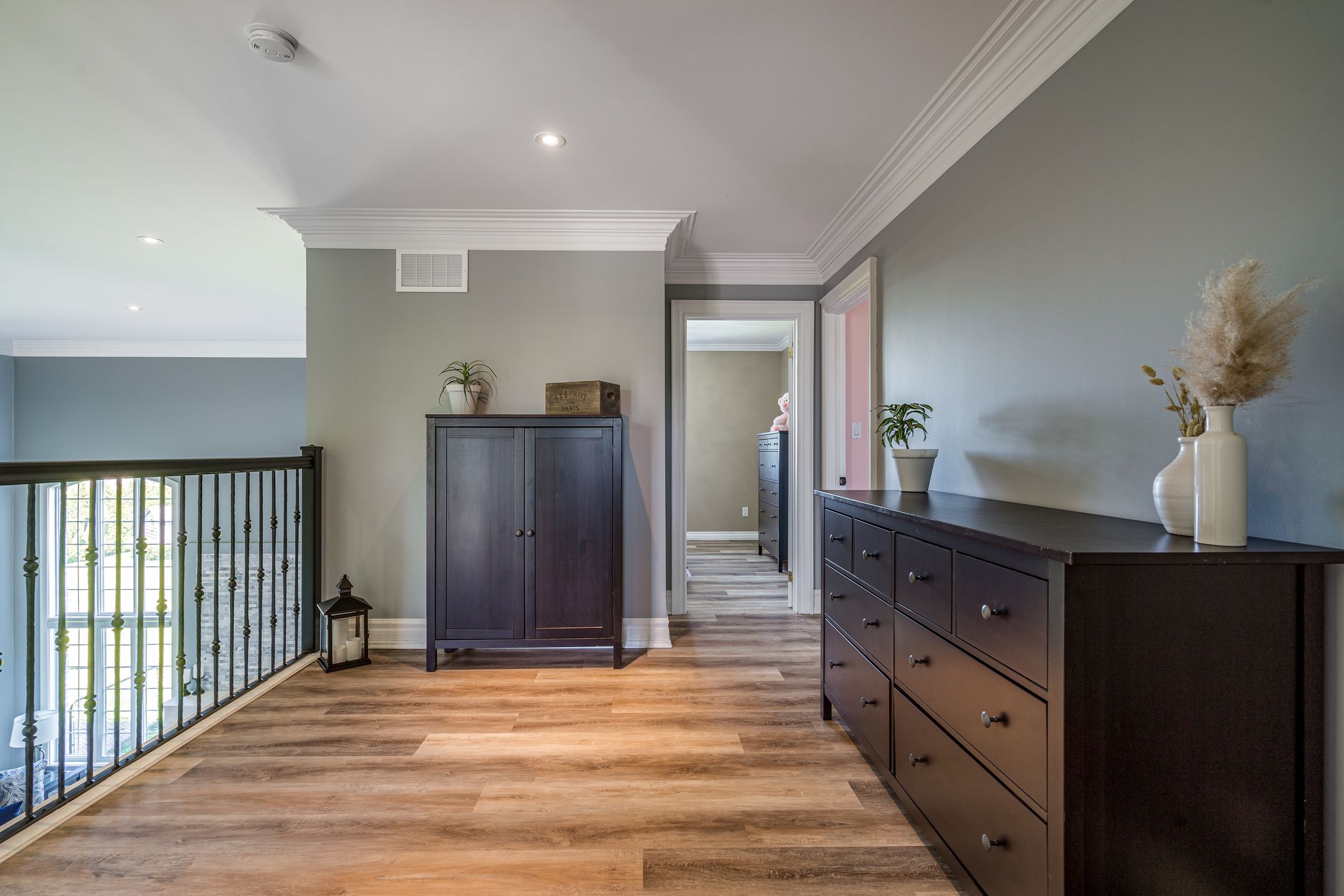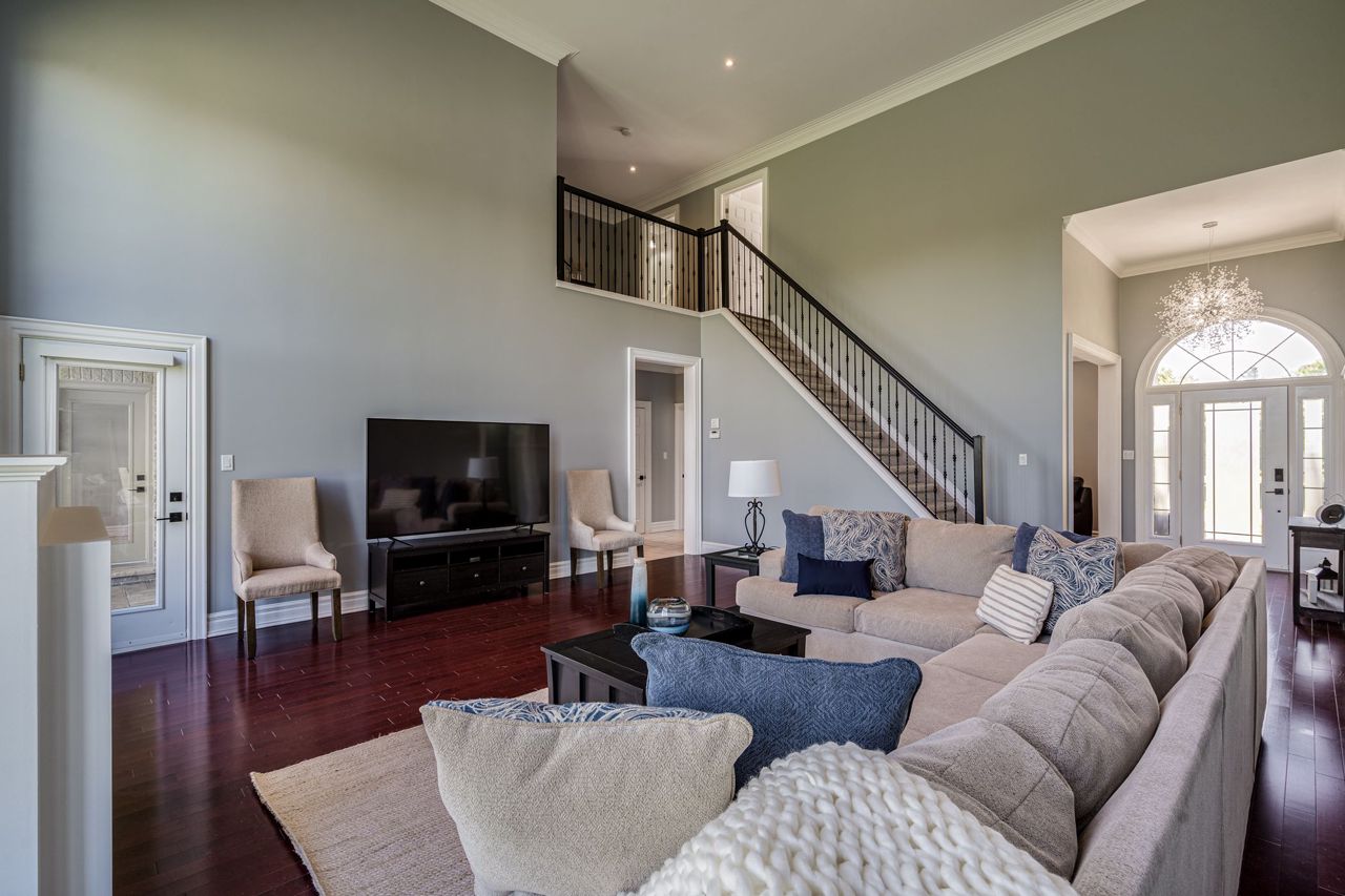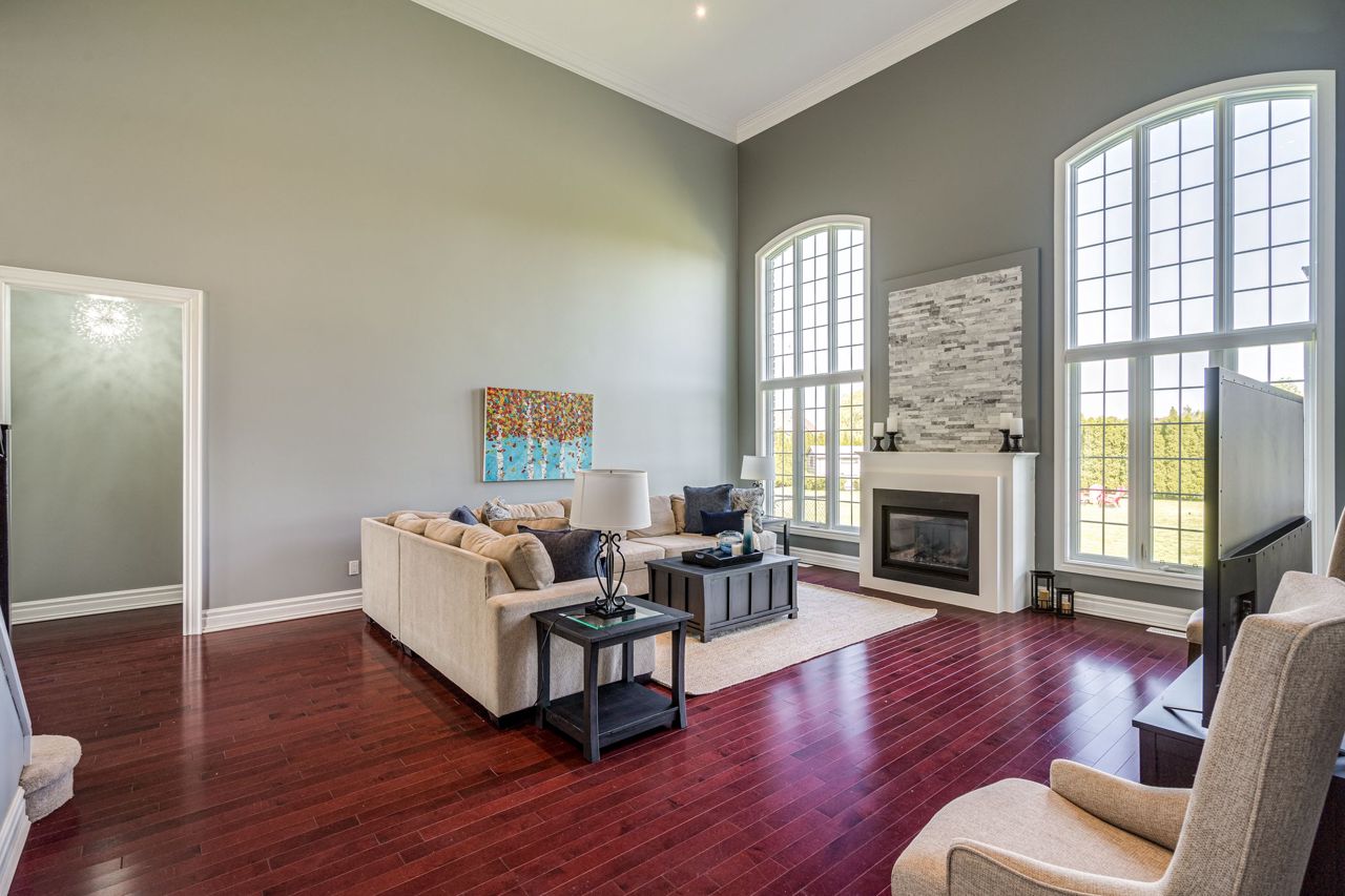 This is the Executive dream home you have been waiting for! Sitting on .78 acres of pure luxury! This home will not disappoint with main floor cathedral ceiling soaring 20’ feet! As you enter you are welcomed to a massive room that can be used as an office or dining room, the gleaming cherry hardwood floors exude elegance. The living room features floor to ceiling stone fireplace. You will not be disappointed with the privacy the main floor primary suite offers with generous walk in closet and huge soaker tub. The kitchen is adorned with quartz countertops and cherry cabinets with plenty of room for dining and access to your stunning backyard that looks like it belongs in the movies! The second floor offers 3 huge bedrooms, 4 piece bathroom new stunning luxury vinyl plank flooring, and rooms that have been freshly painted. The massive basement is yours to turn into your dream home theatre and entertaining man cave.Lots of extras in this home have been completed. Painting, Upstairs flooring, well pump, appliances, vanities, toilets, light fixtures. See supplements.
