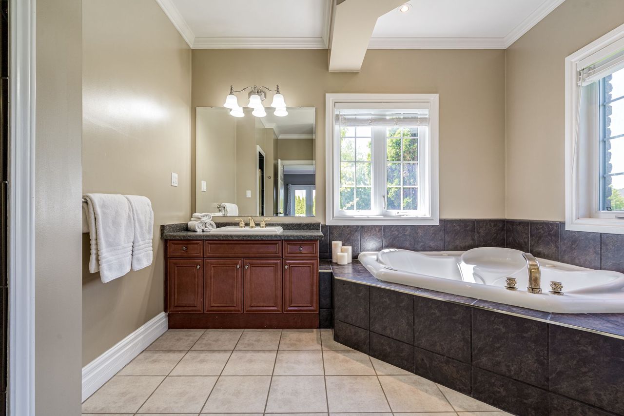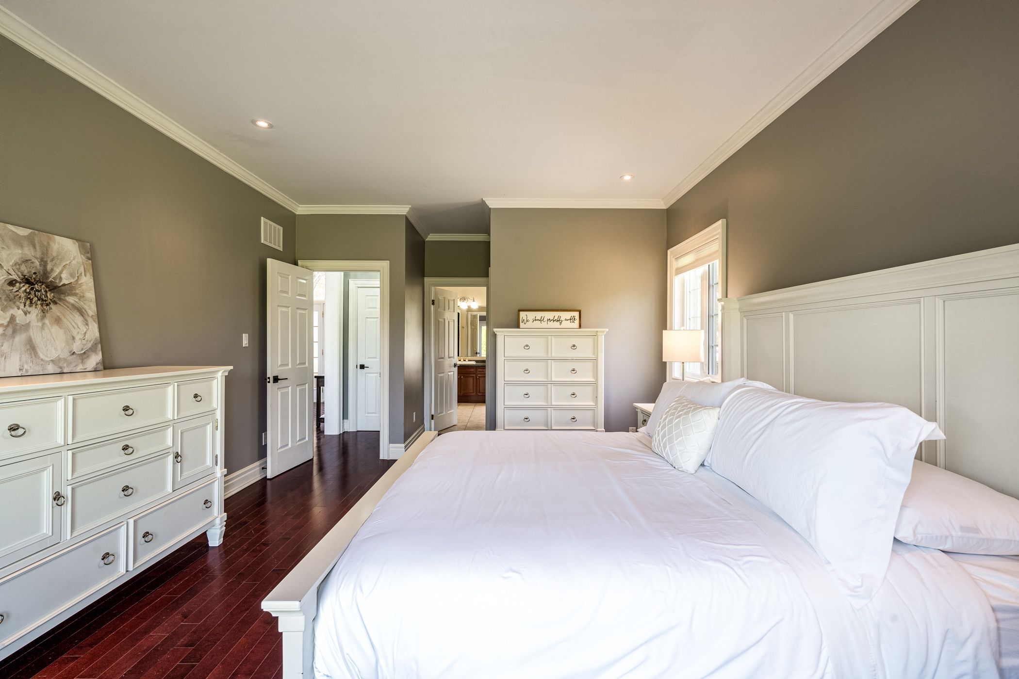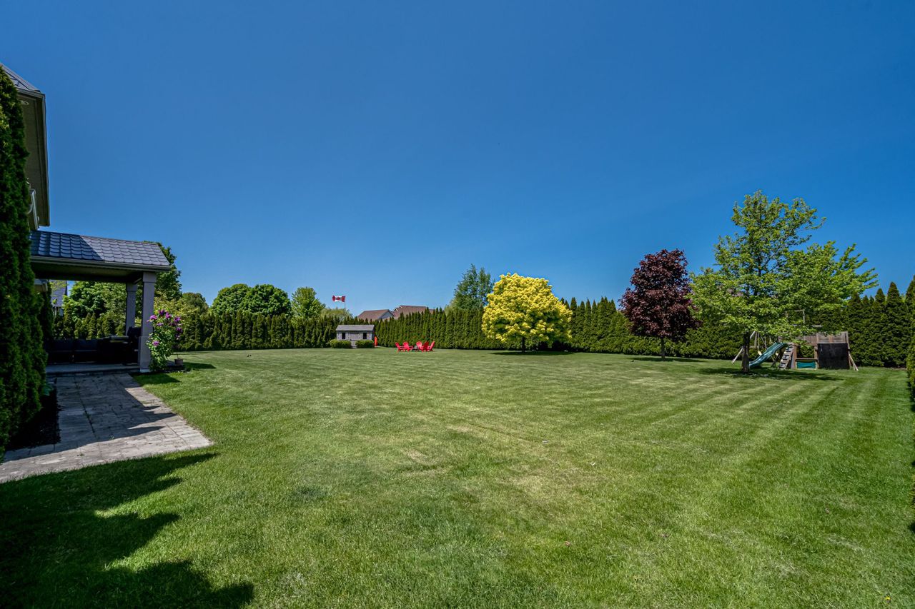 This is the Executive dream home you have been waiting for! Sitting on .78 acres of pure luxury! This home will not disappoint with main floor cathedral ceiling soaring 20’ feet! As you enter you are welcomed to a massive room that can be used as an office or dining room, the gleaming cherry hardwood floors exude elegance. The living room features floor to ceiling stone fireplace. You will not be disappointed with the privacy the main floor primary suite offers with generous walk in closet and huge soaker tub. The kitchen is adorned with quartz countertops and cherry cabinets with plenty of room for dining and access to your stunning backyard that looks like it belongs in the movies! The second floor offers 3 huge bedrooms, 4 piece bathroom new stunning luxury vinyl plank flooring, and rooms that have been freshly painted. The massive basement is yours to turn into your dream home theatre and entertaining man cave.Lots of extras in this home have been completed. Painting, Upstairs flooring, well pump, appliances, vanities, toilets, light fixtures. See supplements.