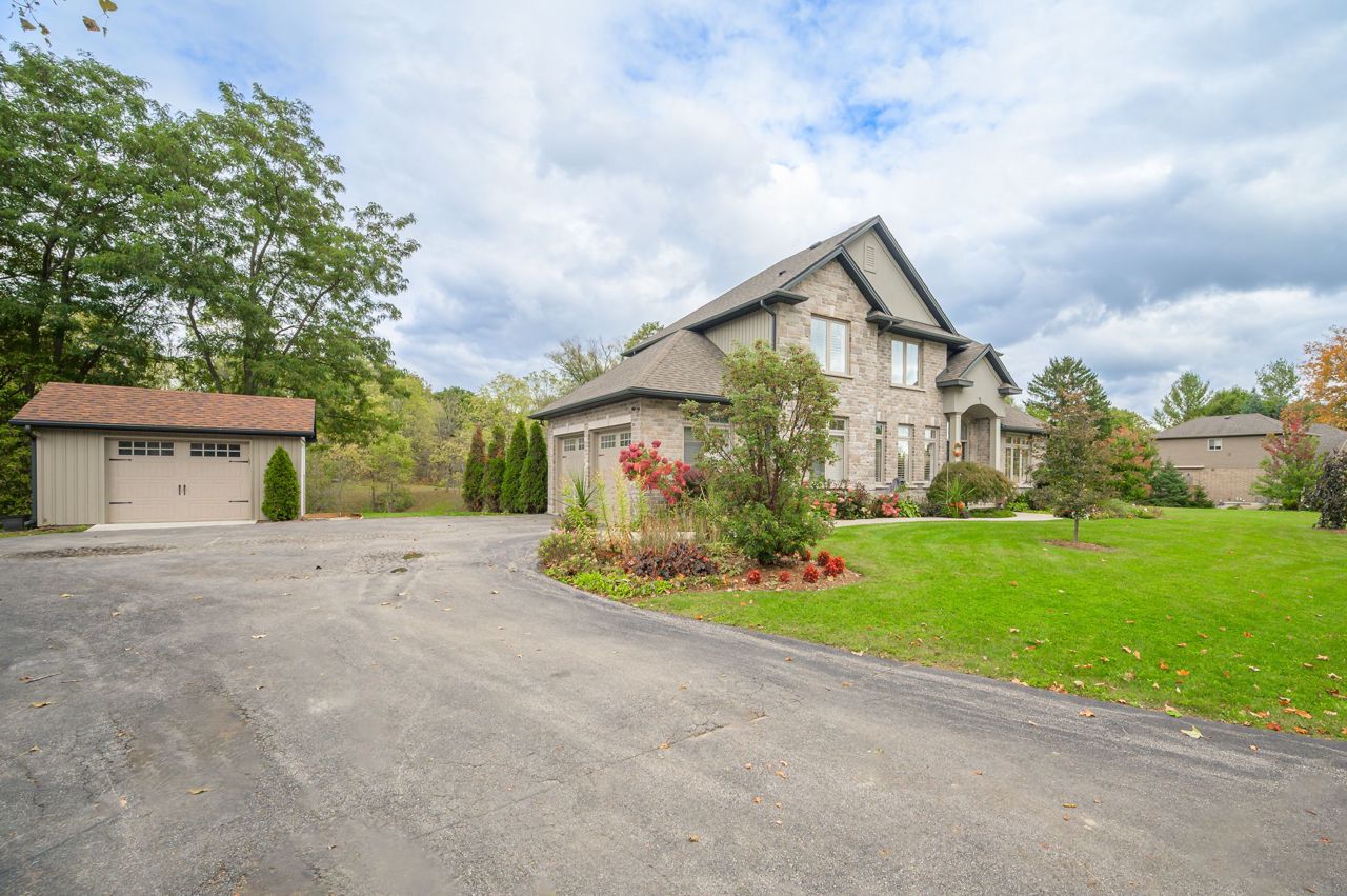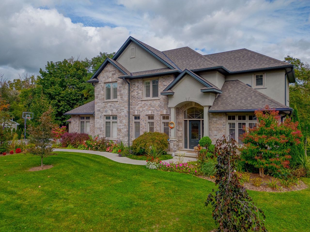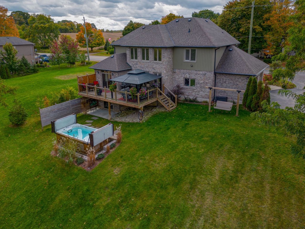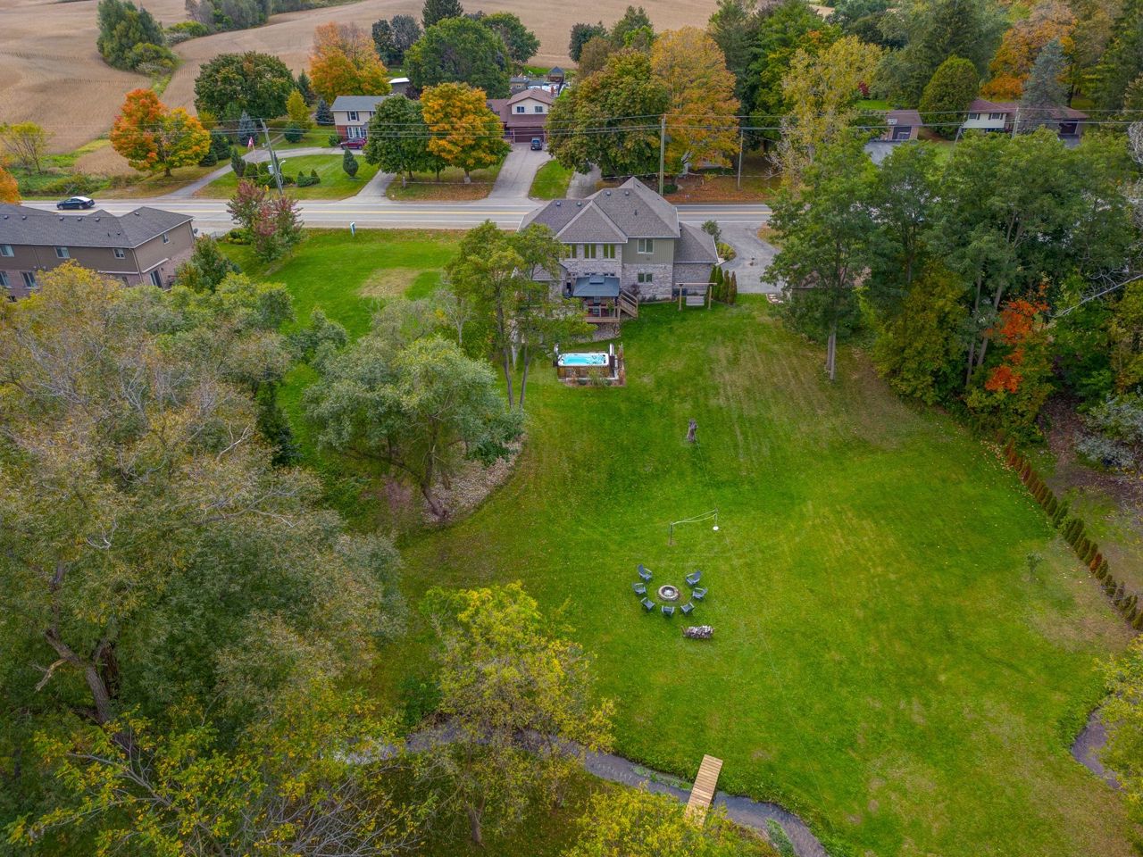 Sprawling 2.9-acres featuring a meandering creek, this property offers an unparalleled blend of natural beauty & modern convenience. Luxury Living in the quaint Village of St.George Impeccably finished from top to bottom, this 2-storey smart hm features neutral decor & elegant engineered hrdwd flrs thru-out. Layout incl’s office, spacious kit, din area, & a liv rm w/a cozy gas F/P & soaring high ceilings. W-O to deck for bbqs & relax in the saltwater swim spa O/L’ing a natural paradise. The liv rm's windows are equipped w/solar film to keep the interior cool & energy-efficient. A splendid wrought iron staircase, providing a picturesque view below, gracefully ascends to 3 spacious bdrms, incl’s a luxurious primary suite. The W/O bsmt boasts a 4th bdrm, a convenient kitchenette, a gas F/P, & vinyl plank flrs. As an extra perk, there's a double garage fully insulated & heated + a separate blding for added storage. This charming home is surrounded by beauty & nature. Book your appt today!alarm system, auto Garage Door Remote(s), Central Vacuum, Water Purifier, Water Softener, Furnace new (Feb 2023)