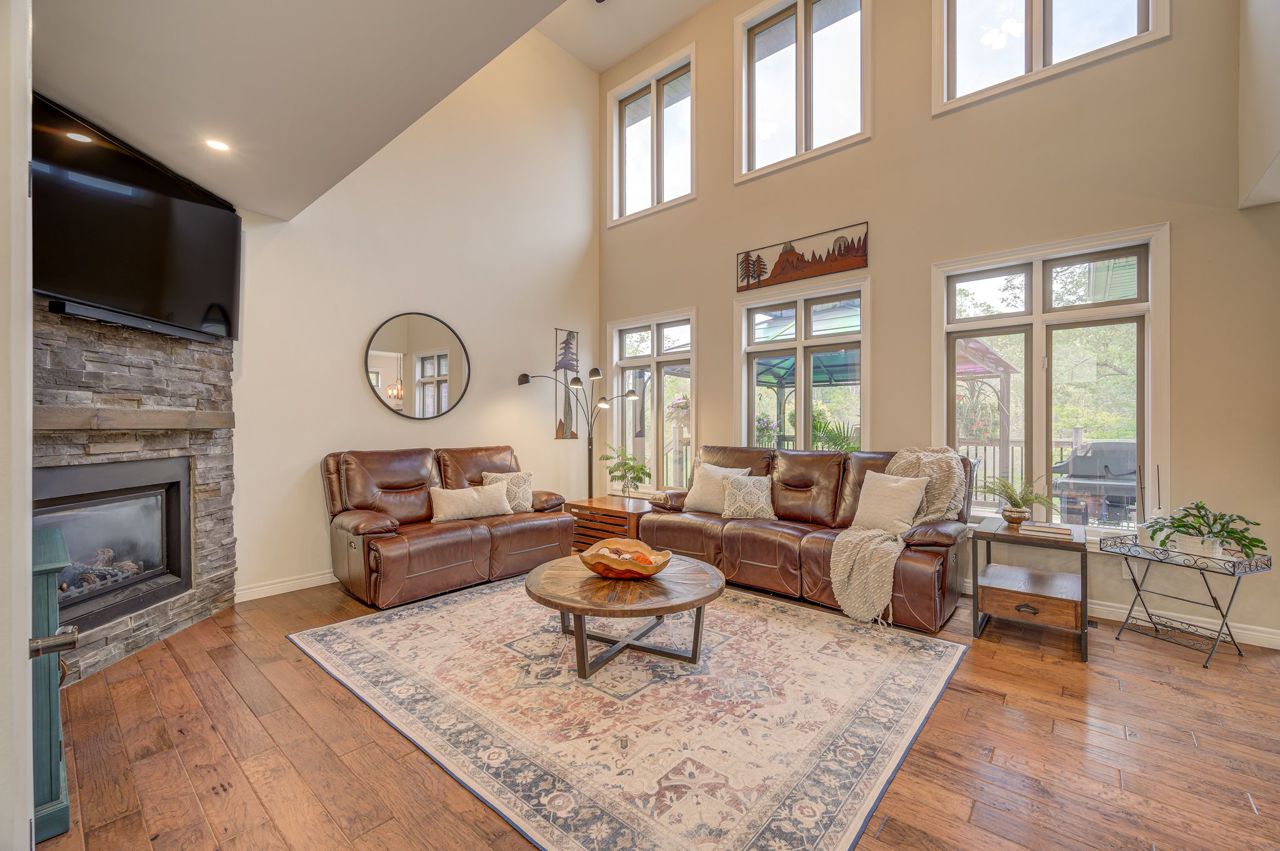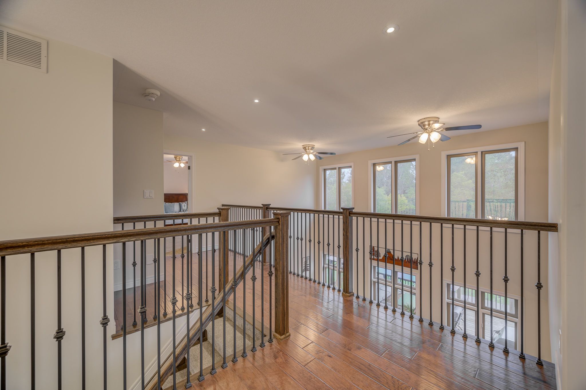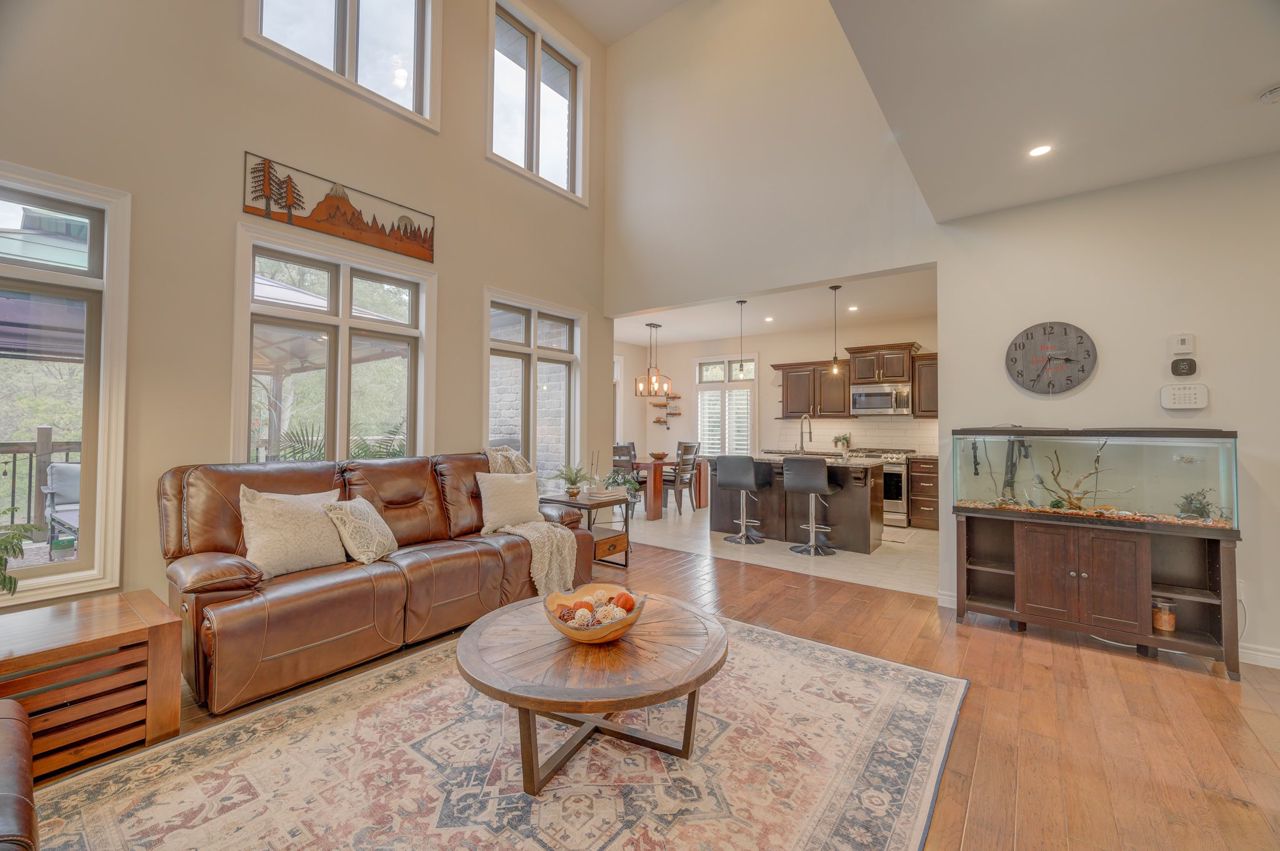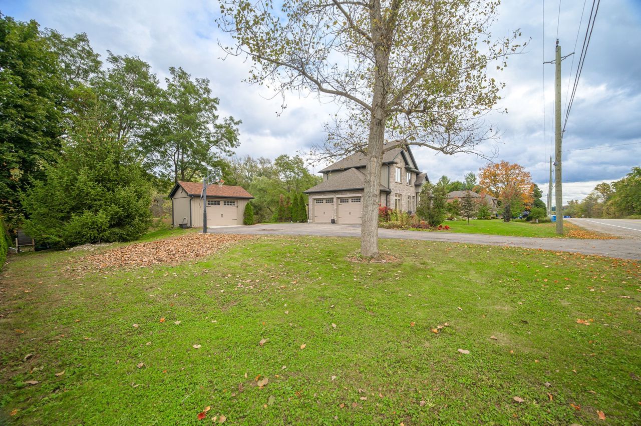 Sprawling 2.9-acres featuring a meandering creek, this property offers an unparalleled blend of natural beauty & modern convenience. Luxury Living in the quaint Village of St.George Impeccably finished from top to bottom, this 2-storey smart hm features neutral decor & elegant engineered hrdwd flrs thru-out. Layout incl’s office, spacious kit, din area, & a liv rm w/a cozy gas F/P & soaring high ceilings. W-O to deck for bbqs & relax in the saltwater swim spa O/L’ing a natural paradise. The liv rm's windows are equipped w/solar film to keep the interior cool & energy-efficient. A splendid wrought iron staircase, providing a picturesque view below, gracefully ascends to 3 spacious bdrms, incl’s a luxurious primary suite. The W/O bsmt boasts a 4th bdrm, a convenient kitchenette, a gas F/P, & vinyl plank flrs. As an extra perk, there's a double garage fully insulated & heated + a separate blding for added storage. This charming home is surrounded by beauty & nature. Book your appt today!alarm system, auto Garage Door Remote(s), Central Vacuum, Water Purifier, Water Softener, Furnace new (Feb 2023)