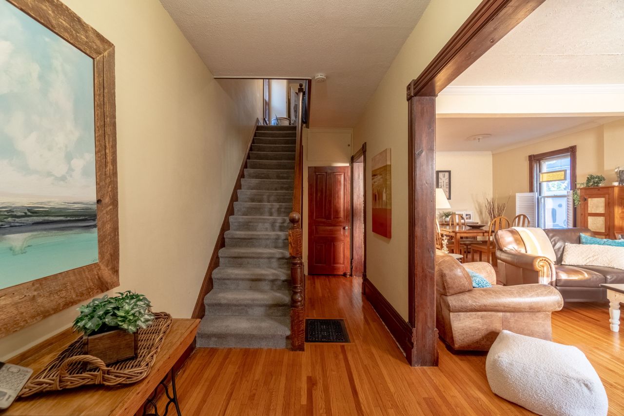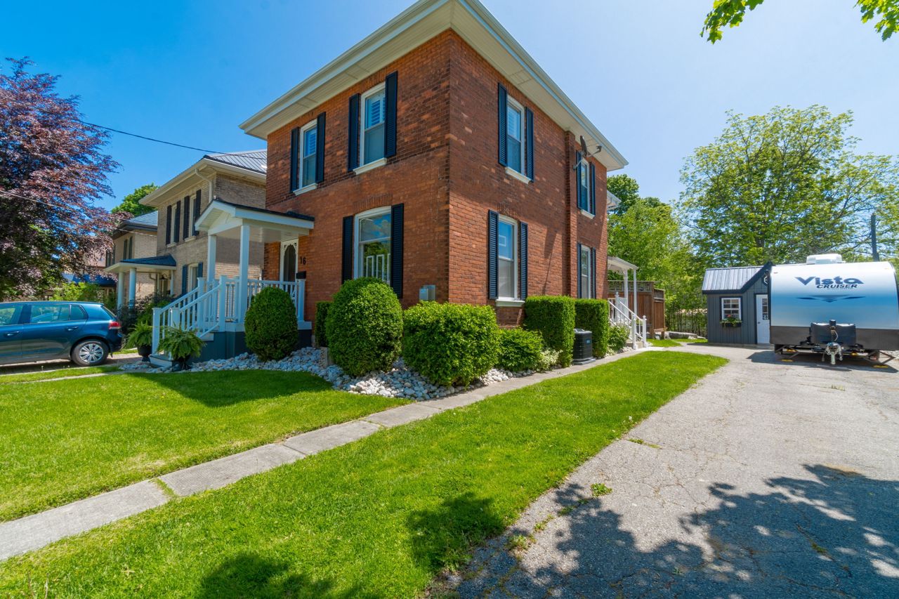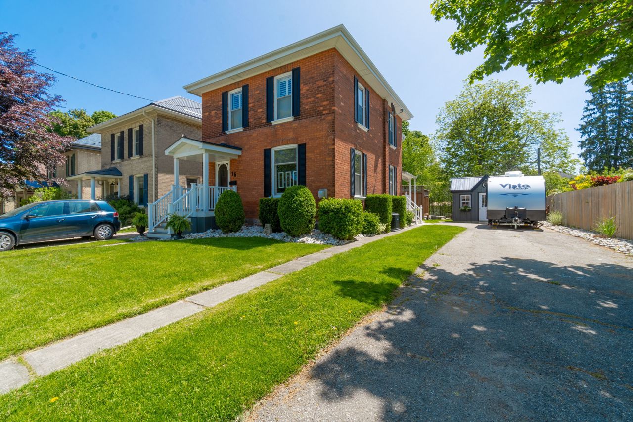 This property is the perfect blend of historic charm and modern comforts, waiting for the ideal family to call it home. 16 Alexander Avenue offers a unique character and endless possibilities that you need to experience firsthand. The main floor features a large eat-in kitchen with access to a side porch and sliders leading to the private backyard. The open concept living and dining room with gas fireplace provide a welcoming space for gatherings, a powder room for added convenience. Upstairs, you'll find 4 well-appointed bedrooms and an updated bathroom. The finished basement includes a rare rec-room, extra storage & laundry facilities.Outdoor living is a delight on this property, with a beautifully landscaped, pool-sized yard that features a private patio with a hot tub surrounded by elegant armour stone & a driveway that comfortably hosts 4 vehicles. This property blends historic charm with modern comforts, awaiting the perfect family to make it home.Updates include Furnace/AC (aprox 2 yrs), Roof Shingles (aprox 7 yrs), Newer Carpets Upstairs & Basement Carpet, Both Bathrooms Updated, Hot Tub New Mother Board