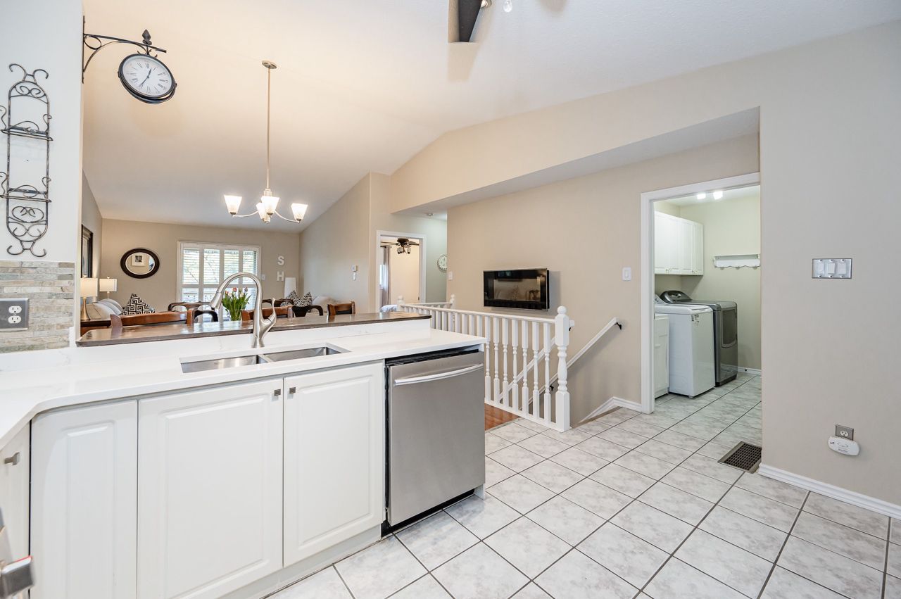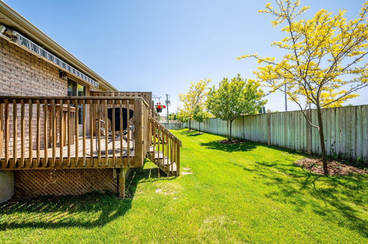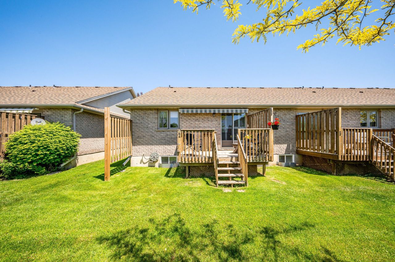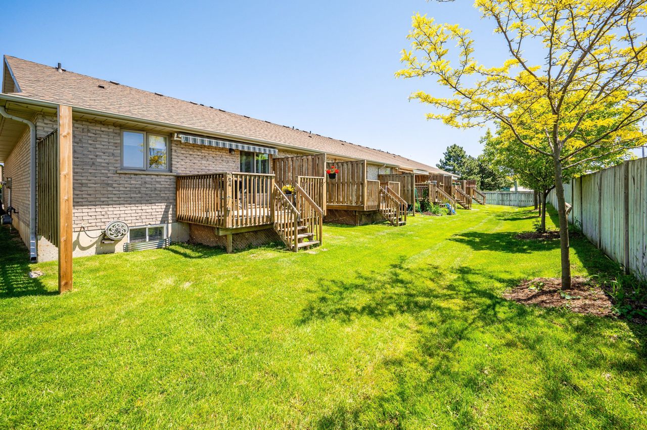 Spacious end-unit bungalow close to downtown picturesque Paris. Step inside your move-in ready home to find a spacious bedroom or office at the front of the home. Make your way to the bright and airy kitchen with lovely quartz countertops, gas range, and breakfast bar. The vaulted ceilings and open-concept space provide sight lines to your well-appointed dining and living room spaces complete with hardwood flooring. A large bedroom and bright 4-piece bathroom are situated just off of the living space. Walk out and relax on your spacious deck complete with retractable awning overlooking the quaint yard. The main floor is complete with laundry room and access to your single car garage. Plenty more usable space awaits downstairs in the expansive Rec room with cozy gas fireplace. Downstairs you'll also find a massive bedroom with walk-in closet and full bathroom with huge walk-in shower. Plenty of storage space awaits in the utility area and extra den.Many recent updates including roof, furnace (2022), AC (2022), washing machine (2023), Water softener (2019) and is close to all amenities including 403 access just minutes away.