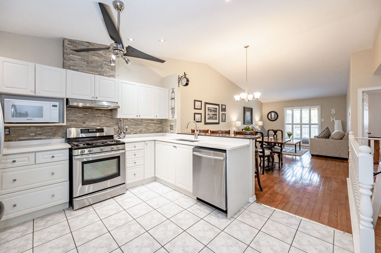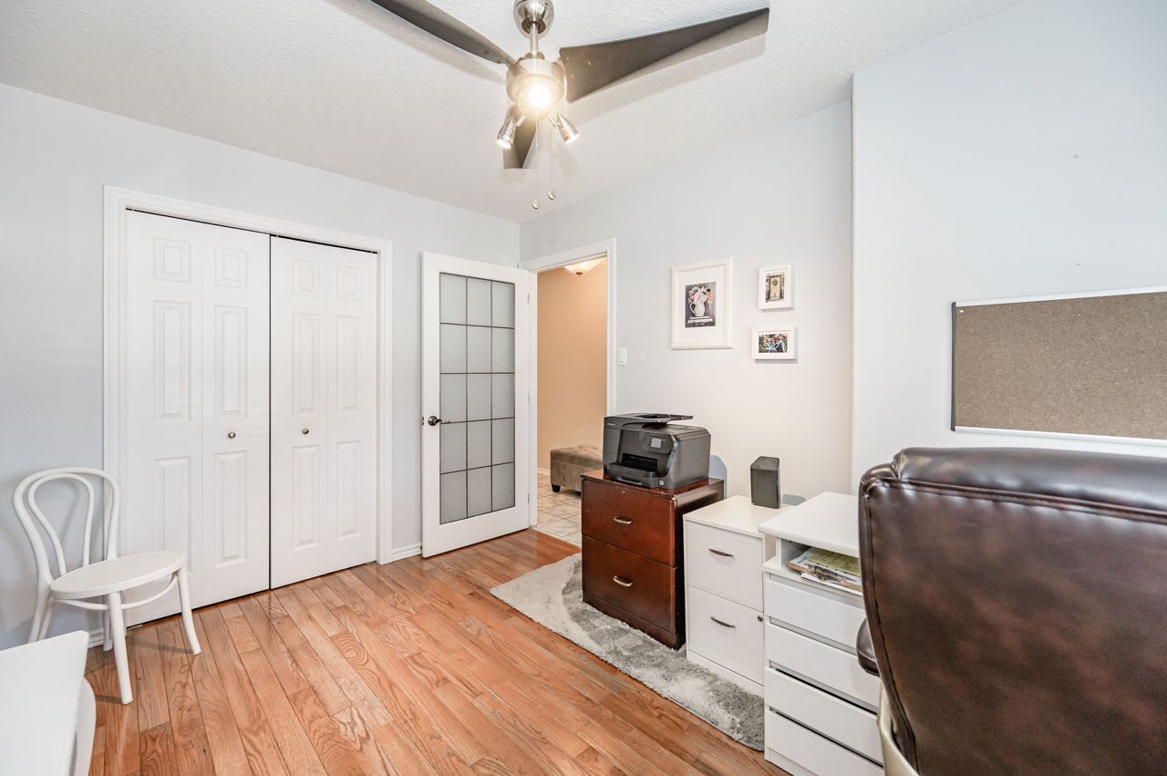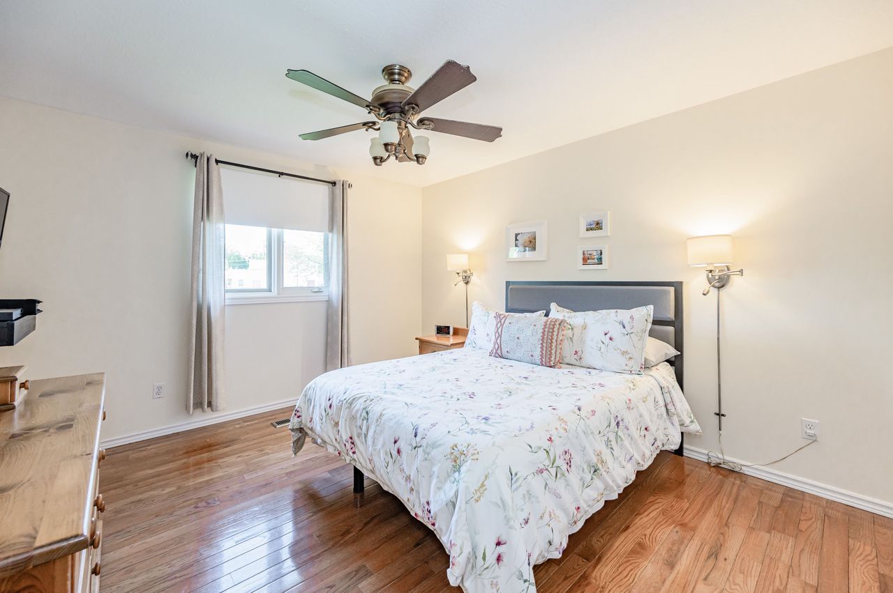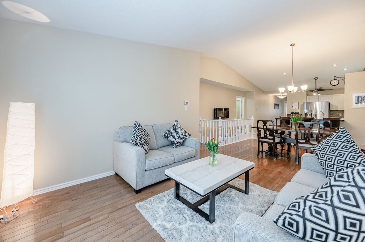 Spacious end-unit bungalow close to downtown picturesque Paris. Step inside your move-in ready home to find a spacious bedroom or office at the front of the home. Make your way to the bright and airy kitchen with lovely quartz countertops, gas range, and breakfast bar. The vaulted ceilings and open-concept space provide sight lines to your well-appointed dining and living room spaces complete with hardwood flooring. A large bedroom and bright 4-piece bathroom are situated just off of the living space. Walk out and relax on your spacious deck complete with retractable awning overlooking the quaint yard. The main floor is complete with laundry room and access to your single car garage. Plenty more usable space awaits downstairs in the expansive Rec room with cozy gas fireplace. Downstairs you'll also find a massive bedroom with walk-in closet and full bathroom with huge walk-in shower. Plenty of storage space awaits in the utility area and extra den.Many recent updates including roof, furnace (2022), AC (2022), washing machine (2023), Water softener (2019) and is close to all amenities including 403 access just minutes away.