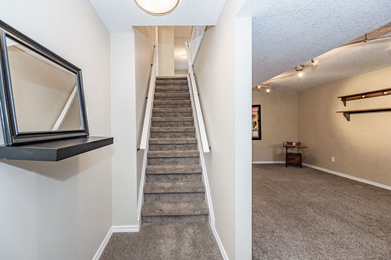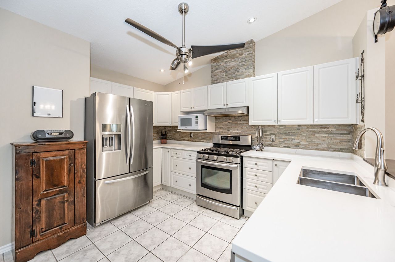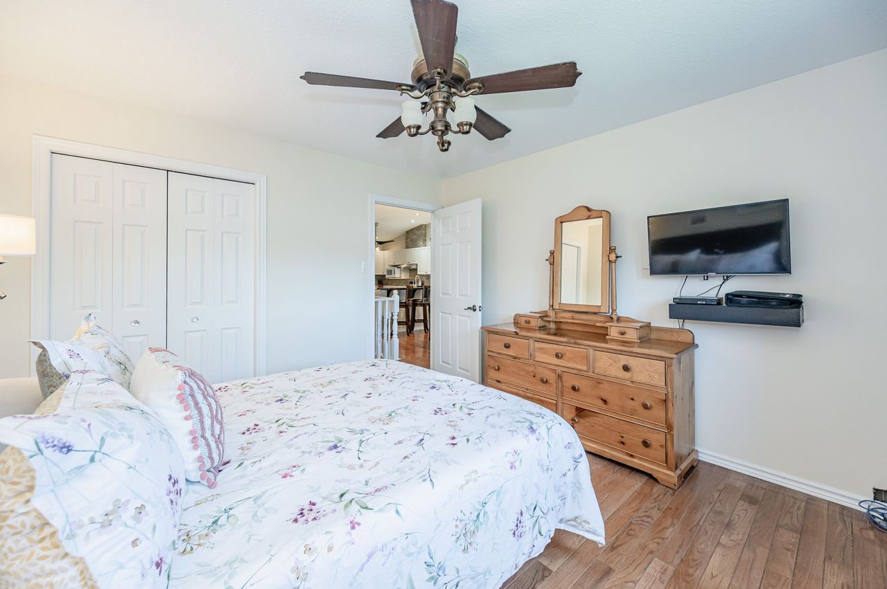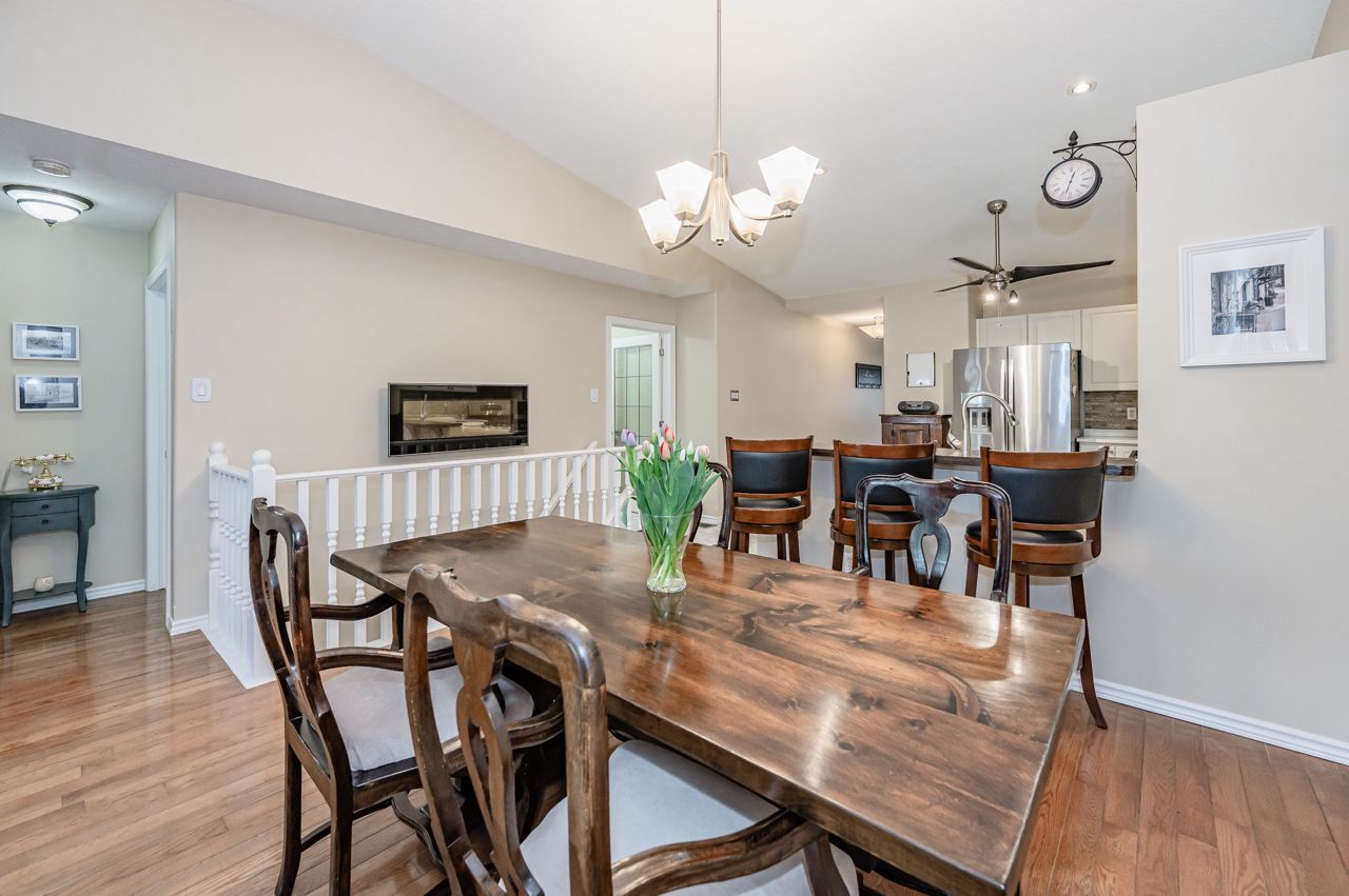 Spacious end-unit bungalow close to downtown picturesque Paris. Step inside your move-in ready home to find a spacious bedroom or office at the front of the home. Make your way to the bright and airy kitchen with lovely quartz countertops, gas range, and breakfast bar. The vaulted ceilings and open-concept space provide sight lines to your well-appointed dining and living room spaces complete with hardwood flooring. A large bedroom and bright 4-piece bathroom are situated just off of the living space. Walk out and relax on your spacious deck complete with retractable awning overlooking the quaint yard. The main floor is complete with laundry room and access to your single car garage. Plenty more usable space awaits downstairs in the expansive Rec room with cozy gas fireplace. Downstairs you'll also find a massive bedroom with walk-in closet and full bathroom with huge walk-in shower. Plenty of storage space awaits in the utility area and extra den.Many recent updates including roof, furnace (2022), AC (2022), washing machine (2023), Water softener (2019) and is close to all amenities including 403 access just minutes away.