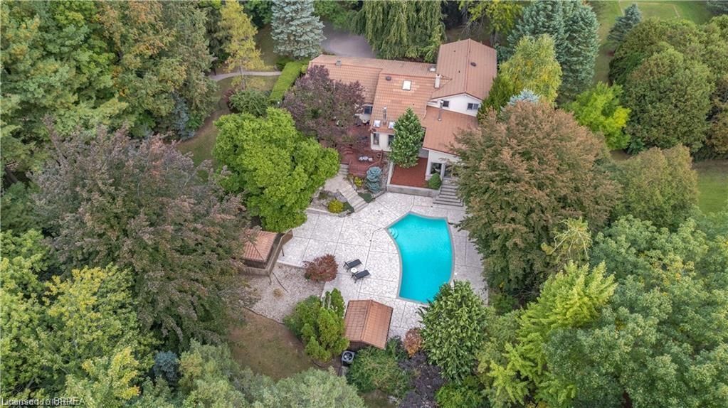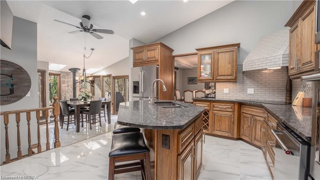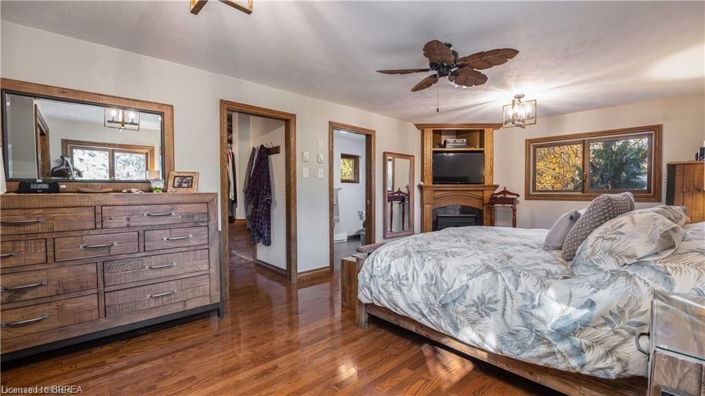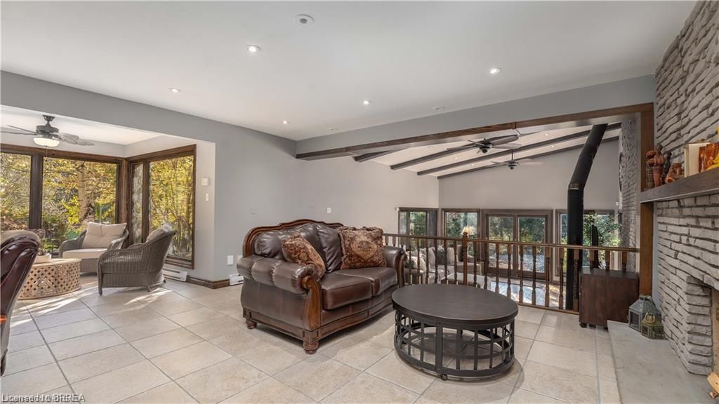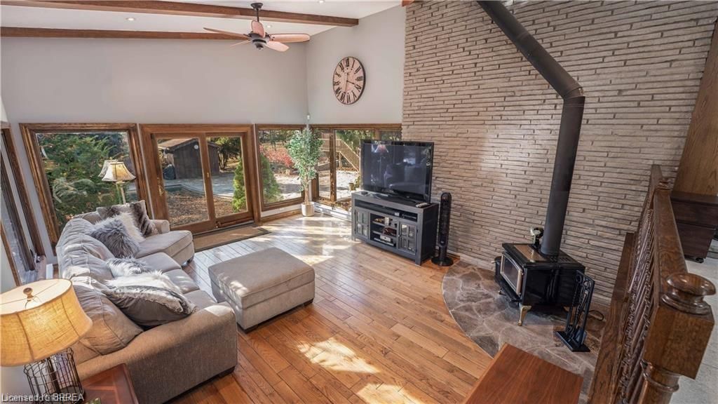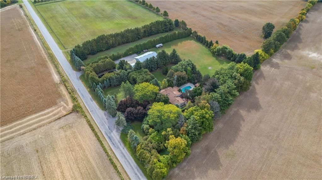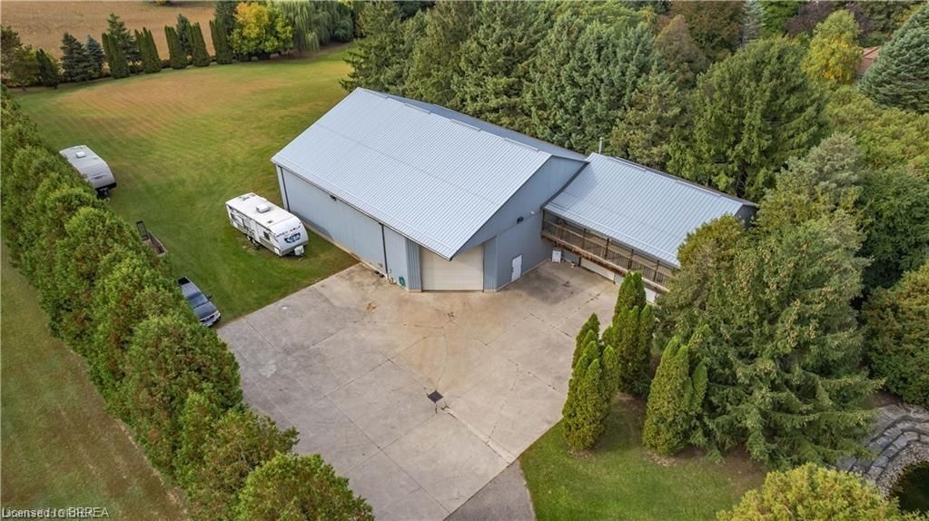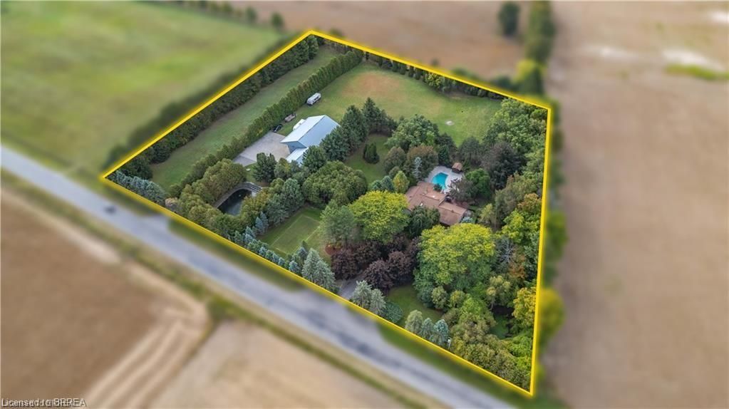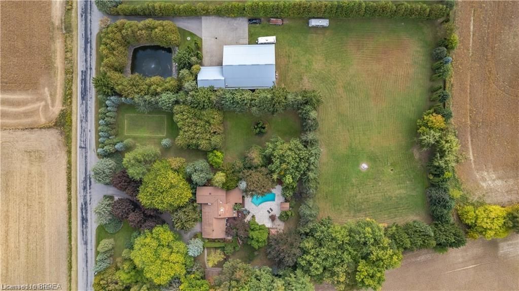 Once in a lifetime opportunity to own this rare rural property, located in the quaint town of Mount Pleasant and situated on 5.64 acres. This estate boasts nearly 4000 sq ft of living space with in-floor heating, skylights, 4 fireplaces, multiple sitting and family rooms, 12 to 13ft vaulted ceilings with an abundance of windows surrounding multiple rooms showcasing solid oak encased throughout the home with recessed lighting. This 3 bedroom, 4 bathroom side-split offers beautiful views from each perimeter of the home. The dark and light toned kitchen includes high-end appliances with seamless built-in counter-top range, built-in double oven/microwave with an open layout for cooking and entertaining. Enjoy the fully fenced inground heated salt water pool leading off the kitchen with countryside bonfires in the evening or just relax and watch the sunset. Private Driveway leads to 6000+ sq ft workshop with mezzanine, kitchenette, 4 piece washroom and offices located in the upper level.Perfect opportunity to work where you live or income potential. Shop garage doors 14x14 and 8x10. All structures on property hold steel roofs, sprinkler system, extensive pool stoned deck top w/drainage, multi level trex compensate decking.