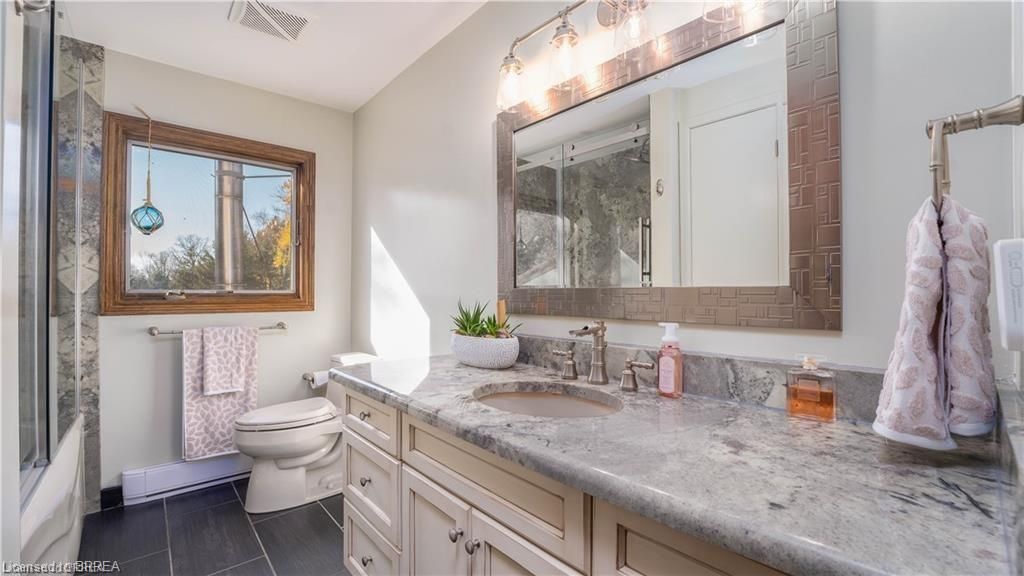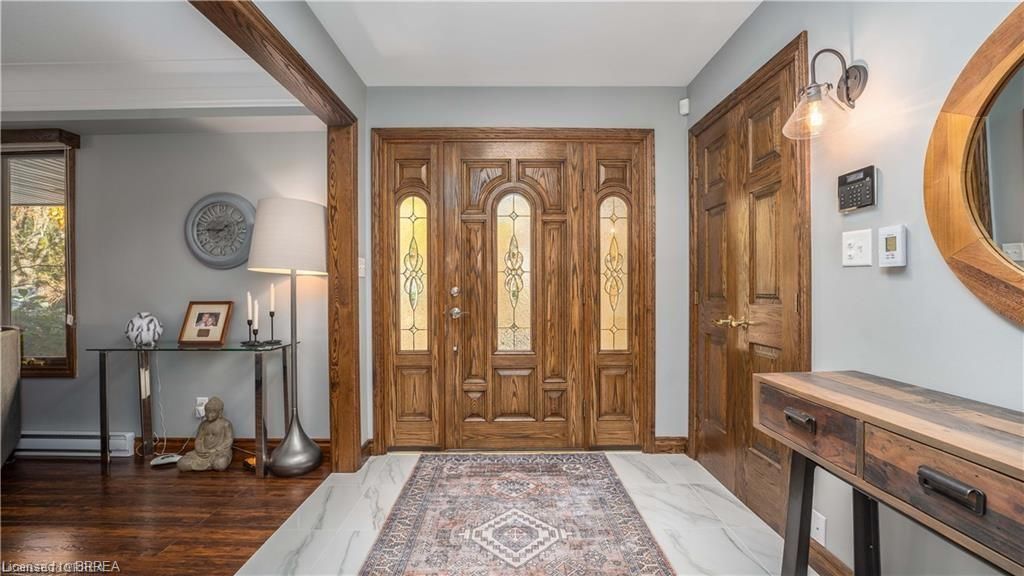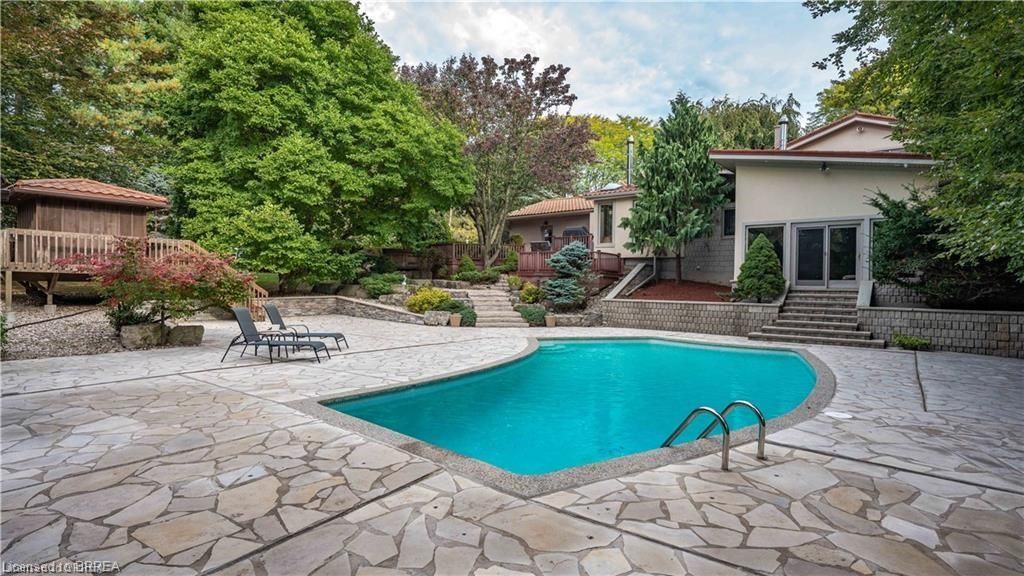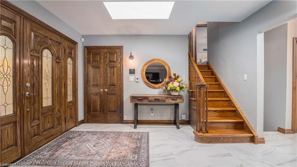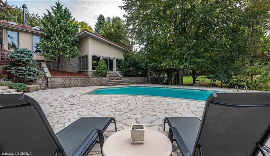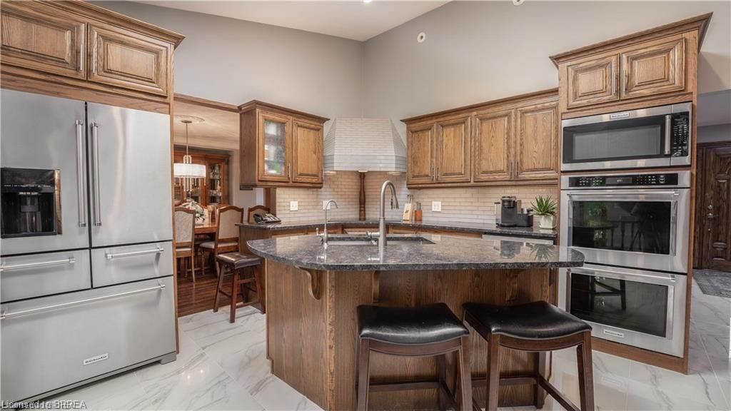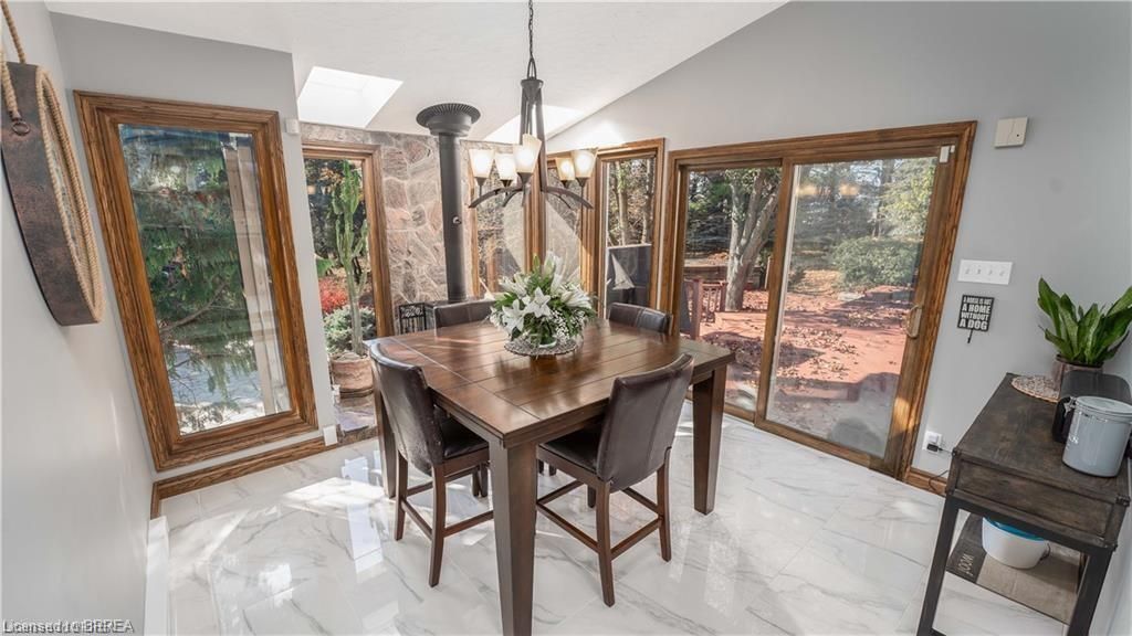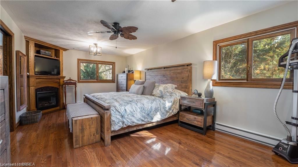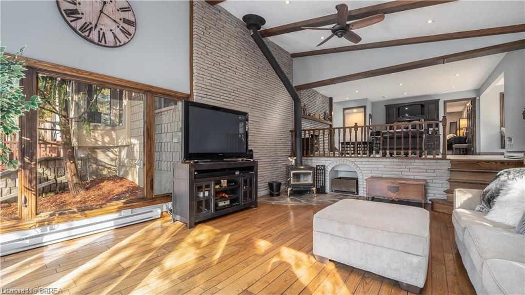 Once in a lifetime opportunity to own this rare rural property, located in the quaint town of Mount Pleasant and situated on 5.64 acres. This estate boasts nearly 4000 sq ft of living space with in-floor heating, skylights, 4 fireplaces, multiple sitting and family rooms, 12 to 13ft vaulted ceilings with an abundance of windows surrounding multiple rooms showcasing solid oak encased throughout the home with recessed lighting. This 3 bedroom, 4 bathroom side-split offers beautiful views from each perimeter of the home. The dark and light toned kitchen includes high-end appliances with seamless built-in counter-top range, built-in double oven/microwave with an open layout for cooking and entertaining. Enjoy the fully fenced inground heated salt water pool leading off the kitchen with countryside bonfires in the evening or just relax and watch the sunset. Private Driveway leads to 6000+ sq ft workshop with mezzanine, kitchenette, 4 piece washroom and offices located in the upper level.Perfect opportunity to work where you live or income potential. Shop garage doors 14x14 and 8x10. All structures on property hold steel roofs, sprinkler system, extensive pool stoned deck top w/drainage, multi level trex compensate decking.