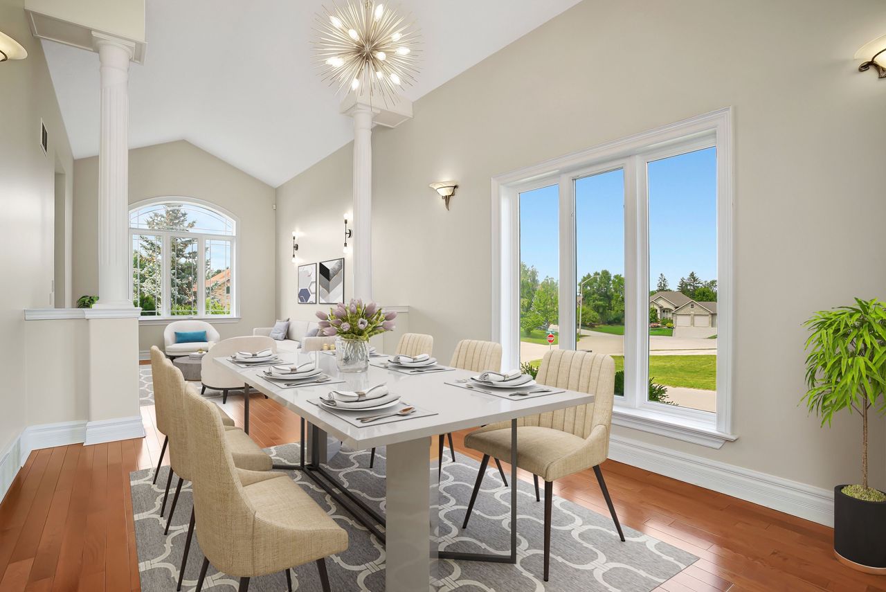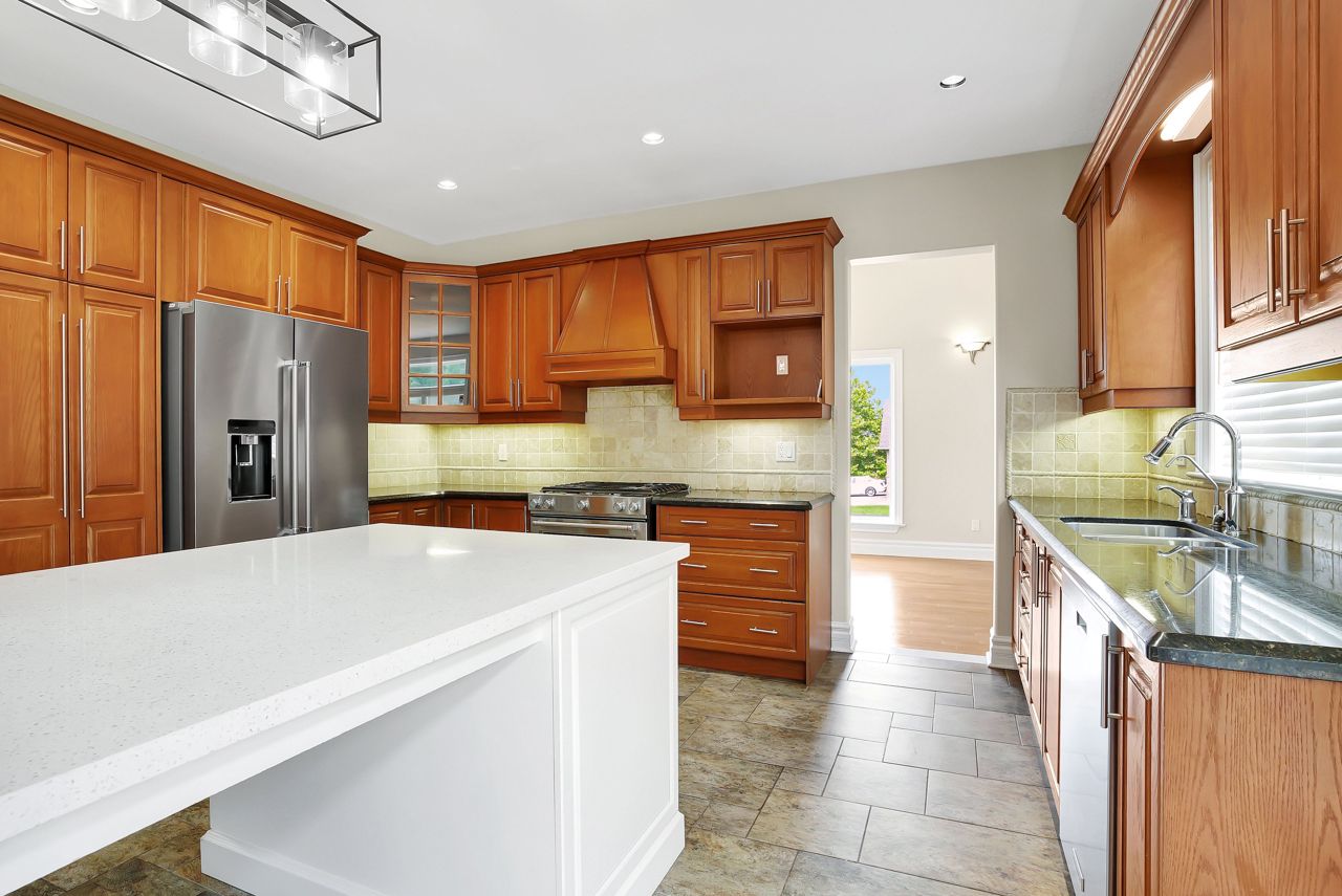 Tucked into an executive neighbourhood, this 4+1 bed, 3.5 bath is ready for its' new family. There are soaring 13 ft ceilings, hrdwd floors, large rooms & a huge lot. The main floor has a large formal living room, a formal dining room, a huge gourmet kitchen with a gas stove & an island big enough to seat 6 & a family room with gas fireplace. The main level also has an office, a powder room, main floor laundry, direct entry from garage & sliders to the back yard. 4 bedrooms await you upstairs - the primary with two large closets and a 5 pc ensuite with double vanity! All bedrooms are an excellent size & all closets have organizers! The basement is fully finished with a large recreation room with gas fireplace, a bedroom, a 3 pc bath & a kitchenette/wet bar area with fridge & counterspace. The basement has great in-law potential. Parking for 4-6 cars plus 2 car garage. Backyard has a large deck, perennial gardens and is fully fenced.Some photos are virtually staged.
