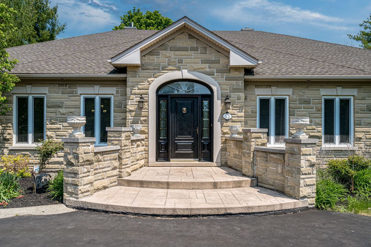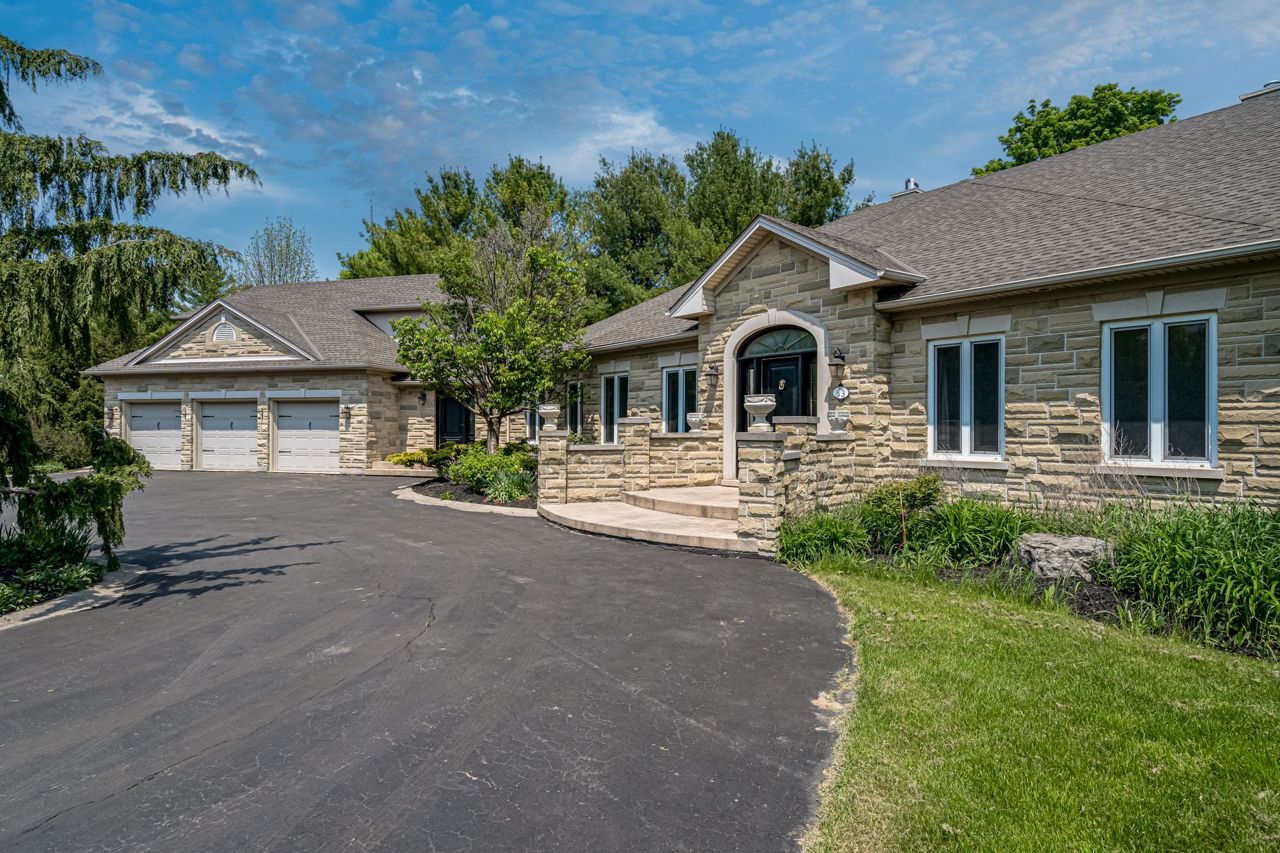 Tranquil estate with in-law suite nestled in an exclusive Brant County enclave. The 3+ acre property has manicured grounds that stun in every season. This private retreat is surrounded by quiet, tree-lined streets ideal for cyclists & runners and is cIose to Ancaster & Dundas & minutes from the rail trail & farm fresh produce. The sprawling all stone bungalow has been impeccably maintained. It features a grand foyer, a bright great room with soaring 13’ ceilings, a white chef’s kitchen with granite & walk-in pantry, formal dining room with mouldings, hotel-level principal bedrm, and in-law loft suite. Natural light floods the home from the over-sized windows, which provide stunning views from every room. The solarium provides a space for year-round enjoyment & entertaining, with a hot-tub and fireplace. There is a 2nd screened sunroom for summer dining. Other features include standby generator, 2 hvac systems & oversized 3 car garage. Properties on this street are rarely offered!