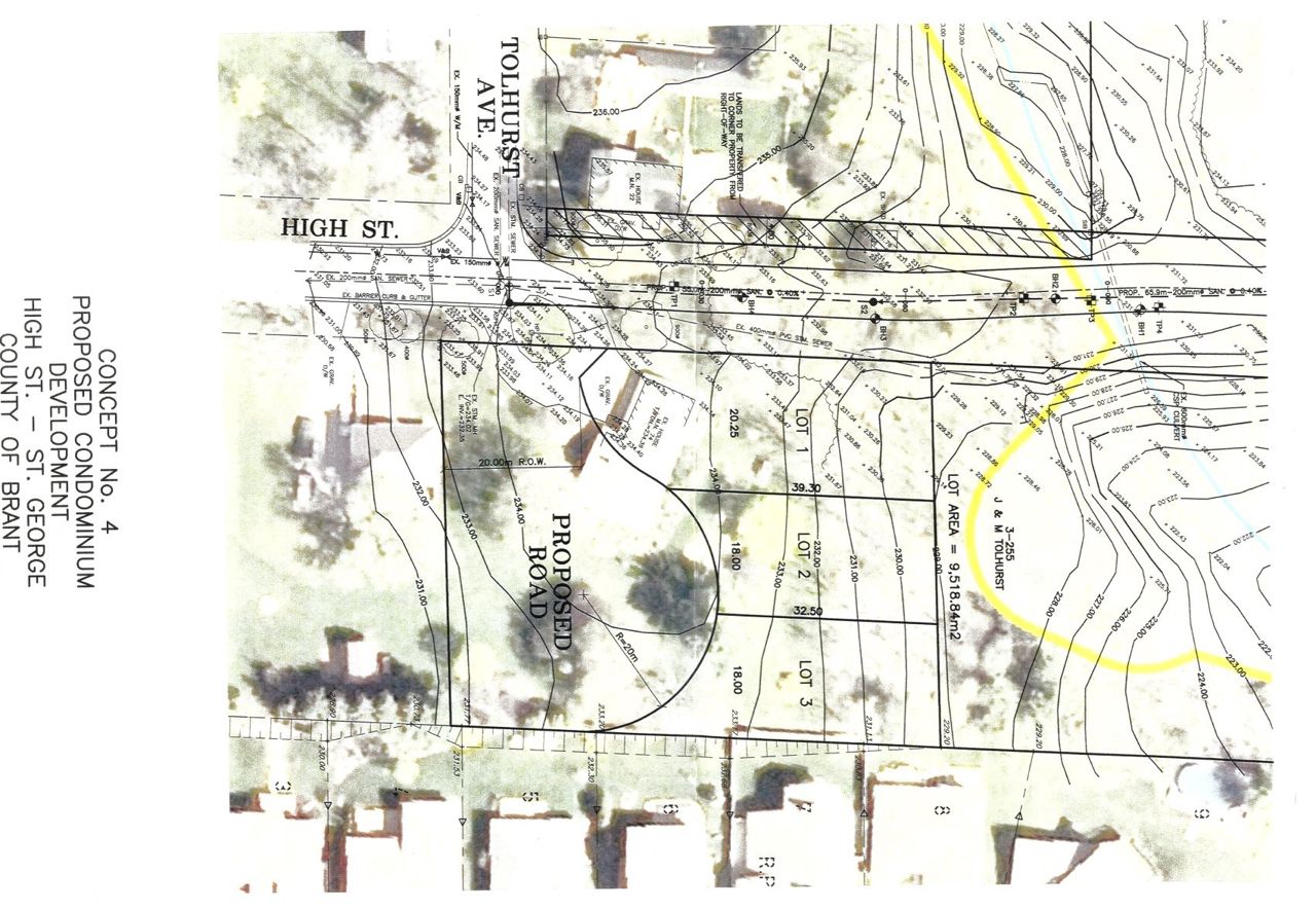 Attention Developers & Builders! Rare opportunity to purchase 2.2 acres of potential development land with R2 zoning with some natural heritage in The Rapidly Expanding County Of Brant. Located in the village of St. George, surrounded by multi-million dollar homes, steps from the downtown, restaurants, schools and shopping and, yet, still surrounded by nature, Parks, and trails with fabulous views. This property offers the perfect blend of privacy and convenience. The property also has a beautiful 1500 sq ft brick bungalow with 3 bedrooms, 2 bathrooms and 2 car garage with plenty of parking. An investigation of the development potential of the land was carried out in 2007, and Concept drawings have been completed for a number of proposed developments for the property, such as 9 townhomes, condominiums, and single-family detached. Ask the listing agent for details. The buyer or Buyer's solicitor is required to do their own due diligence for all zoning, permits, and permitted uses.3D Virtual tour available, click on additional pictures below.