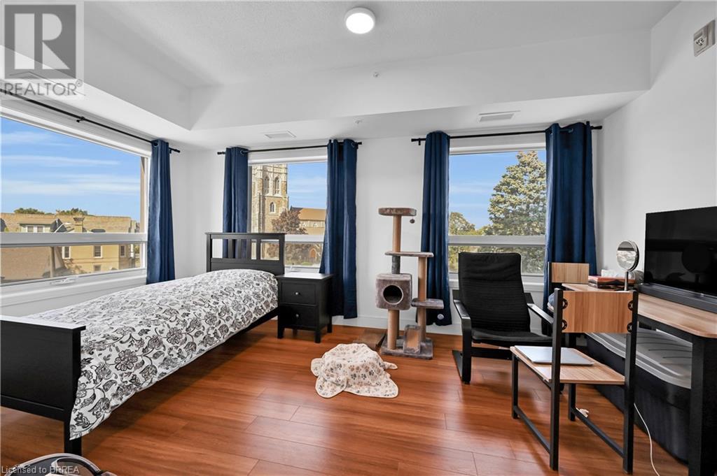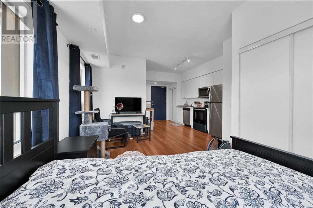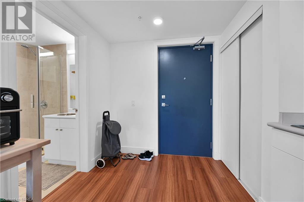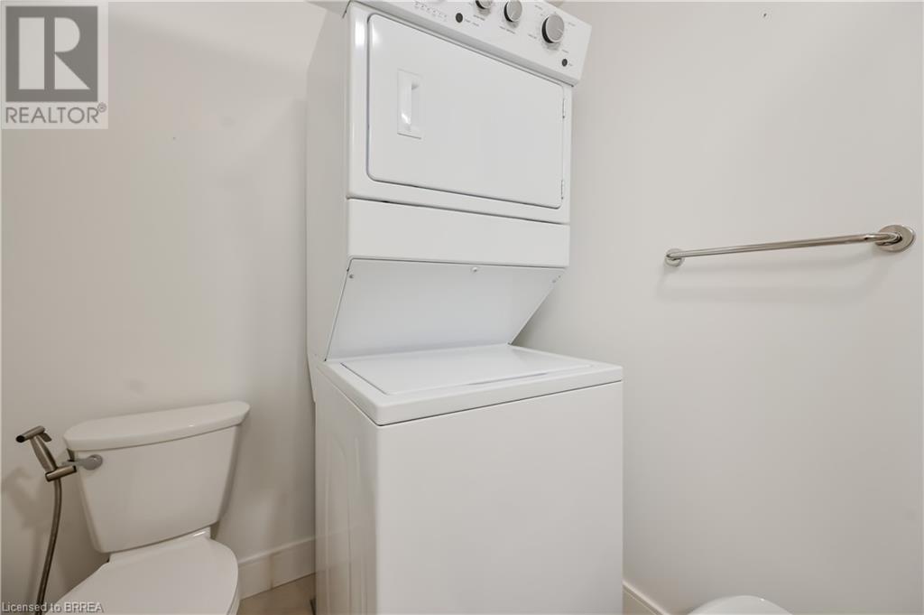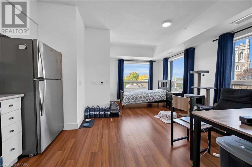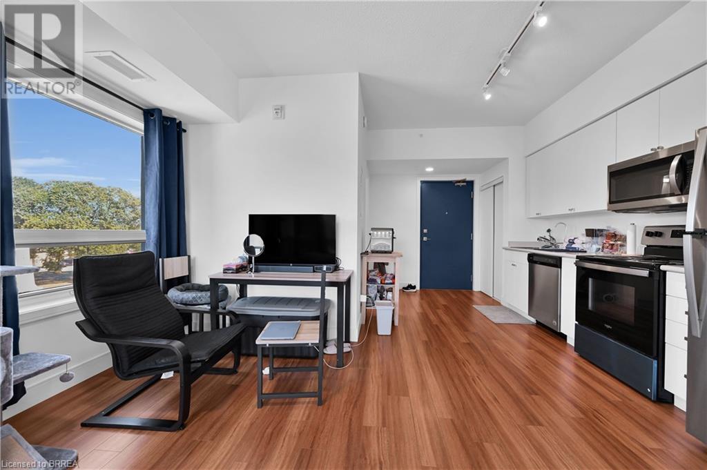 This newer Studio/Bachelor condo suite offers a unique floor plan and is impeccably appointed; featuring 9' ceilings, and is fully equipped with 6 appliances (Stainless Steel Fridge, stove, dishwasher, built in microwave & stackable washer and dryer). Included in the purchase price is an exclusive and RARE storage locker. Reasonable condo fees INCLUDE your heating and cooling- Climate controls in EVERY unit will suit your ideal living temperatures. Water and hydro are metered separately to each unit. Rooftop amenities include fitness room, party room, and rooftop garden. ATTENTION INVESTORS: Optional Value add: This unit is available to opt in to a GUARANTEED RENTAL PROGRAM for up to 10 YEARS! One Wellington is conveniently located above commercial retailers and a brand new Conestoga College lecture hall within walking distance to train station, GO, YMCA, scenic walking/biking trails, restaurants, Harmony Square, and Laurier University. (id:22211)