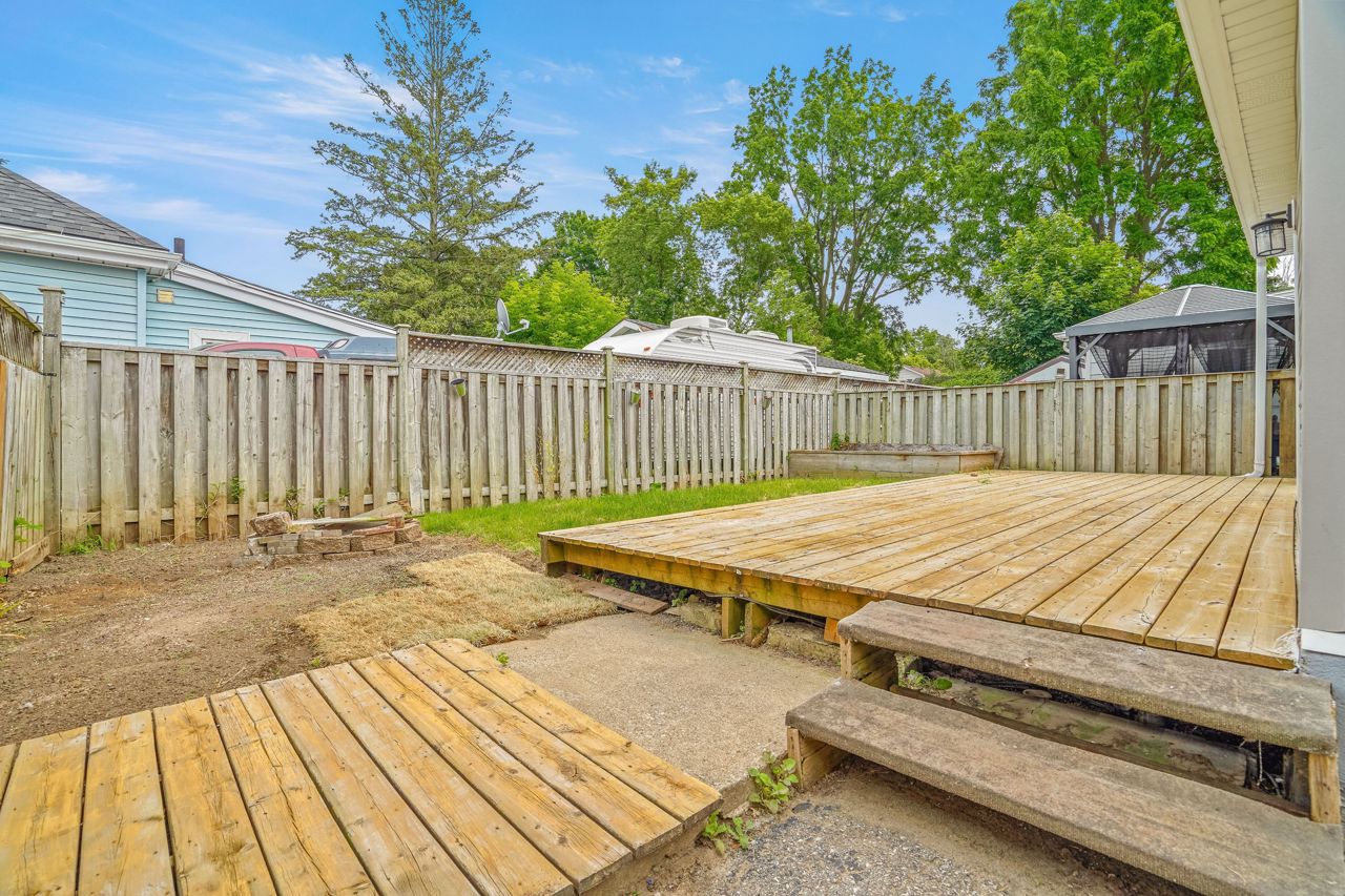 Attention 1st Time Buyers and Retirees! A lovely move-in ready brick bungalow sitting on a quiet street and featuring a covered front porch for enjoying your morning coffee, a bright living room for entertaining with new carpeting and freshly painted in a neutral colour, 2 bedrooms on the main floor with laminate flooring, an immaculate 4pc. bathroom, lots of room for storage in the basement, and a beautiful kitchen with updated cabinetry, soft-close drawers, tile backsplash, a modern countertop, vinyl plank flooring, and patio doors leading out to a huge 24’ x 10’4” deck in the fully fenced backyard where you can enjoy summer barbecues with family and friends. Recent updates include a new concrete driveway in 2023, new concrete steps and walkway in 2023, newly sodded front lawn in 2023, new carpeting in 2023, freshly painted inside and the exterior in 2023, new copper water line to the house in 2022, new sewer line from the street in 2022, new roof in 2021.