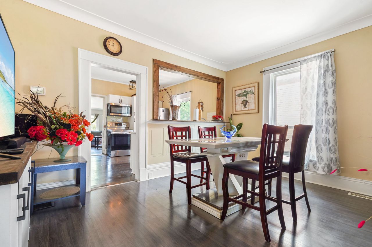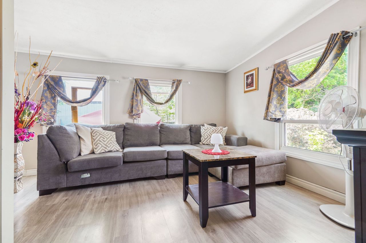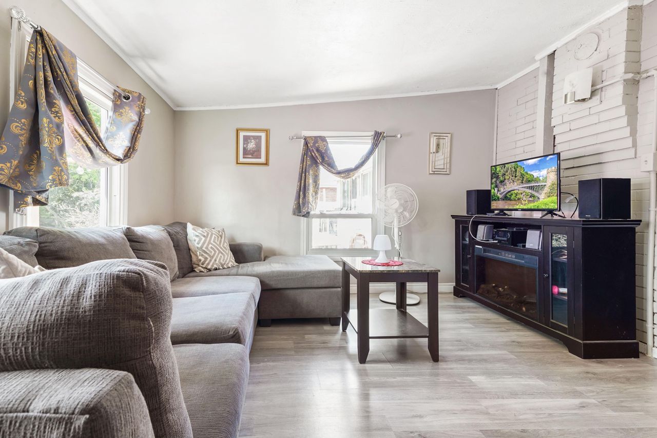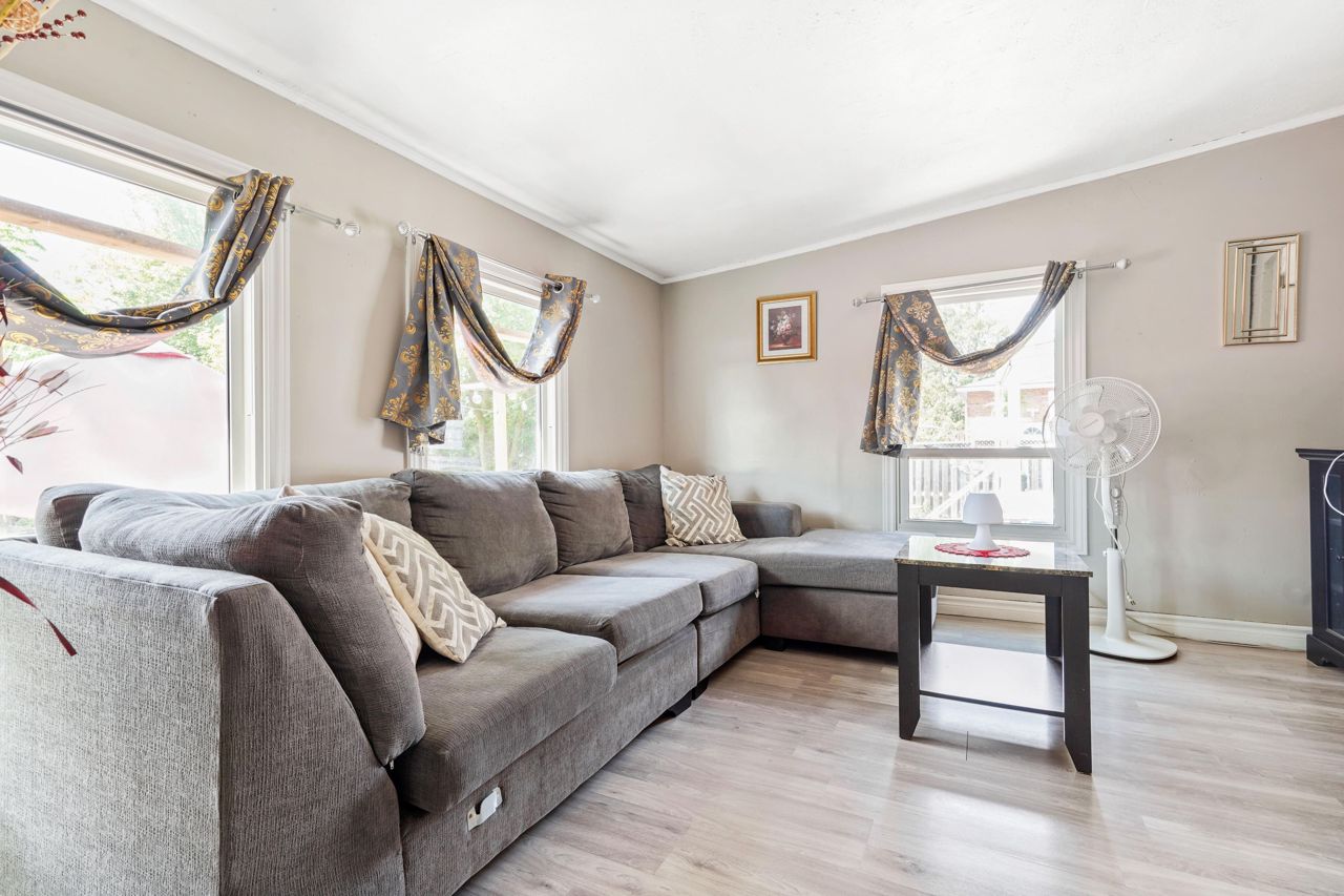 A beautiful move-in ready 3 bedroom, 2 bathroom brick bungalow with a long driveway and a deep backyard. This lovely home is loaded with character and charm featuring an inviting entrance for greeting your guests, high ceilings, 9” baseboards, a bright living room for entertaining with attractive laminate flooring and lots of natural light, a beautiful kitchen with a modern countertop and an opening that looks out to the living room, generous-sized bedrooms, an immaculate 4pc. bathroom, a convenient main floor laundry room(could be a 4th bedroom if the laundry is moved back down to the basement), a 2pc. bathroom with a modern vanity, a 2nd living room at the back of the house with laminate flooring, lots of windows, and a door or separate entrance at the back that leads out to the large deck and deep and fully fenced yard, and the full basement offers plenty of storage space. Updates include roof shingles, windows, furnace, central air, professionally painted exterior, and more.