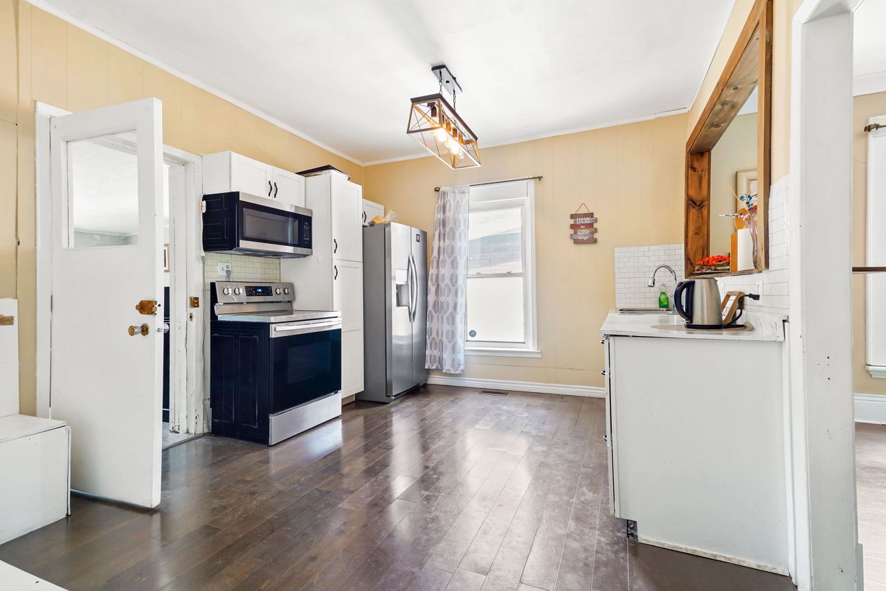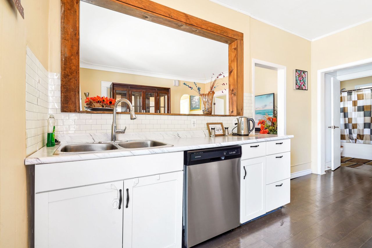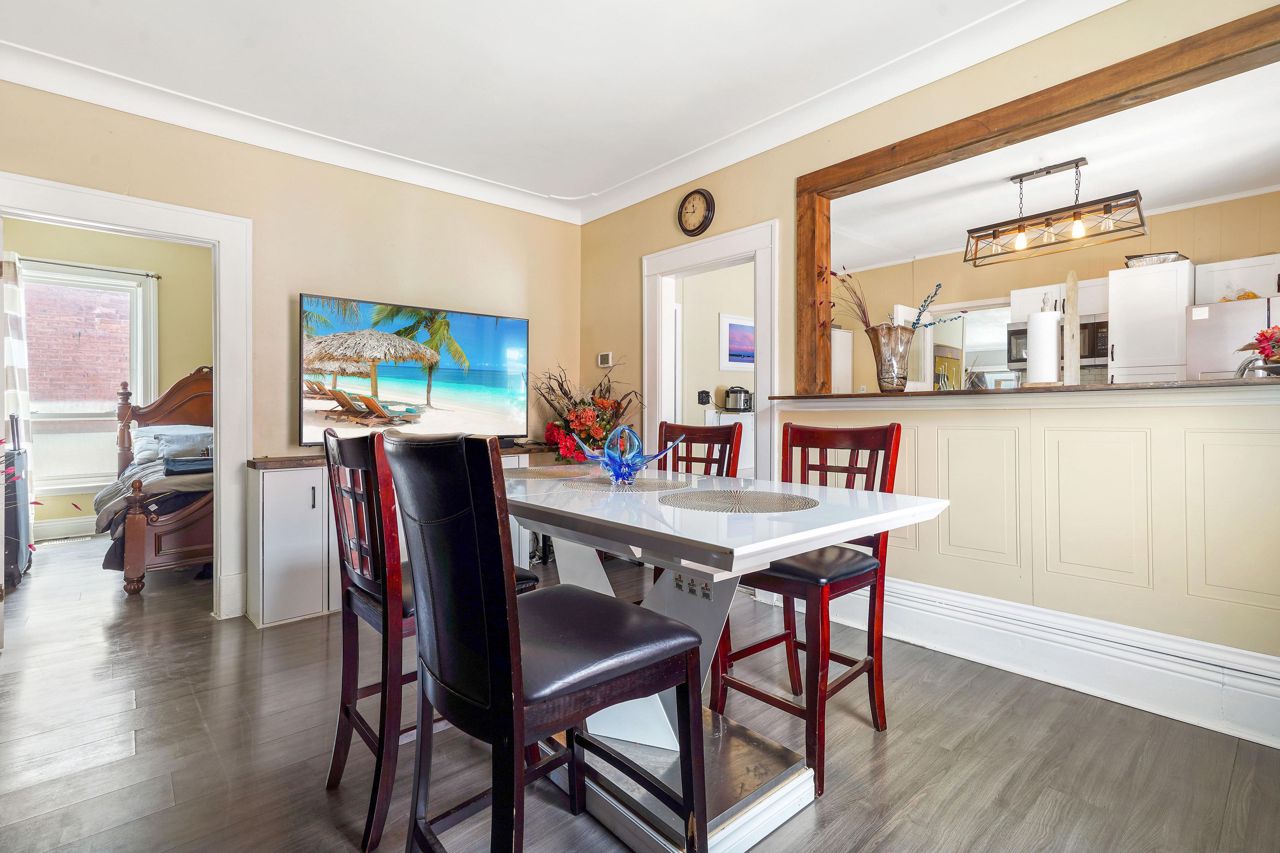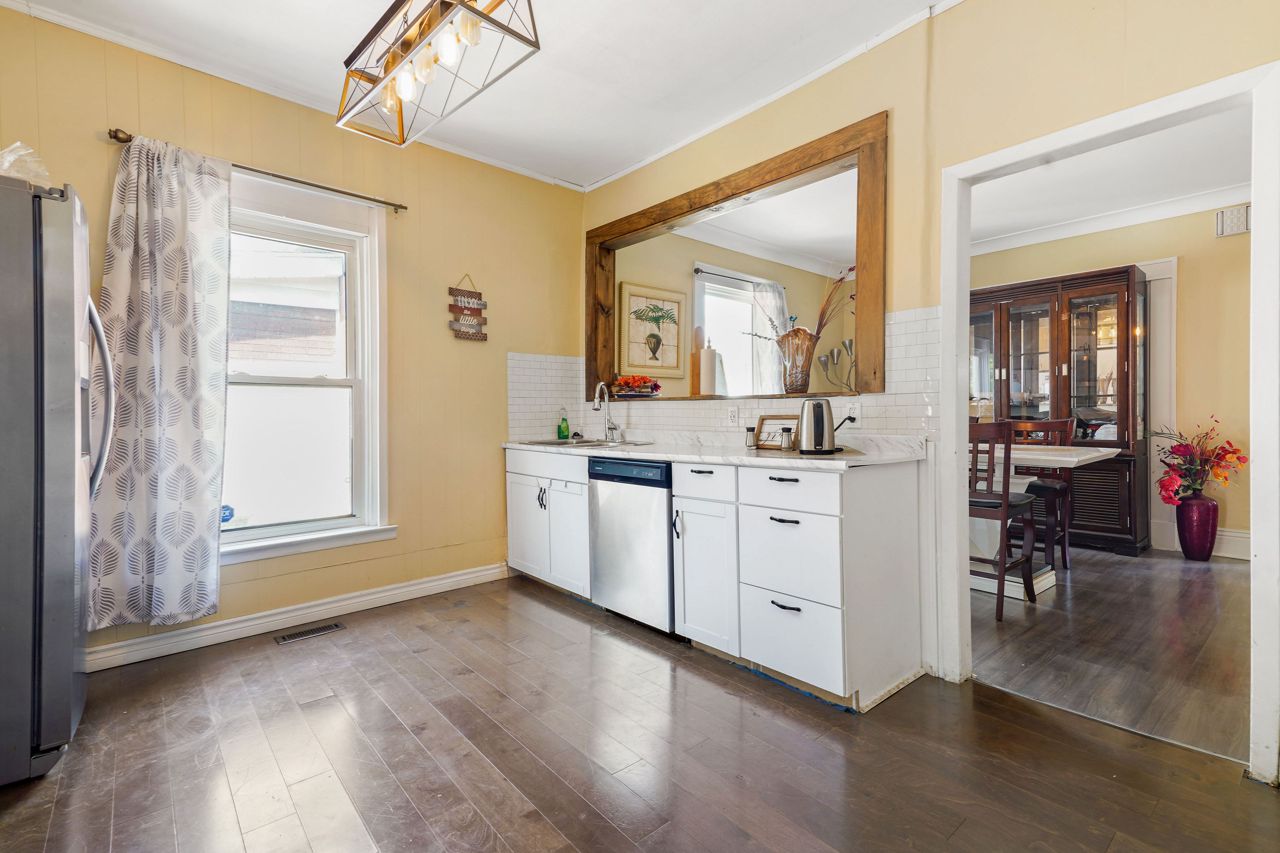 A beautiful move-in ready 3 bedroom, 2 bathroom brick bungalow with a long driveway and a deep backyard. This lovely home is loaded with character and charm featuring an inviting entrance for greeting your guests, high ceilings, 9” baseboards, a bright living room for entertaining with attractive laminate flooring and lots of natural light, a beautiful kitchen with a modern countertop and an opening that looks out to the living room, generous-sized bedrooms, an immaculate 4pc. bathroom, a convenient main floor laundry room(could be a 4th bedroom if the laundry is moved back down to the basement), a 2pc. bathroom with a modern vanity, a 2nd living room at the back of the house with laminate flooring, lots of windows, and a door or separate entrance at the back that leads out to the large deck and deep and fully fenced yard, and the full basement offers plenty of storage space. Updates include roof shingles, windows, furnace, central air, professionally painted exterior, and more.