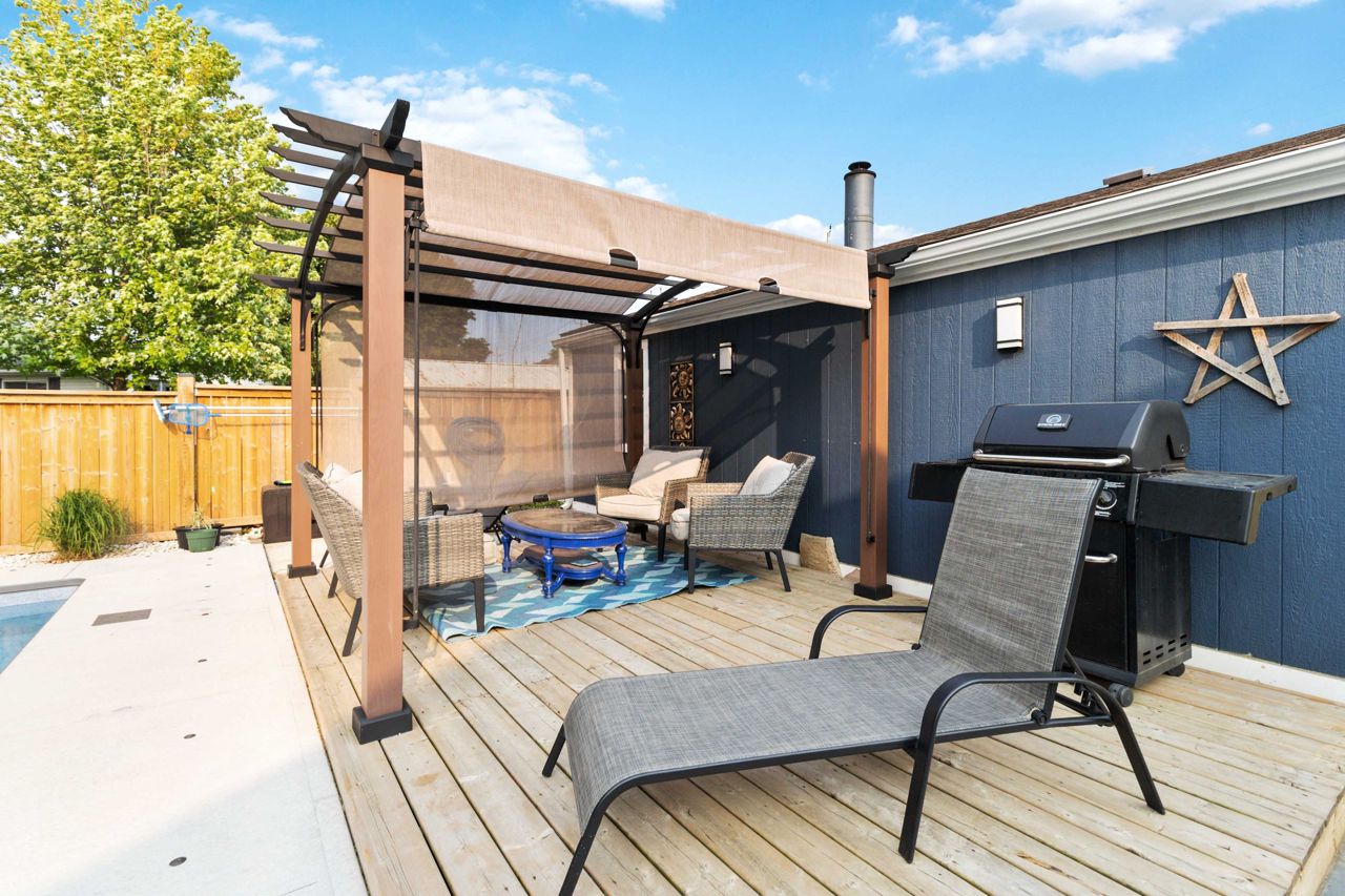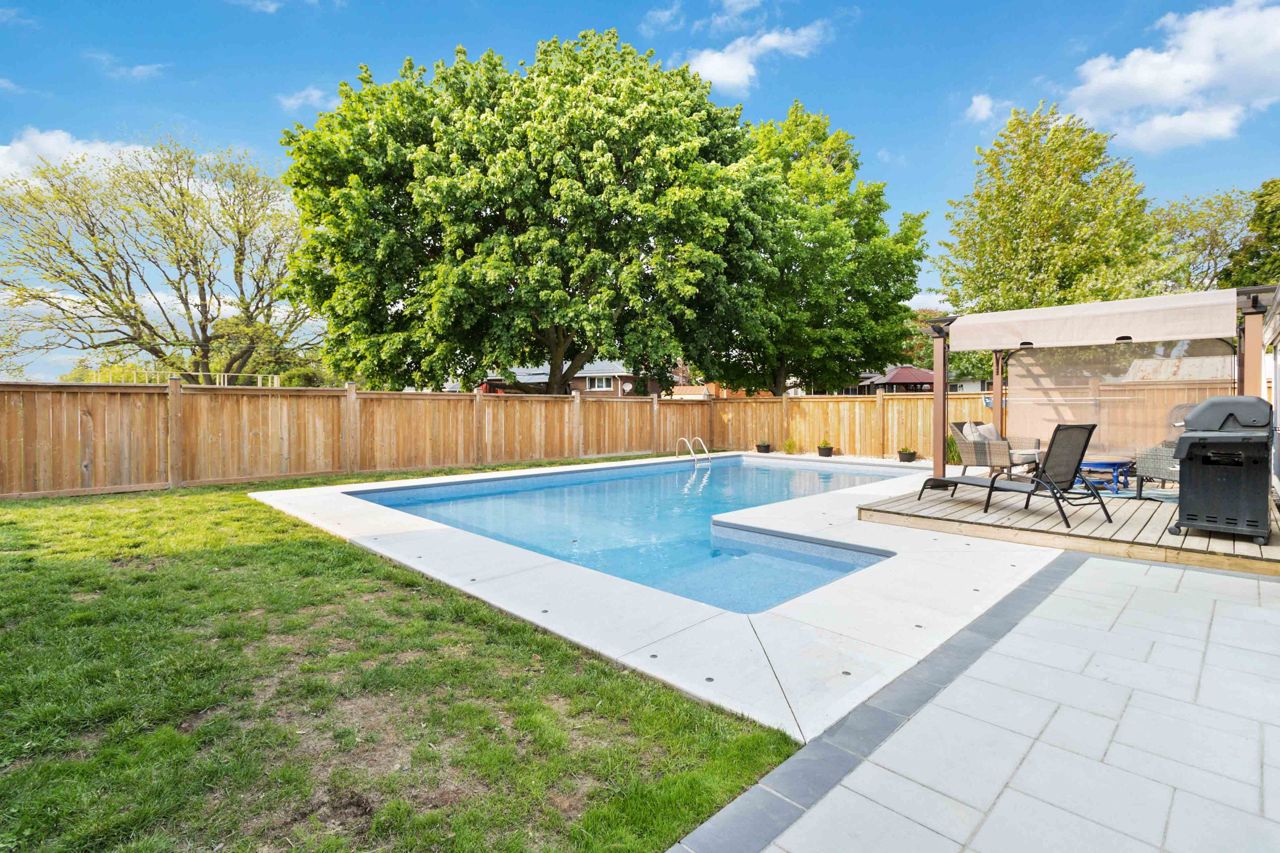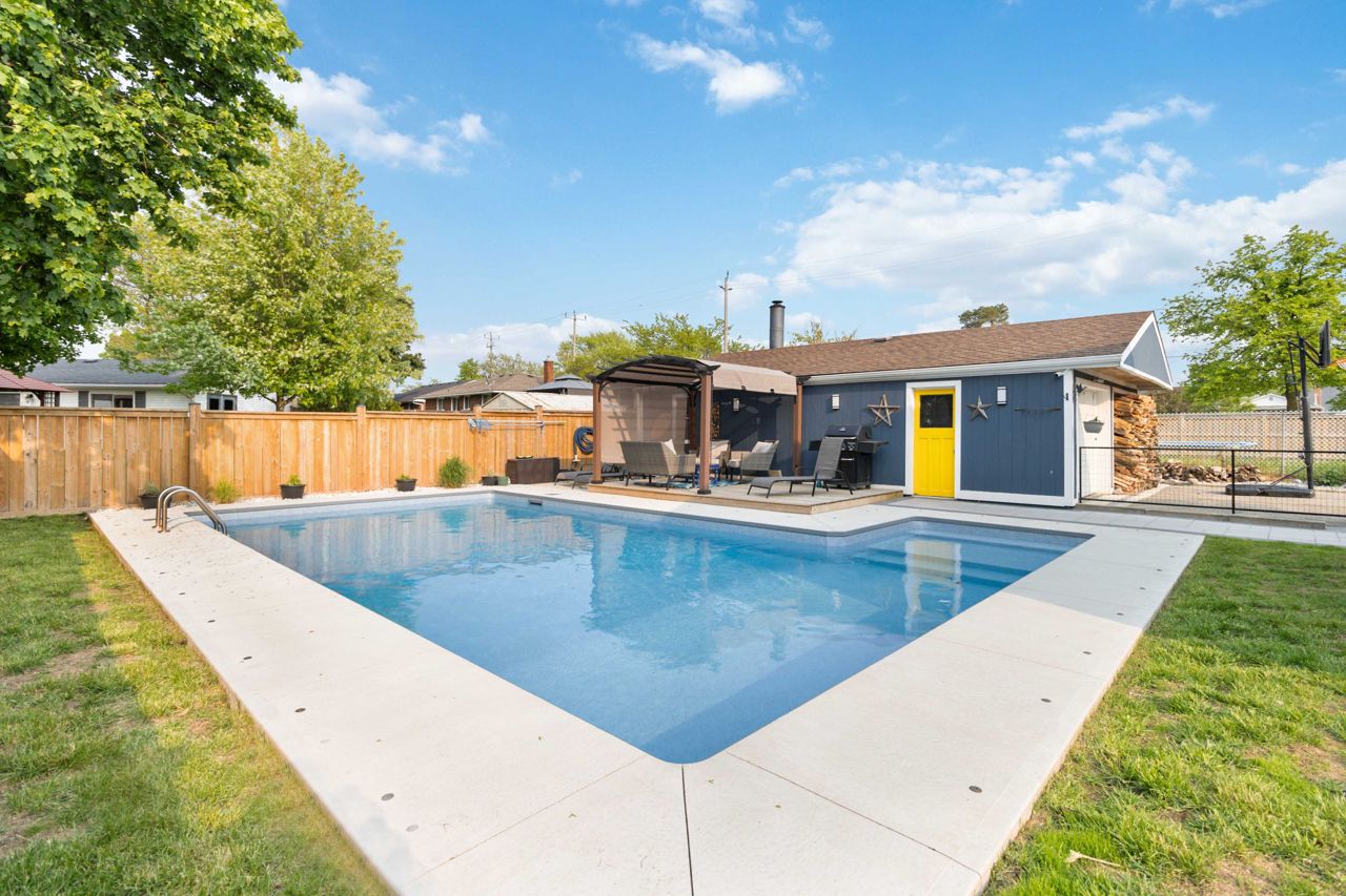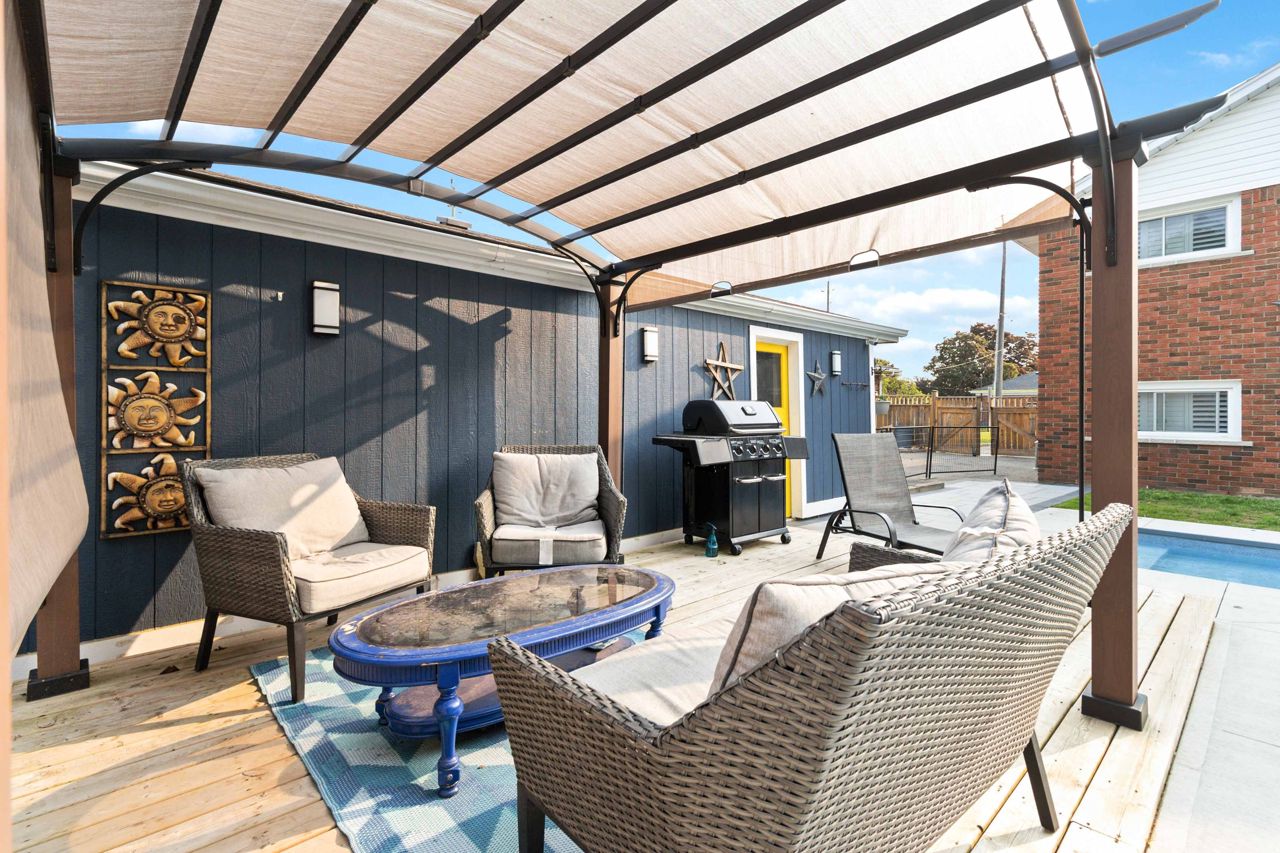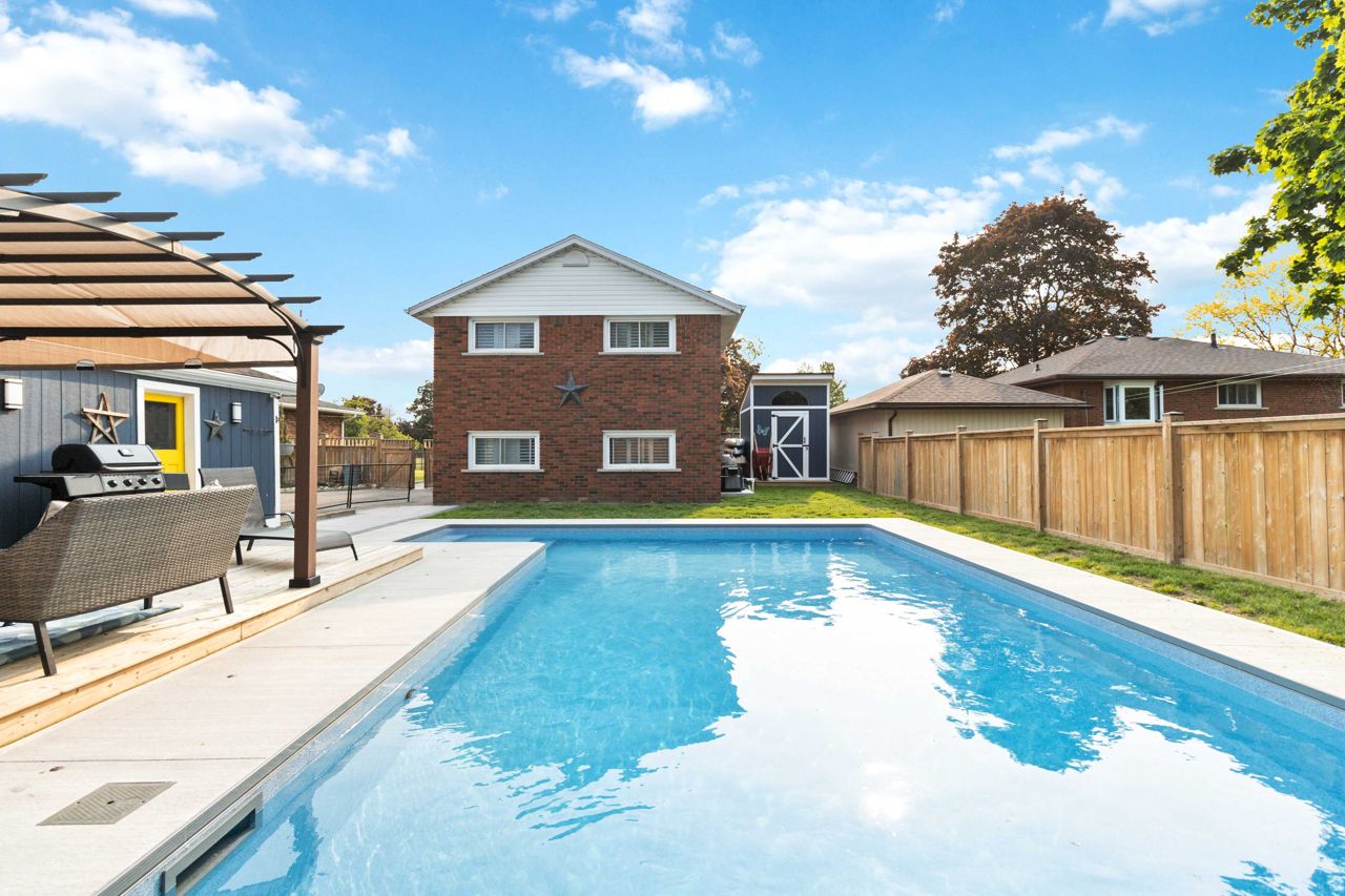Welcome to this charming backsplit home in Brantford's desirable north end. It offers 4 bedrooms, 1.5 bathrooms, a new Pioneer inground pool (2021) with safety cover, and a detached garage. The living/dining room is bright, and the kitchen features granite counters. The upper level has a 4 pc bath and 2 spacious bedrooms. The first lower levels provide 2 additional bedrooms. The second lower level offers a spacious family room, a half bathroom, utility area, and laundry. Outside, enjoy the private backyard oasis with a salt water pool, sundeck steps, and a gazebo. There's also a double detached heated garage (21ft x 31ft) for secure parking and storage. This sought-after neighborhood offers nearby amenities like schools, parks, sports center, shopping centers, and restaurants. Commuting is easy with access to the 403 and public transportation.