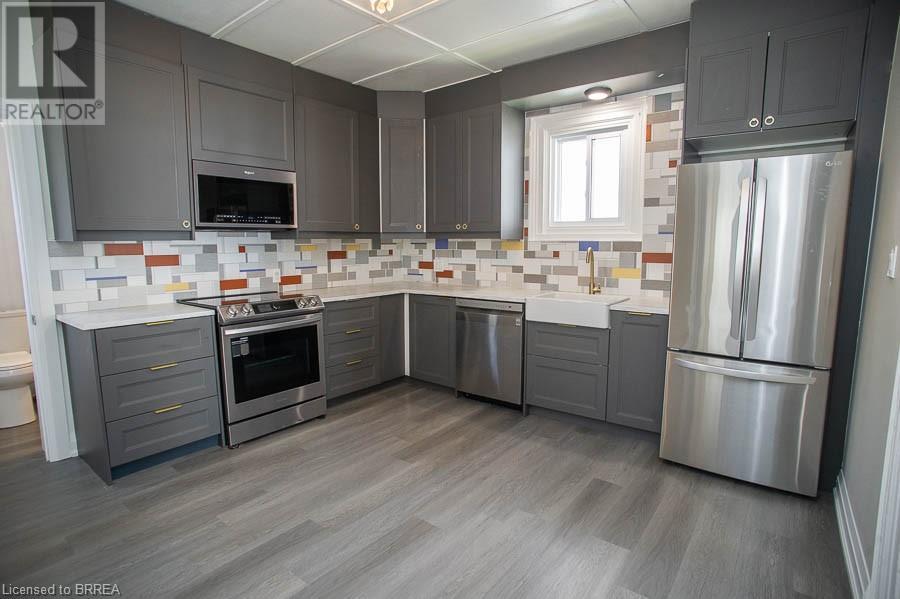 Welcome to 56 Richardson Street! Upon entering the living room, you'll be greeted by the warmth of a large stone fireplace and bay windows, perfect for cozy evenings with loved ones. On your way to the kitchen, you will pass through the large dining room with two large windows for natural light. The kitchen has been thoughtful updated with newer appliances, providing functionality while retaining its original charm. In the kitchen, you will find an entrance to a cozy sunroom that leads to a generously sized backyard offering plenty of room for outdoor activities and relaxation. Upstairs you will find three nicely sized bedrooms, as well as a 5 piece bathroom with luxury style fixtures and his & hers sinks. The home is freshly painted with new carpet up the stairs which offers a blank canvas for your personal touch and style. With a little creativity, this residence has the potential to become your ideal retreat in West Brant. (id:22211)