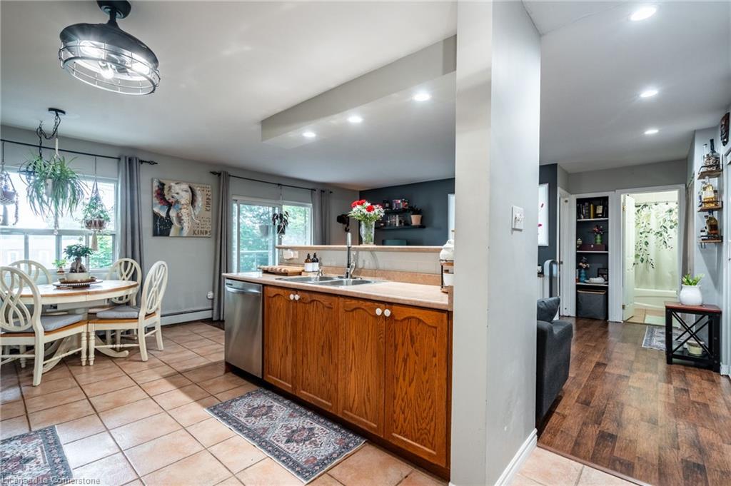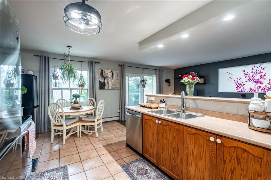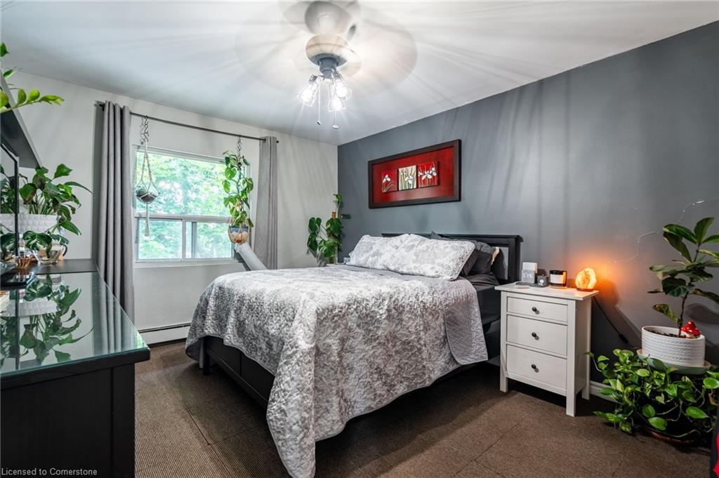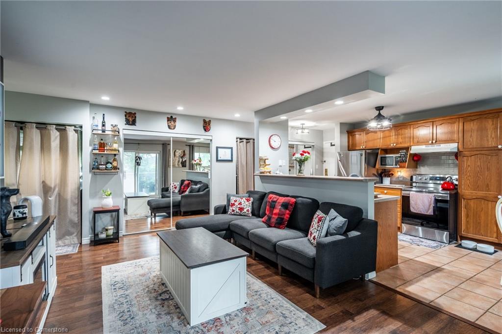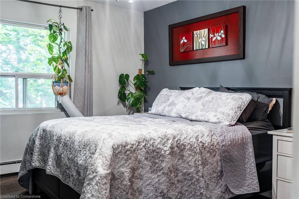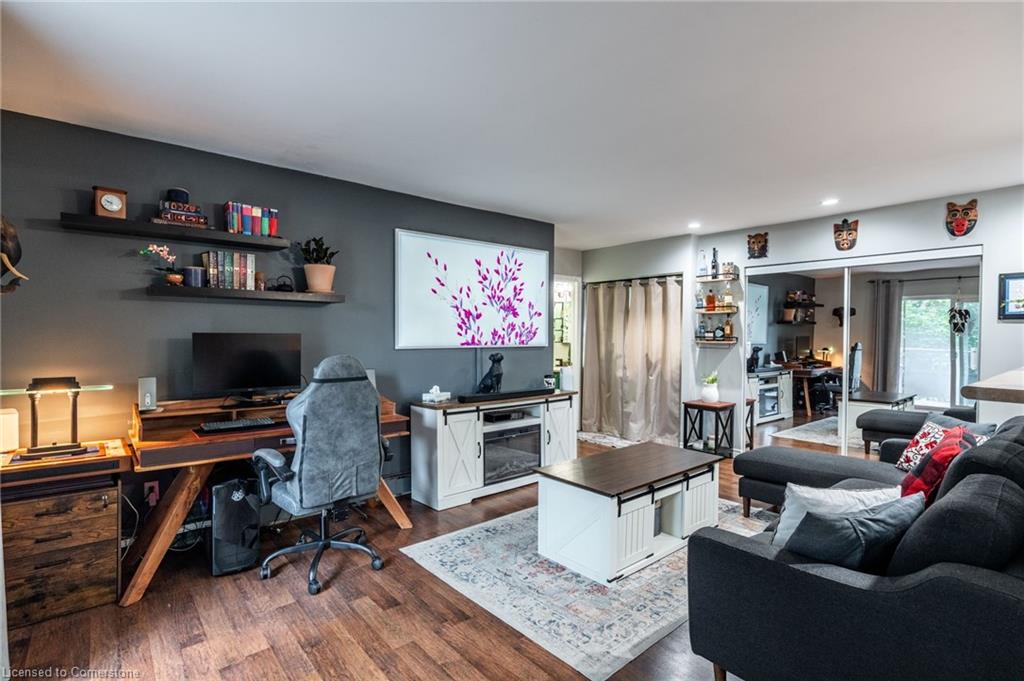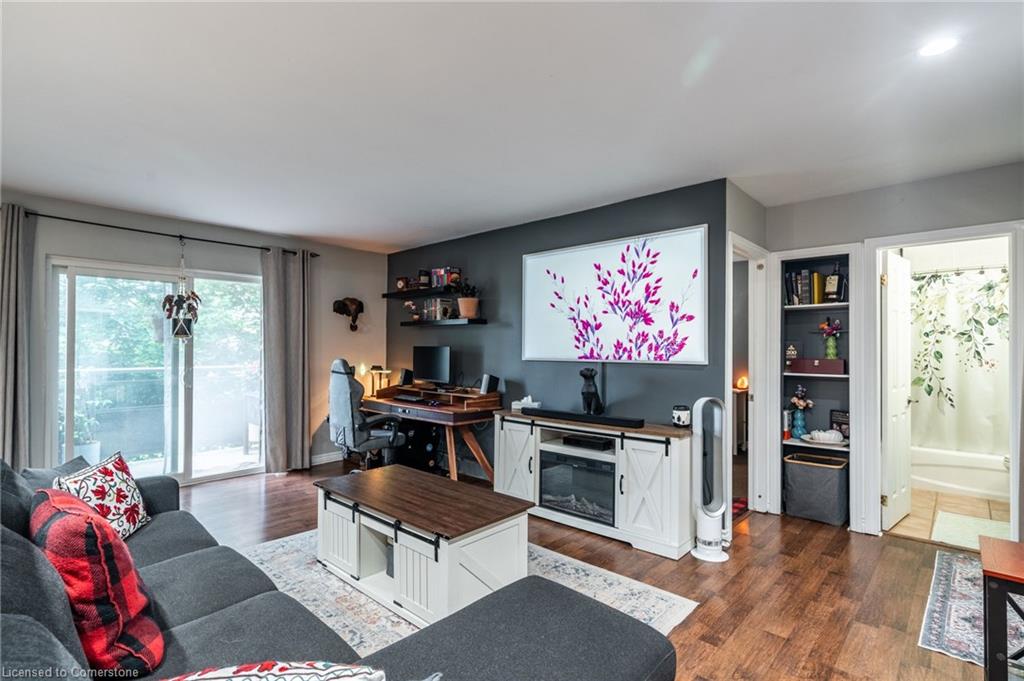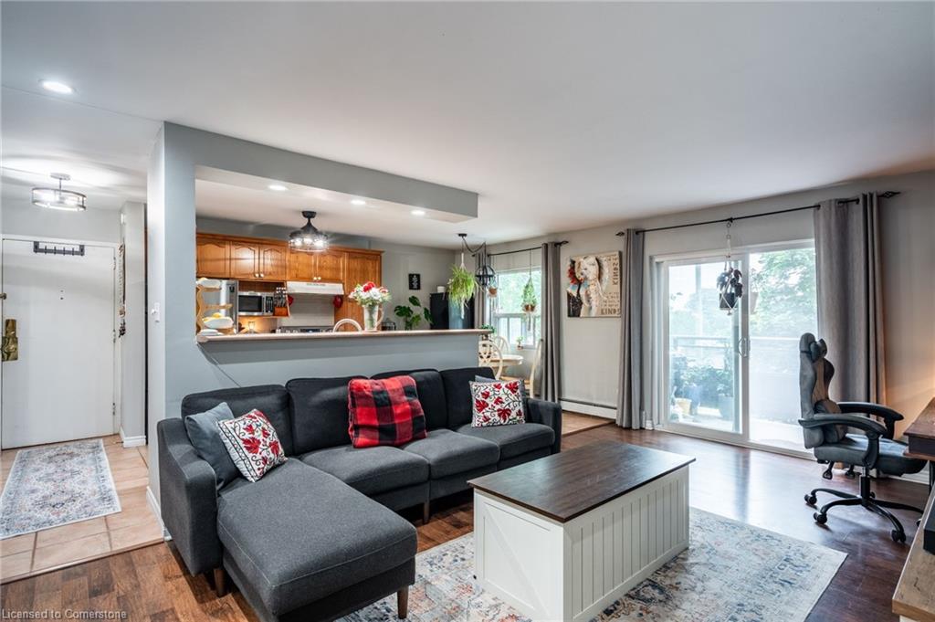 Step into comfort and convenience with this spacious one-bedroom, one-bathroom condo, offering 710 square feet of thoughtfully designed living space. Located in a beautifully maintained and professionally managed three-storey walk-up, this unit is ideal for first-time buyers, downsizers or savvy investors seeking value in the desirable Echo Place community of Brantford. The interior features a bright, open-concept layout, seamlessly connecting a large kitchen, dining room, and living room—perfect for entertaining or quiet nights in. The generously sized bedroom comfortably fits a king-sized bed, offering a relaxing retreat with ample room to unwind. Additionally, a dedicated space for a home office makes this condo ideal for hybrid or remote work. The bathroom has been recently updated, and the unit boasts extensive integrated storage, in-suite laundry, and plenty of natural light throughout. Enjoy your private balcony, recently refurbished and BBQ-friendly, adding an outdoor retreat to your lifestyle. Even more value lies ahead: the condominium board has plans to replace all windows, further boosting energy efficiency and long-term value. Condo fees include heat, water, one exclusive-use parking spot, snow removal, and full grounds maintenance, ensuring low-maintenance living. The pet-friendly building is located close to parks, trails, schools, and offers easy access to major highways—making commuting or weekend getaways a breeze. Don’t be TOO LATE*! *REG TM. RSA.