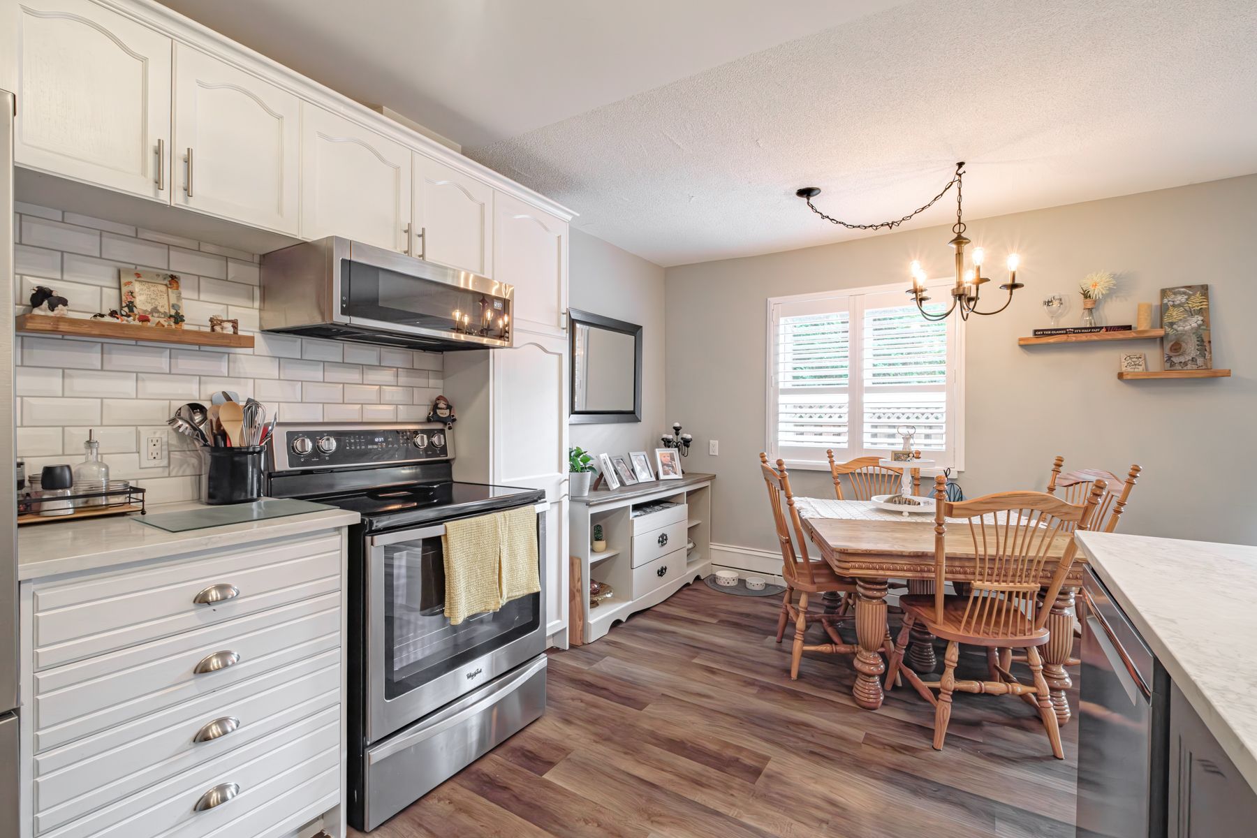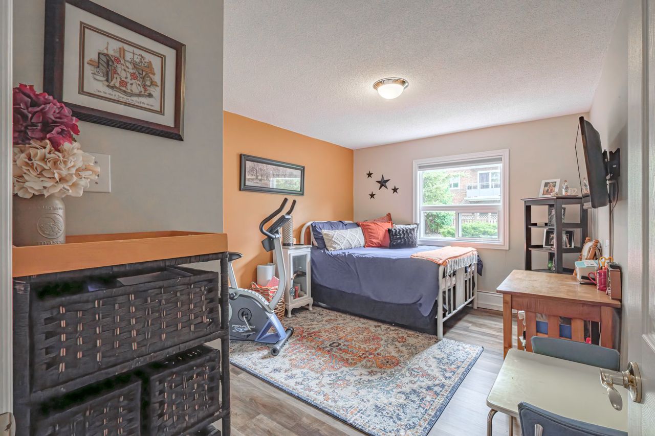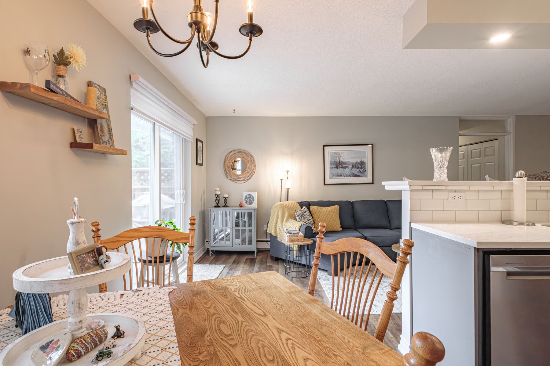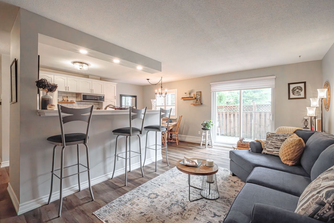 This is the perfect starter apartment in the well cared for East Gate condo complex. Desirable main floor unit with lobby access and Courtyard access. Tastefully decorated & modern lighting fixtures throughout is this 2 bedroom 1 bathroom condo unit. Open concept kitchen with breakfast island, potlights, quartz countertops, s.s microwave range, s.s b-in dishwasher, s.s fridge and stove. Cozy breakfast nook eating area and spacious living room with electric fireplace and patio door walk out to your own private fenced in patio! All updated luxury vinyl plank flooring and custom window coverings through out. 4 pc bathroom with ceramic tiled flooring and tub surround. Convenient in suite laundry and loads of closet storage in the apartment. Located right off the courtyard with your own gated entrance to your private patio. Meticulously maintained gardens and landscaping. Super Echo Place location close to the 403 HWY, schools, parks and shopping.