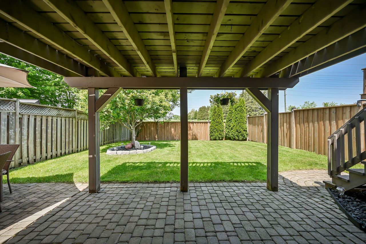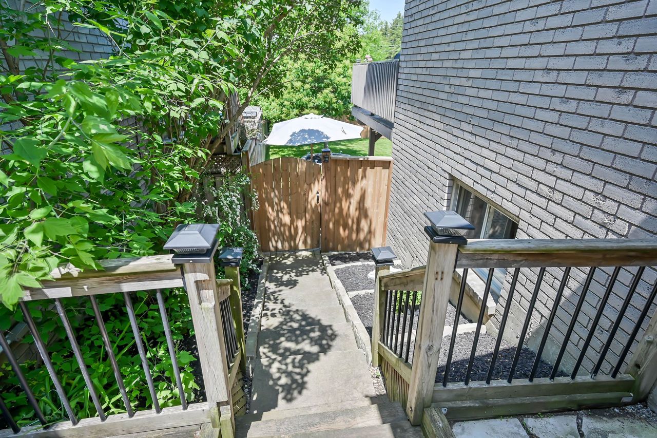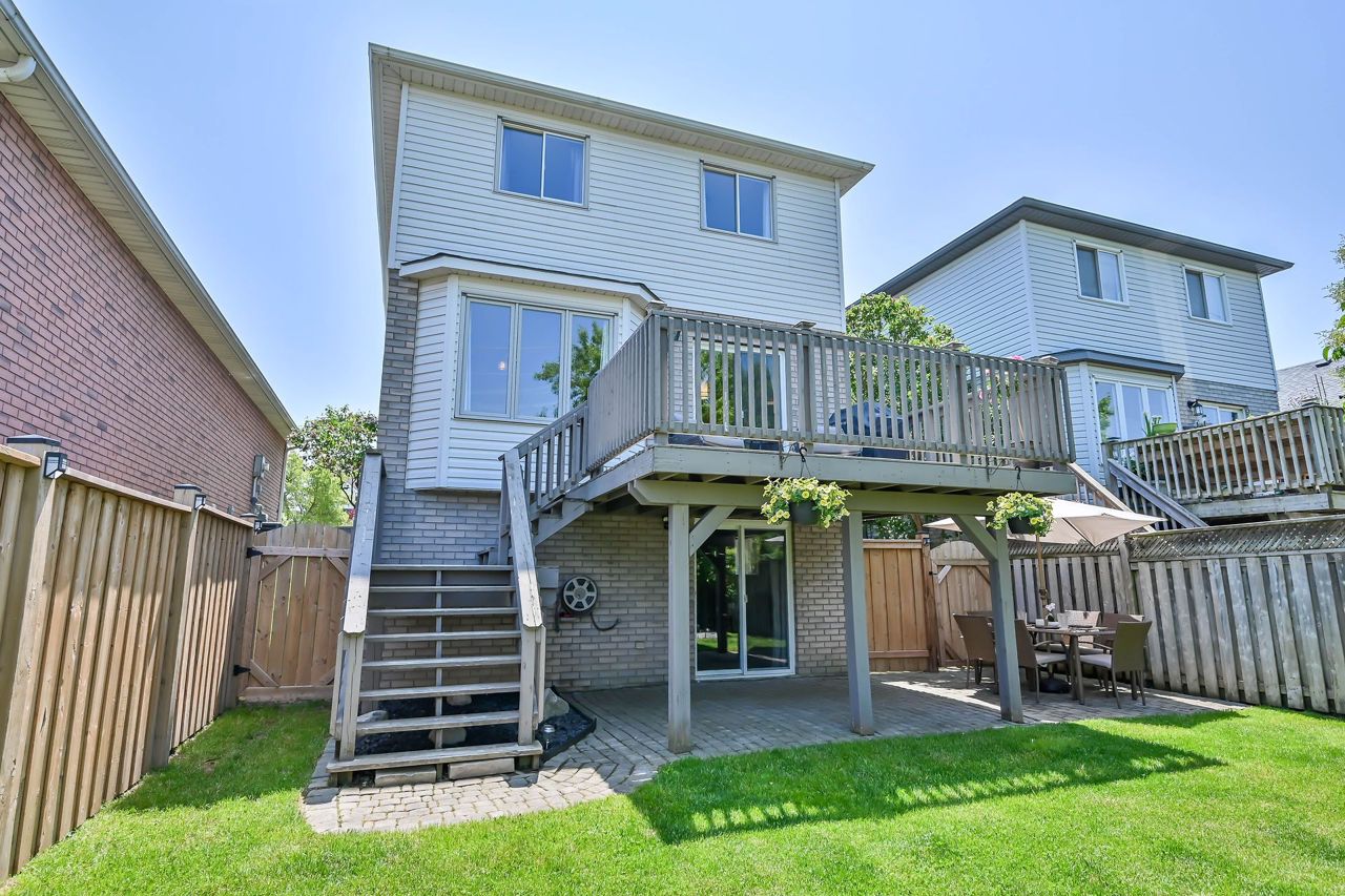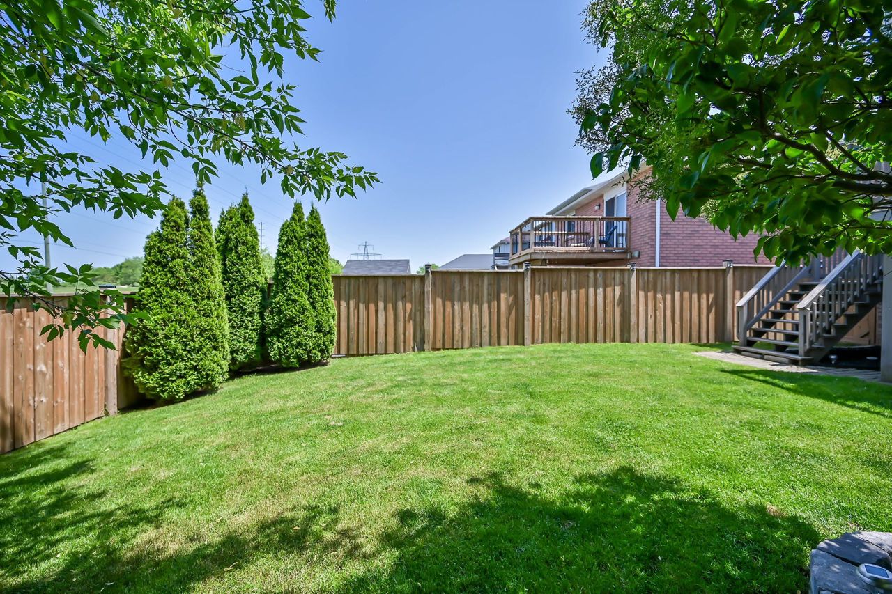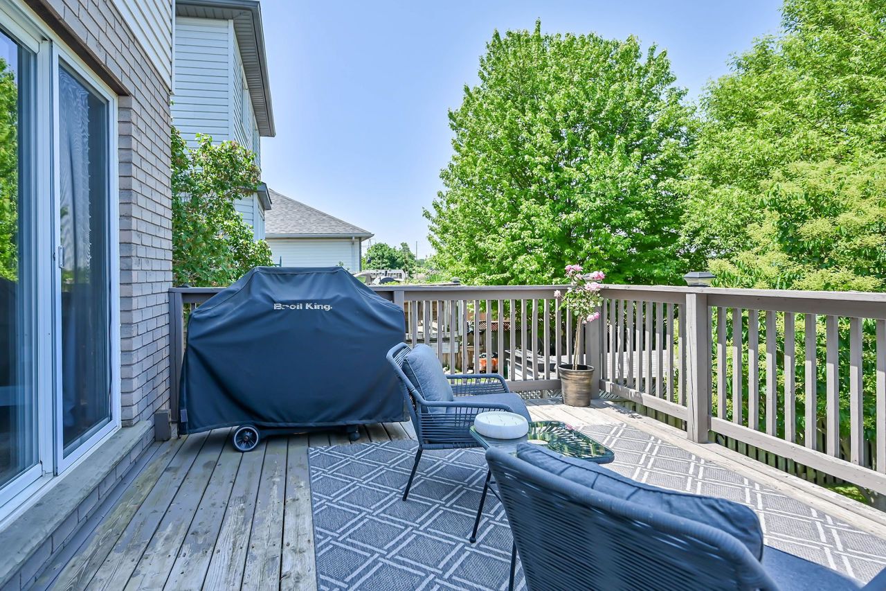 Brantwood Park neighborhood. 3 bedrooms 1.5 baths (+ rough-in). Upgrades include but are not limited to: roof (2014), front deck pillars added (2018), carpet (2019), sod, landscaping, fence installed (2020), upstairs bathrm, floors on the main level, basement, new light fixtures & appliances (2021). Bright and inviting eat-in kitchen, boasting plenty of counter space for all your culinary needs. Patio door leads to a deck & fully fenced yard, Situated on a lot measuring 33.87ft x 107.48ft, this property offers privacy and tranquility with no rear neighbors. The bedrooms in this home are spacious, and the primary bedroom features a convenient walk-in closet. The hallway is generously proportioned, adding to the overall sense of space and openness. The finished walkout basement presents additional living space and the potential for customization, with a rough-in for another bathroom already in place. The single-car garage