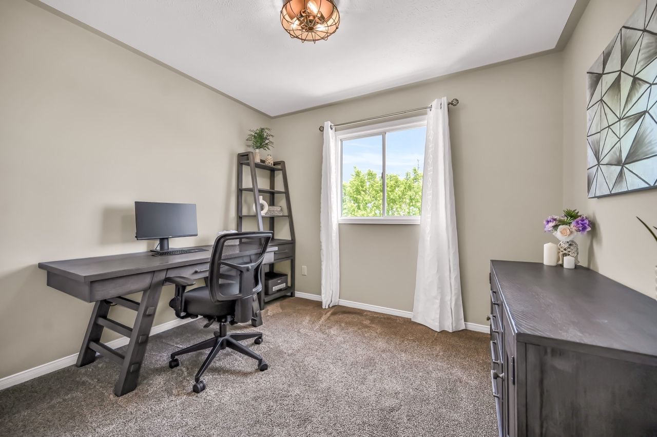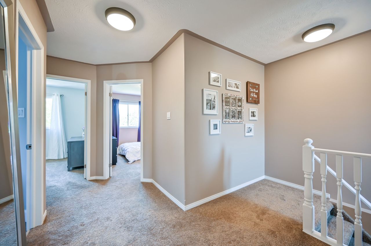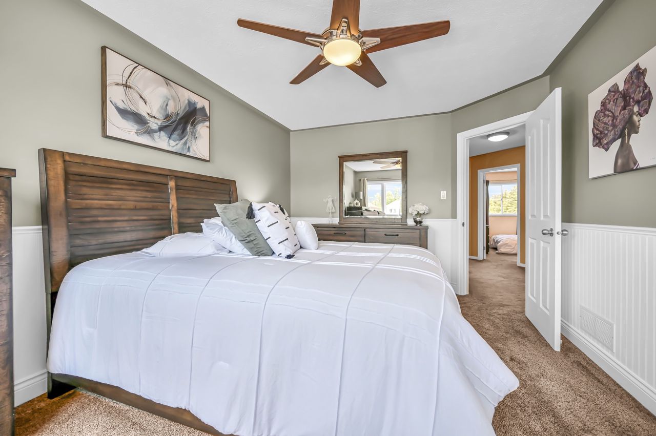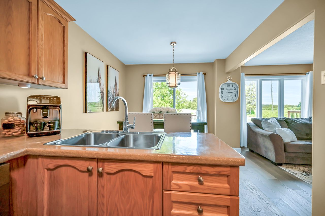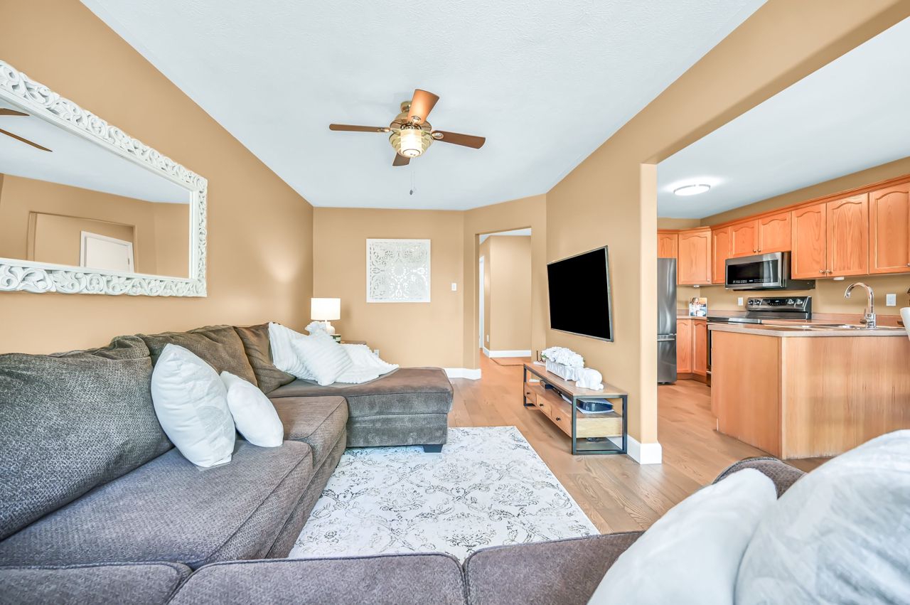 Brantwood Park neighborhood. 3 bedrooms 1.5 baths (+ rough-in). Upgrades include but are not limited to: roof (2014), front deck pillars added (2018), carpet (2019), sod, landscaping, fence installed (2020), upstairs bathrm, floors on the main level, basement, new light fixtures & appliances (2021). Bright and inviting eat-in kitchen, boasting plenty of counter space for all your culinary needs. Patio door leads to a deck & fully fenced yard, Situated on a lot measuring 33.87ft x 107.48ft, this property offers privacy and tranquility with no rear neighbors. The bedrooms in this home are spacious, and the primary bedroom features a convenient walk-in closet. The hallway is generously proportioned, adding to the overall sense of space and openness. The finished walkout basement presents additional living space and the potential for customization, with a rough-in for another bathroom already in place. The single-car garage