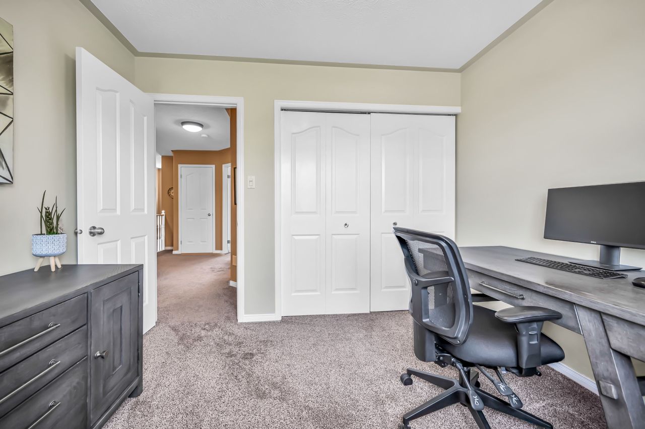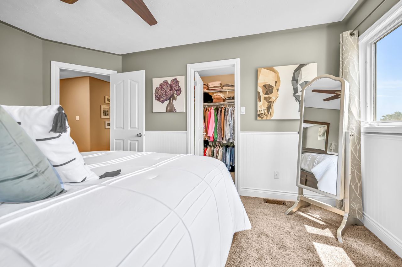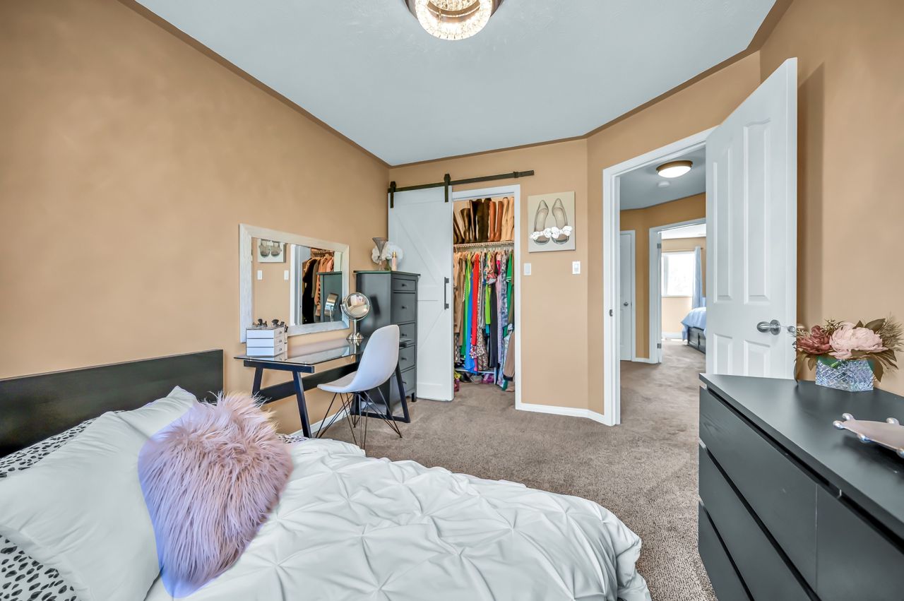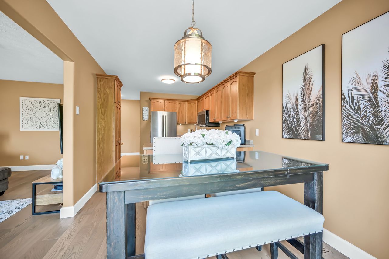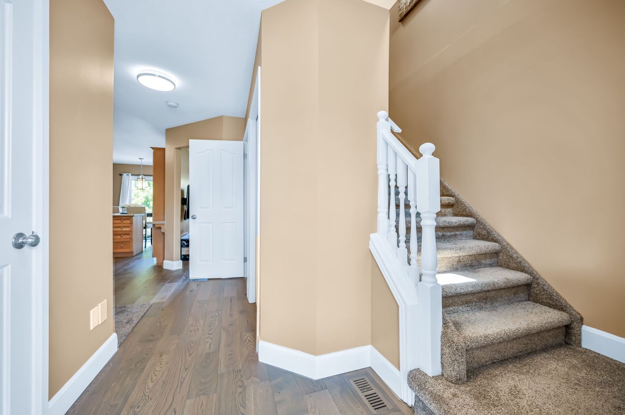 Brantwood Park neighborhood. 3 bedrooms 1.5 baths (+ rough-in). Upgrades include but are not limited to: roof (2014), front deck pillars added (2018), carpet (2019), sod, landscaping, fence installed (2020), upstairs bathrm, floors on the main level, basement, new light fixtures & appliances (2021). Bright and inviting eat-in kitchen, boasting plenty of counter space for all your culinary needs. Patio door leads to a deck & fully fenced yard, Situated on a lot measuring 33.87ft x 107.48ft, this property offers privacy and tranquility with no rear neighbors. The bedrooms in this home are spacious, and the primary bedroom features a convenient walk-in closet. The hallway is generously proportioned, adding to the overall sense of space and openness. The finished walkout basement presents additional living space and the potential for customization, with a rough-in for another bathroom already in place. The single-car garage