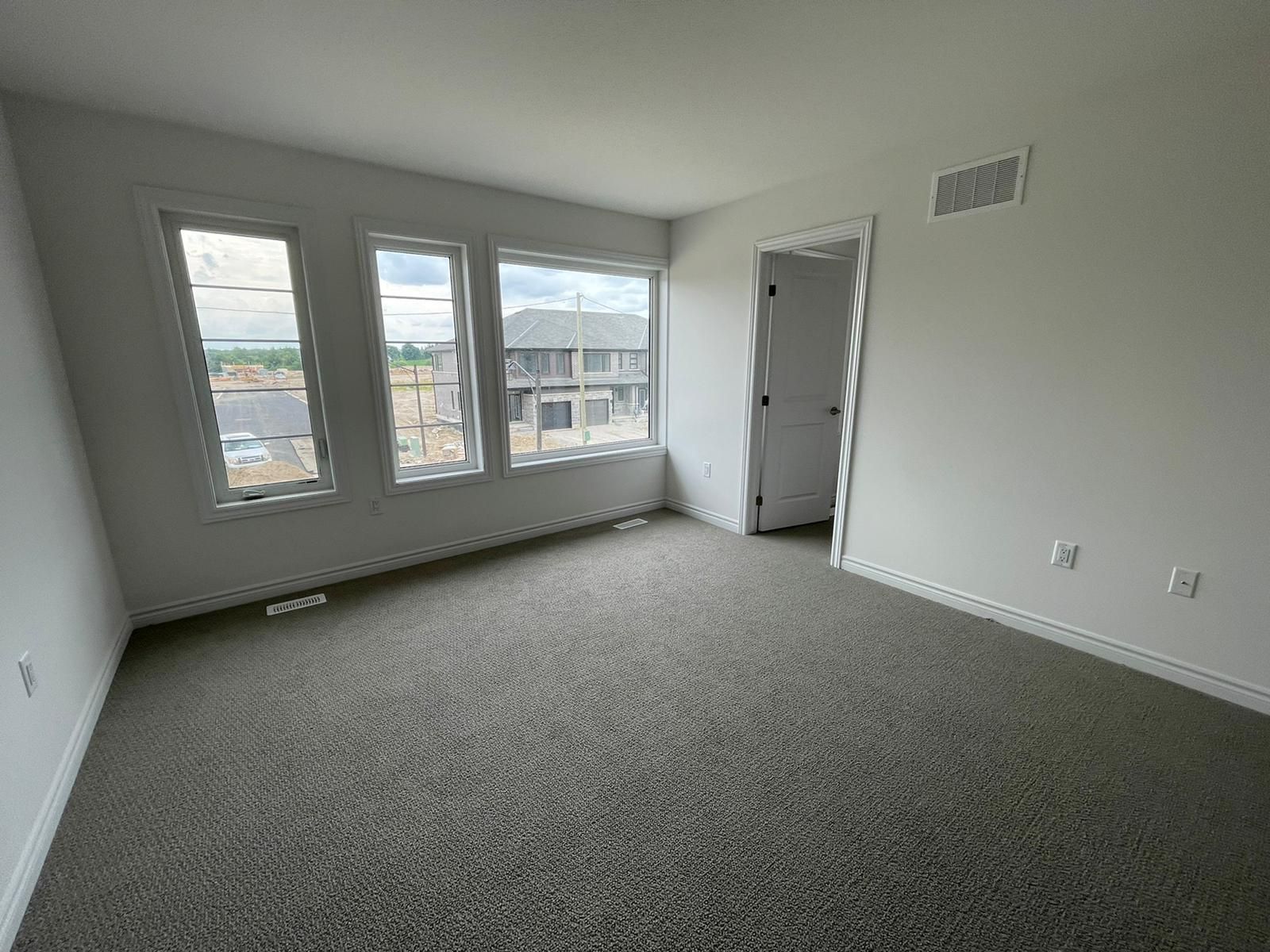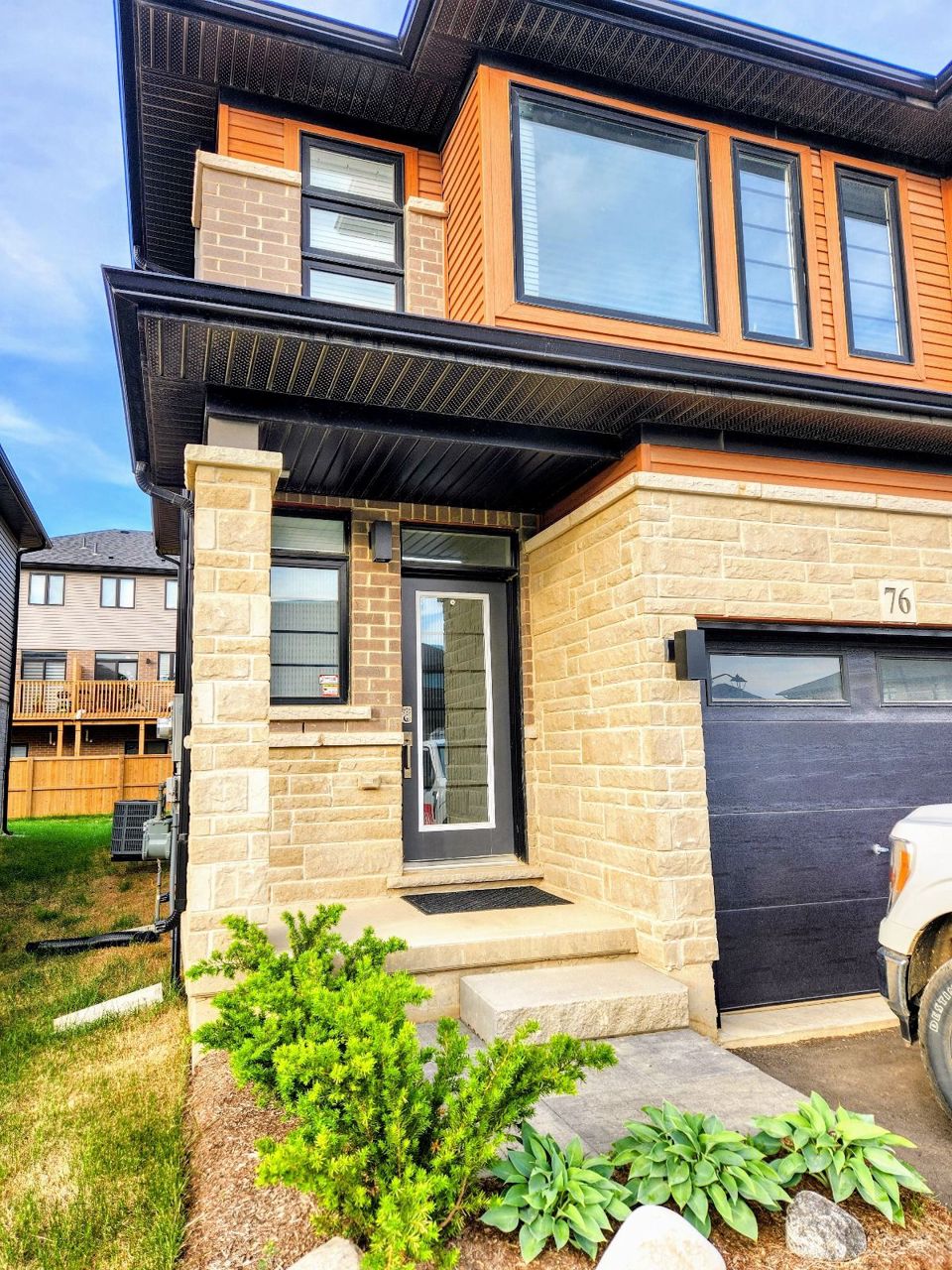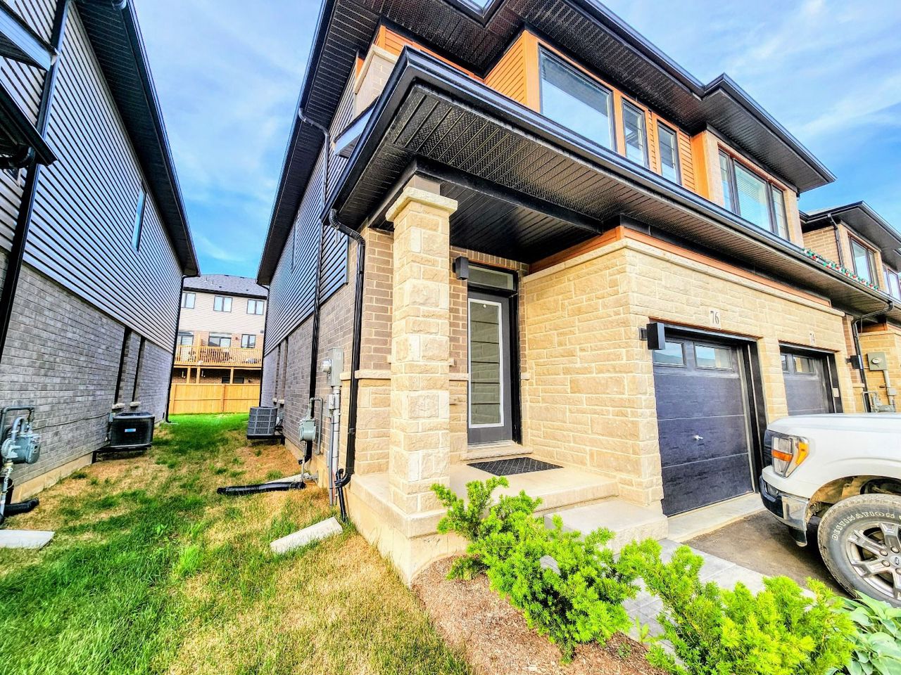 Welcome to sun filled freehold a luxurious end-unit townhouse Like a semi located in the West End of Brantford. This home features modern curb appeal and loads of upgrades, offering 3 bedrooms, 2.5 bathrooms and a single car garage. Elegant LVP flooring flowing seamlessly through the main level. The open concept main floor plan is perfect for entertaining families and friends. The kitchen offers modern cabinetry, quartz countertops, an island . The main floor is complete with a conveniently placed powder room. Upstairs the spacious primary bedroom has a walk-in closet and 5 Piece bathroom. This floor offers 2 additional bedrooms, a full bathroom and upper floor laundry .Unspoiled basement.