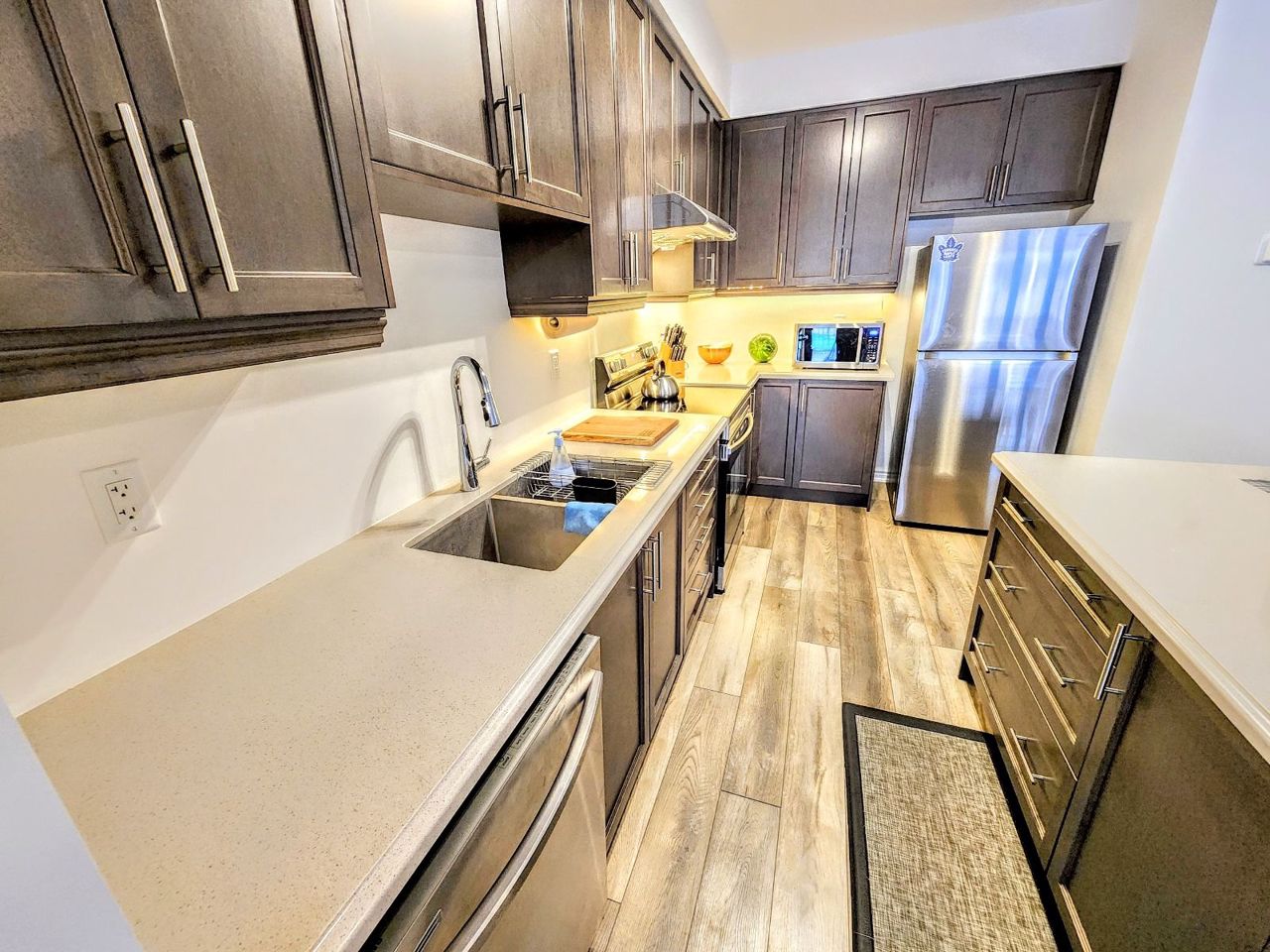 欢迎来到阳光普照的自由产权豪华端单位联排别墅,如同半独立式住宅,位于布鲁克西部地区。这栋住宅拥有现代化的外观,并进行了大量升级,提供3间卧室,2个卫生间和单车库。优雅的LVP地板在主要楼层流畅延伸。开放式主要楼层布局非常适合招待家人和朋友。厨房提供现代化的橱柜、石英台面和一个岛台。主要楼层还配备了一个方便的客用卫生间。楼上,宽敞的主卧室拥有步入式衣帽间和5件式卫生间。这个楼层还提供2个额外的卧室、一个完整的卫生间和顶层洗衣房。地下室未装修。