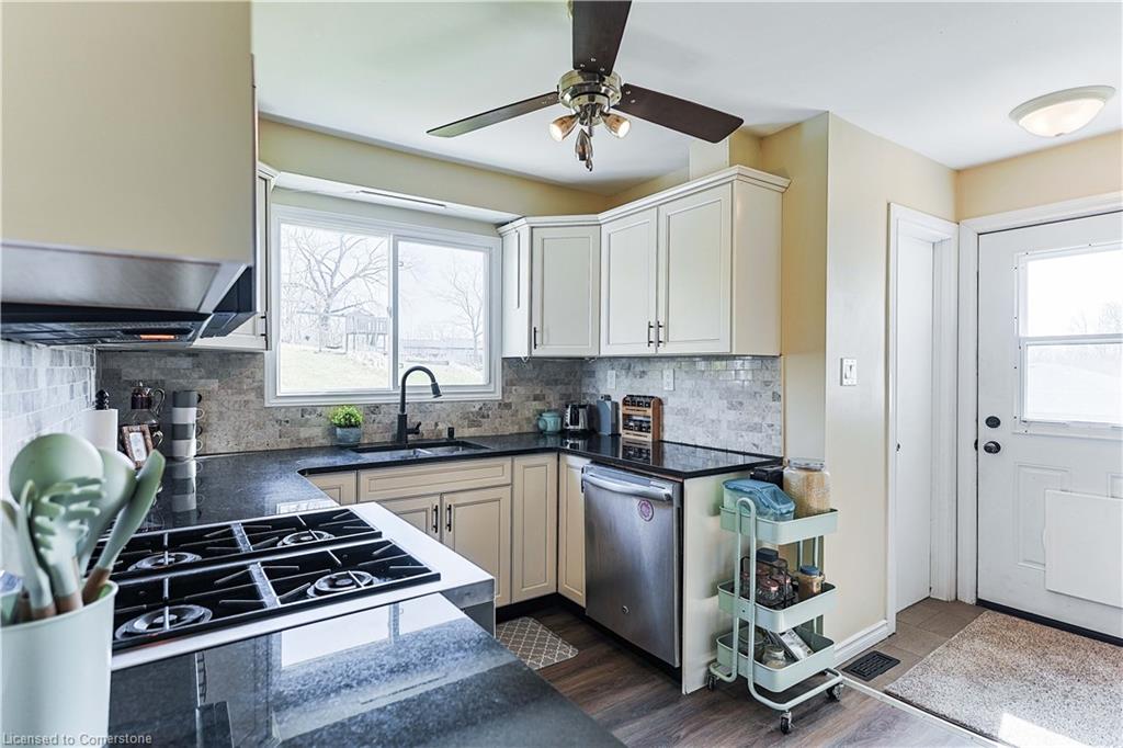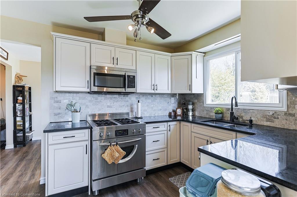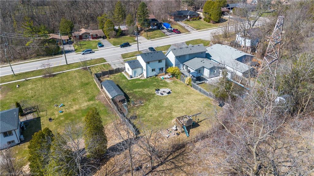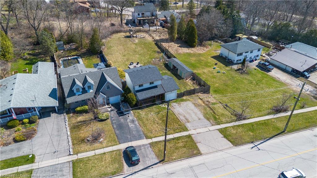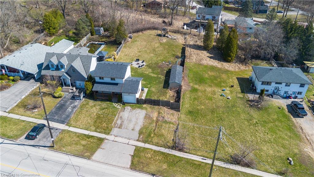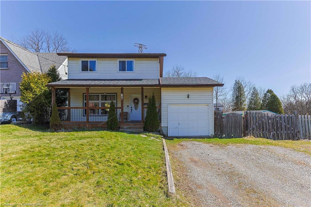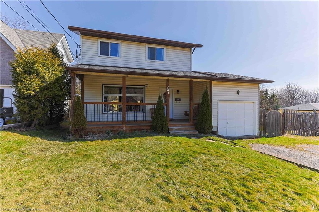 Welcome to 87 Locks Road in Brantford, ON. This 2-storey home sitting on a massive 76 x 186ft lot is ready for its newest owner. Looking to own a large piece of land right in the city? This property features plenty of room to add and enjoy the massive rear yard and this well-maintained 2-storey home. Enjoy 3 great size bedrooms, a renovated bathroom, and new flooring throughout. On the main level, you have a good-sized living space, with an established dining room leading to the backyard and a renovated kitchen with updated cabinets, granite countertops, and a gas stove. This property is close to all amenities and is less than 5 minutes from Hwy 403. Some of the updates include, Roof (2020), Flooring (2024), Living Room, Upstairs bathroom and rear bedroom windows (2024), AC (2023). RSA.