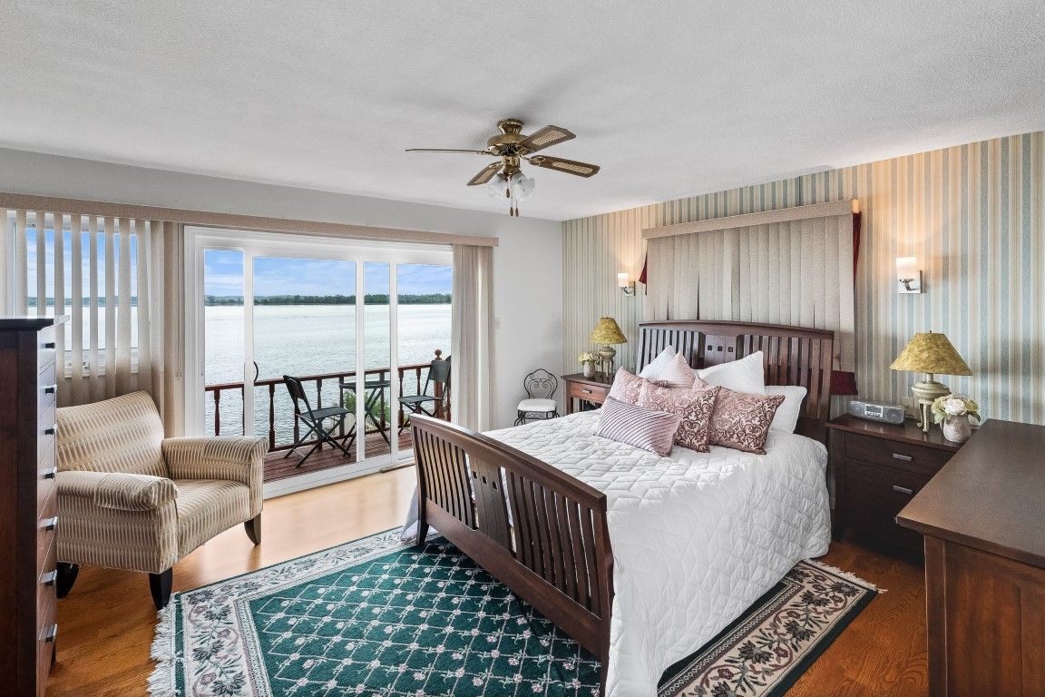 Organic Garden Paradise on stunning Presqu'ile Bay with rare private boat slip. WWF certified, mature natural lot looking for a new like-minded buyer. Wake to loon calls and watch terns turn & dive while egret, heron & swans fly by and the resident sparrow & other songbirds serenade you. Open concept main floor w kitchen, dining and living spaces. The incredible sunroom overlooking the bay, leads out to deck for outdoor fun. Upstairs find your grand primary BR w view to die for, large 5pc bath & 2nd BR. Basement (fire rated) offers 2 more BR, a 3pc bath, kitchenette & living space. Outdoors enjoy herb/pesticide-free gardens w stunning view, patio w NG BBQ and stair access to the bay for swimming. Perennial gardens boast 7 varieties of clematis, raspberries, herbs, etc. Fully fenced rear yard and mowing is easy. Close to restaurants, minutes to downtown shops & 401. Fireflies & bees live here happily and you will too. This truly remarkable property is well loved & will be deeply missed.Armadillo metal roof w lifetime warranty. Parking for 5. Central A/C, on-demand gas HWH, new stove, 5 y/o fridge & Dishwasher. 2 New windows to be installed on 2nd floor. Toilet + sink in garage. See Multimedia link for video and floorpans
