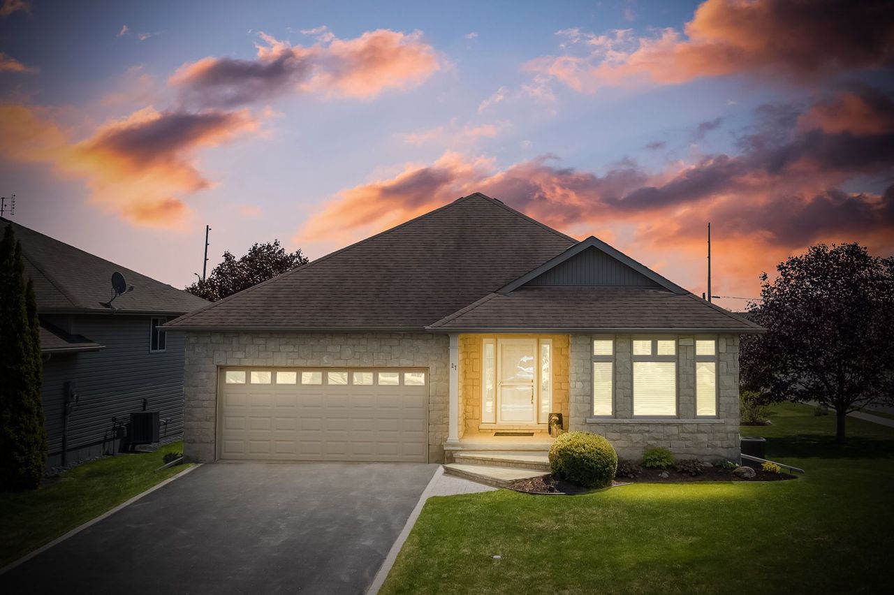 Welcome home to 27 Deerfield Dr; a bright and spacious bungalow in a desirable neighbourhood, walkable to the water and a short bike ride into town or to Presqu'ile Provincial Park. This all brick home offers 3 beds and 3 baths and features comfortable main floor living! Main level boasts an open concept design and beautiful hardwood floors. The large kitchen featuring an island and walk-in pantry opens to the dining area and large living room with vaulted ceilings. The dining room opens out to the beautifully maintained garden, complete with a composite deck and inground sprinkler system. The primary suite includes an ensuite bath, & walk-in closet The second bedroom is conveniently located next to the main bathroom The lower level of this home features a full bathroom and a huge third bedroom with a walk-in closet and large window. The rec room offers many options with a cozy gas fireplace and space for a gym, family room and games area.The garage is heated and insulated and features full screens to allow for airflow and keep the bugs out! An amazing feature of this home is the ICF construction ARXX basement. *Click More Photos to View 3D Virtual Tour*