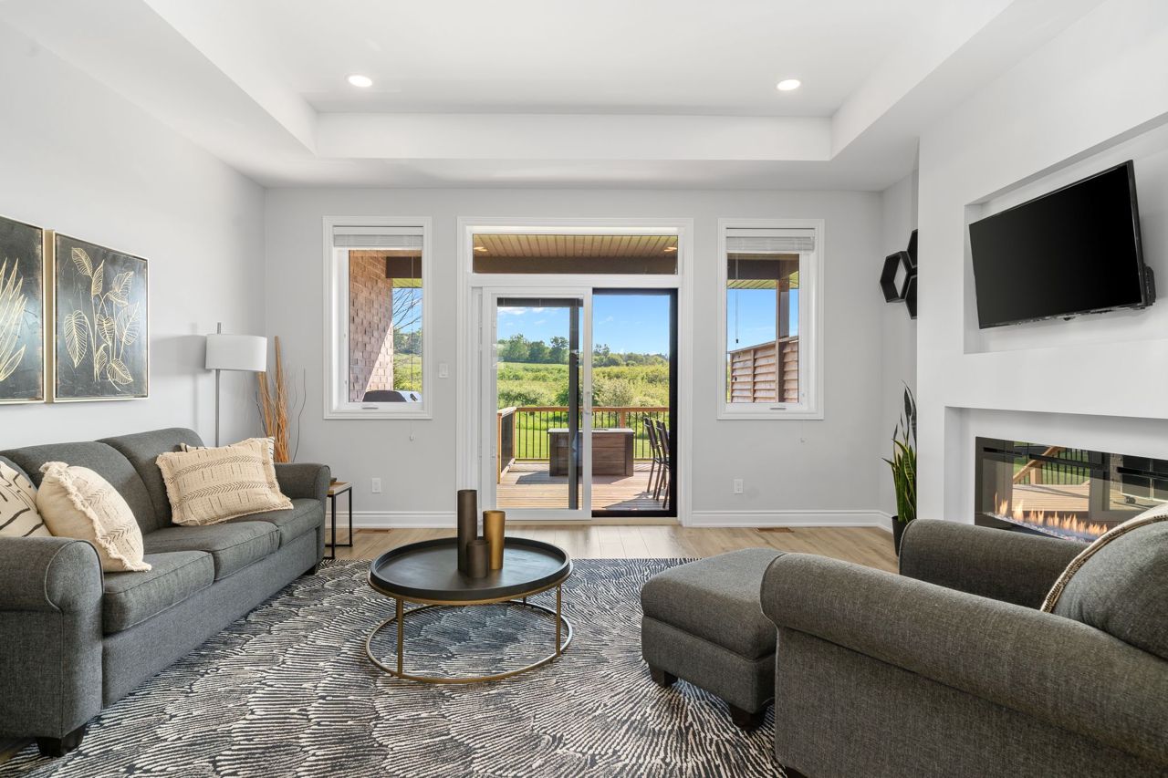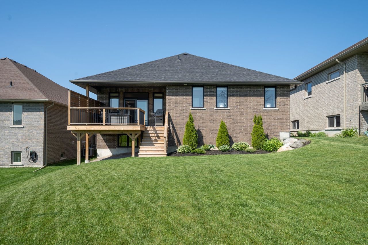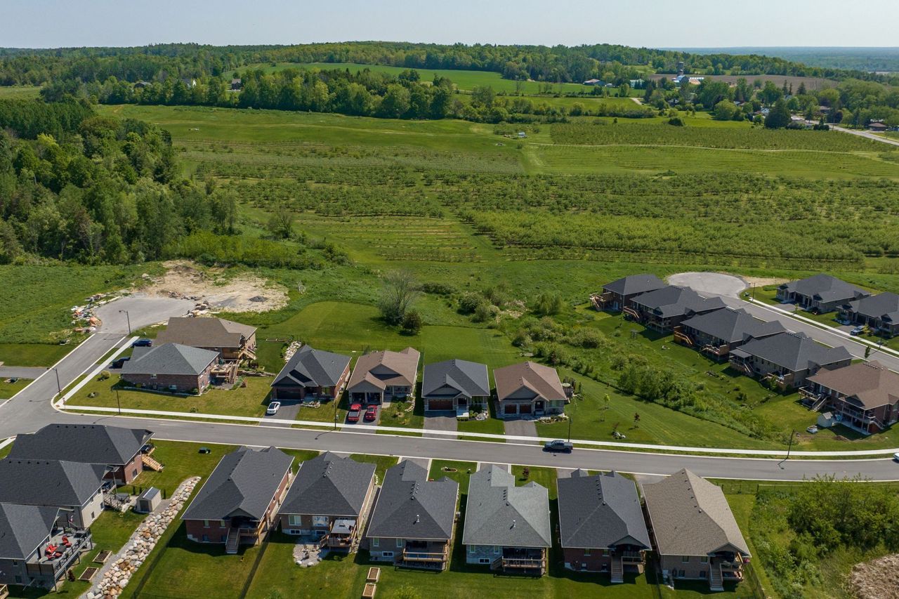 Newly built 4 bed 3 bath home with stunning orchard views in sought-after Tackaberry Ridge, Brighton. Curated exterior finishes lead to a clean, classic interior with 9’ ceilings throughout. Custom kitchen with quartz counters & well laid-out cabinetry opens to a spacious living room with transom windows overlooking the covered deck. Main floor features 3 bedrooms, 4pc bath, primary suite with 3pc ensuite & large walk-in closet. Attached double garage with custom mudroom bench & storage. Finished lower level with 4th bedroom, 3pc bath, rec room & flexible unfinished space. Walking distance to local amenities.