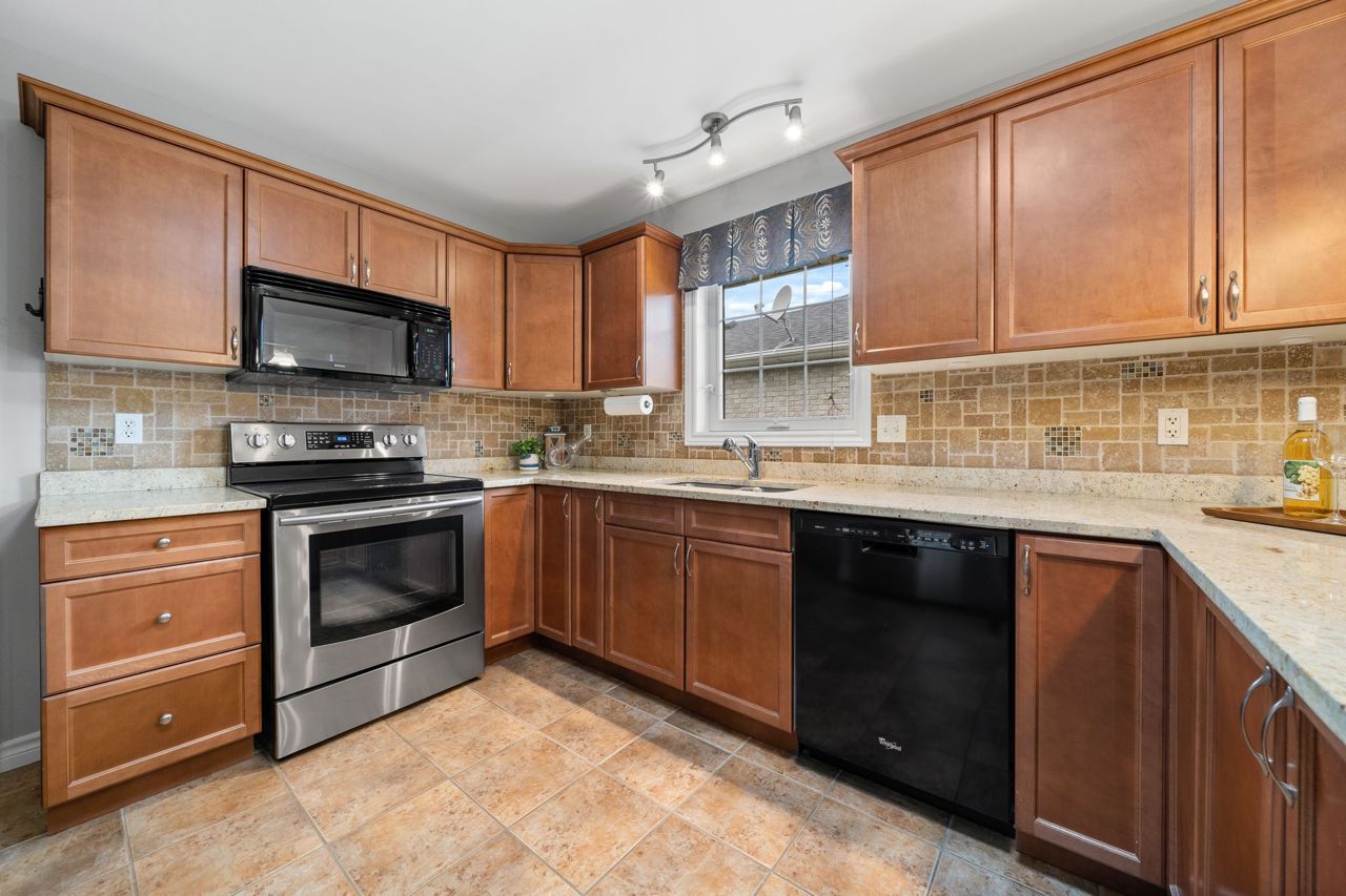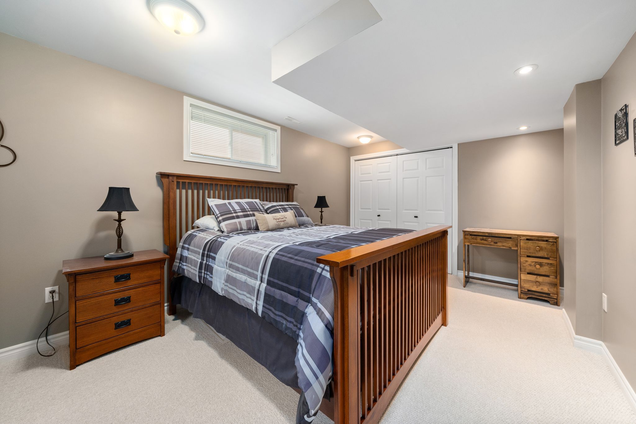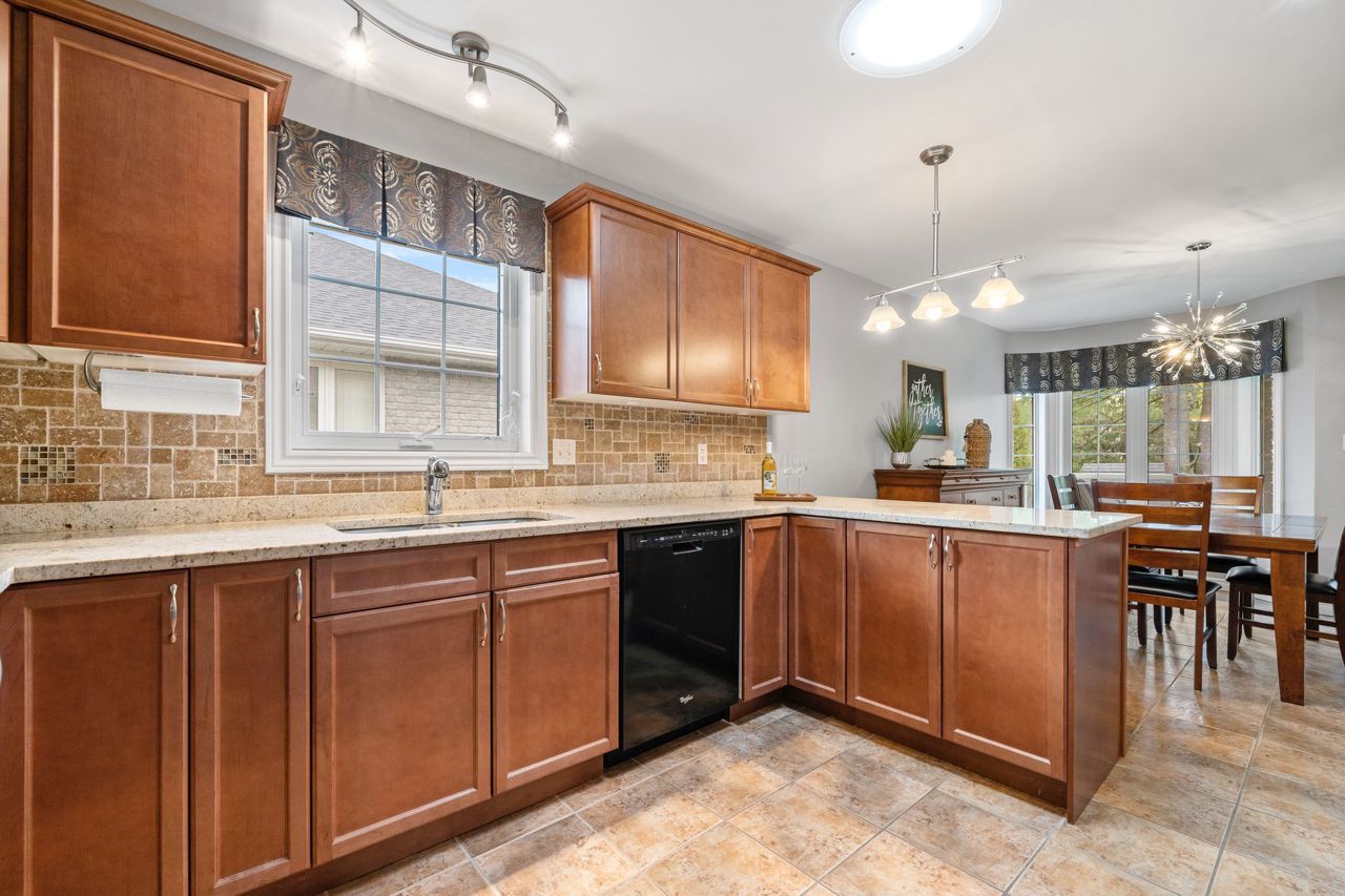 Experience stately comfort in this beautifully located 4 bed 3 bath all-brick home in Brighton. Quality materials like granite, hardwood & ceramic tile are evident throughout the well-built & maintained property with a mature, fully fenced yard. The living room with 10’ ceiling, feature windows, electric fireplace & built-in feature shelves is the central hub. The eat-in kitchen with granite counters & custom cabinetry opens to a lovely covered deck. The main floor has 3 bedrooms, including a primary suite with tray ceiling, walk-in closet & large ensuite. Fully finished basement with large rec room & 4th bedroom. Attached double garage & workshop provide storage & space for hobbies.3 main floor bedroom layout perfect for a family, or extra rooms for guests, den or office. Primary suite with large ensuite bath with step in shower, also includes a convenient laundry closet.
